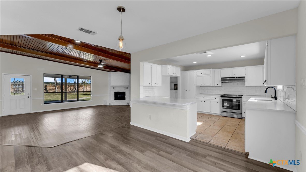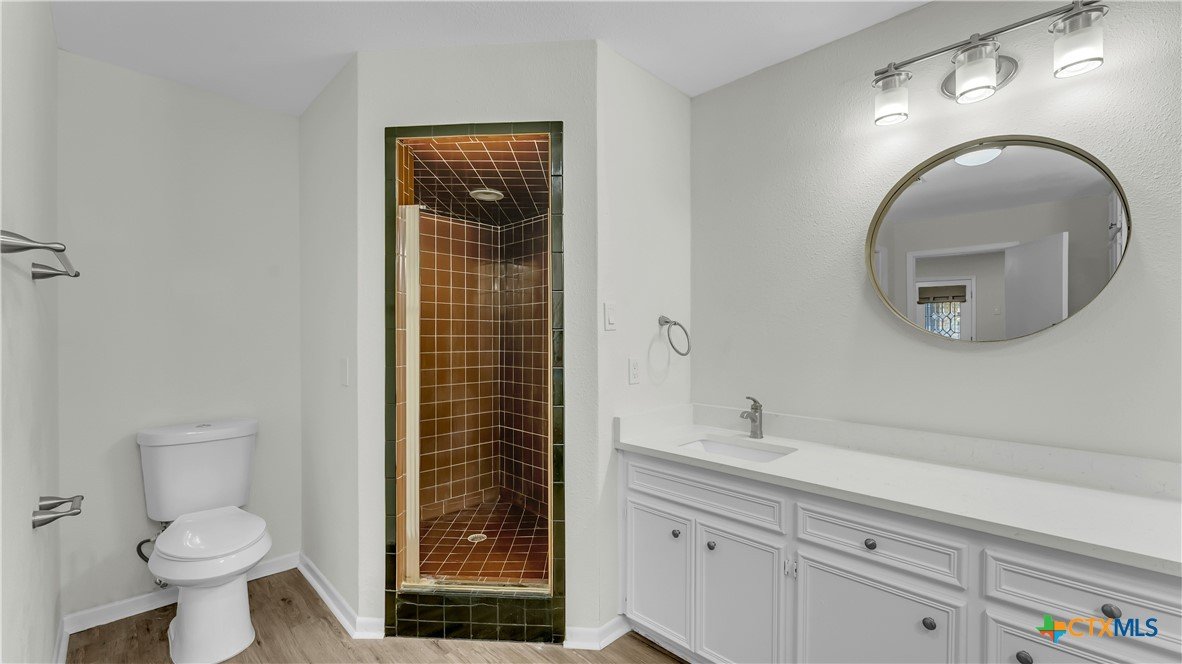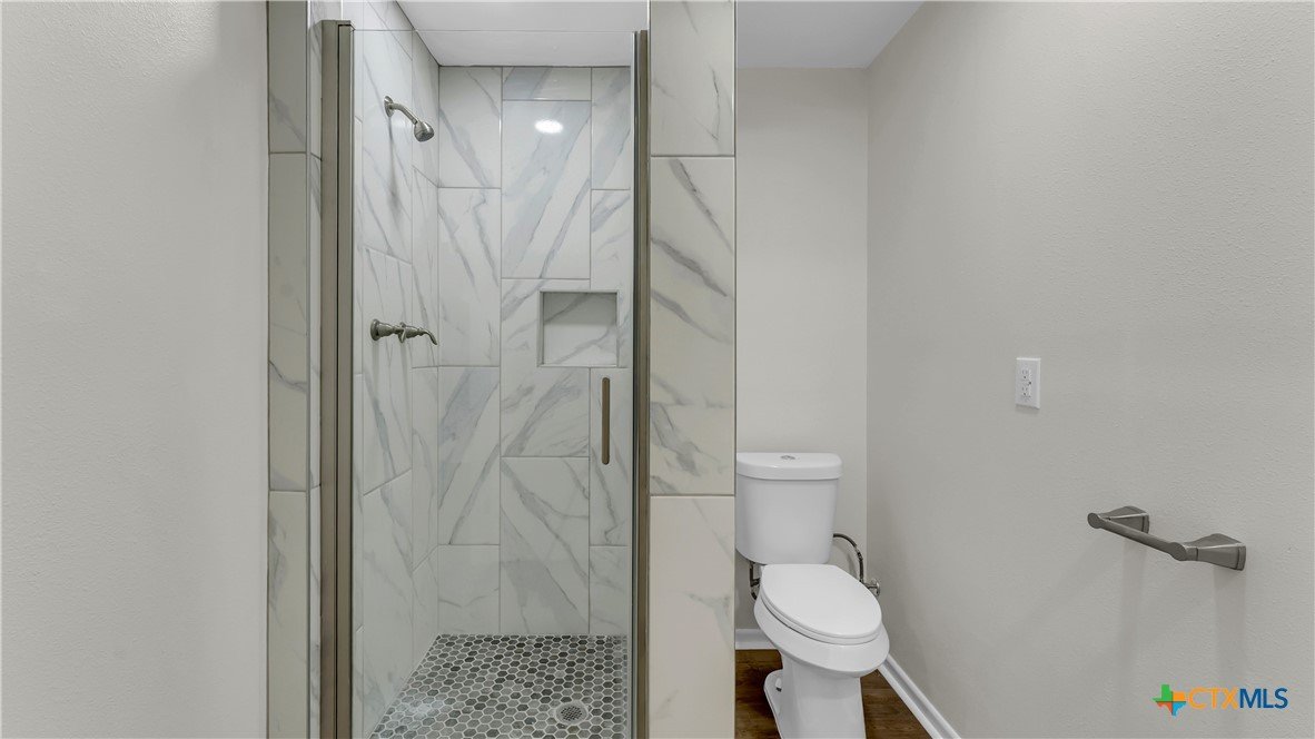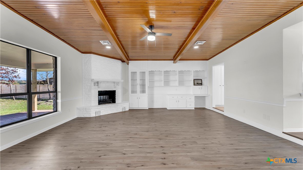 Beautifully remodeled 2,869 sq ft large family home featuring 4 bedrooms and 3 bathrooms, located in a quiet cul de sac within a family friendly neighborhood. This thoughtfully updated property offers brand new central HVAC throughout the main home, with mini split systems providing heating and cooling in the game room and fourth bedroom for added comfort and efficiency. The interior showcases a completely remodeled kitchen with quartz countertops, brand new appliances, tile flooring, and updated electrical throughout. Spacious living areas feature built ins in the living room, new flooring in the living area and primary suite, fresh interior paint, and large windows that fill the home with natural light. Two secondary bedrooms include carpeted flooring. Recent improvements include a new roof, new hot water heater, brand new fencing, some new insulation, and updated bathrooms. The second bathroom has been fully remodeled, while the third bathroom features all new fixtures with the existing bathtub remaining. The fourth bedroom includes a powder room with a vanity. Additional highlights include a two car garage with new garage door openers, covered front and back porches, and a spacious backyard with mature trees perfect for everyday living and entertaining. Conveniently located within walking distance to the elementary and middle schools and just five minutes from HEB and downtown, this move in ready home combines modern updates, generous living space, and an excellent location.