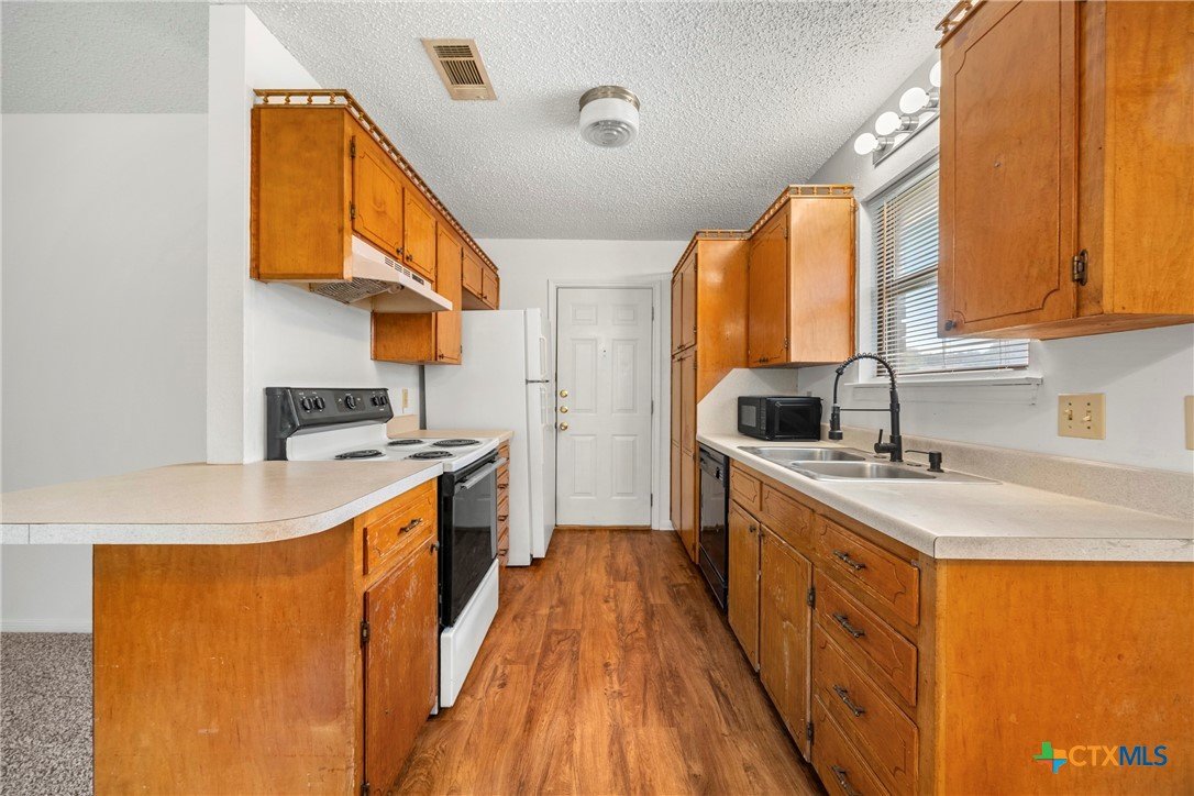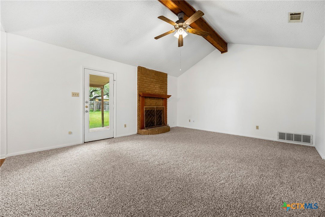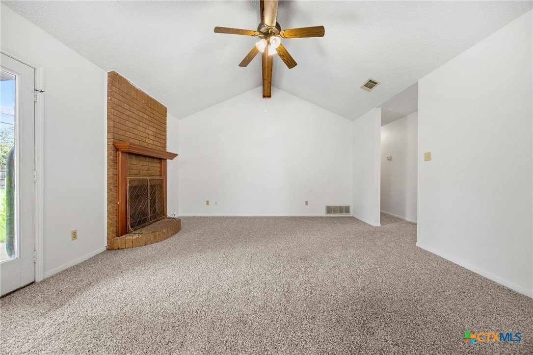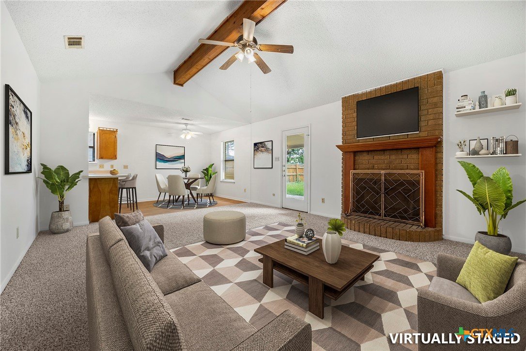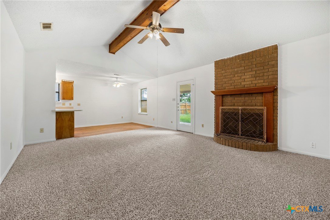 Welcome to 312 Saddle Drive—this charming 3-bedroom, 2-bath home offers 1,245 square feet of comfortable living space, nestled in a quiet, established neighborhood in Copperas Cove. With fresh interior paint, brand-new carpet, and newly installed vinyl flooring in the kitchen, this home is move-in ready and waiting for your personal touch. Step inside to a spacious living room with vaulted ceilings, a wood beam accent, and a cozy brick fireplace. The kitchen features a functional layout with ample cabinetry, updated flooring, and a connected dining area that enjoys natural light from multiple windows. The primary suite includes a walk-in closet and private bathroom. Outside, enjoy a large, fenced backyard with mature shade trees and a covered patio—ideal for entertaining or relaxing. The two-car garage provides additional storage and convenience. Located near schools, parks, and shopping, this property blends comfort and practicality—perfect for a first-time buyer, downsizer, or investment opportunity.