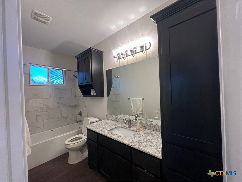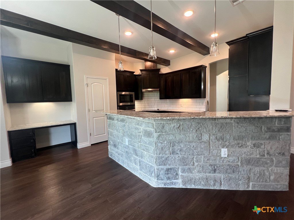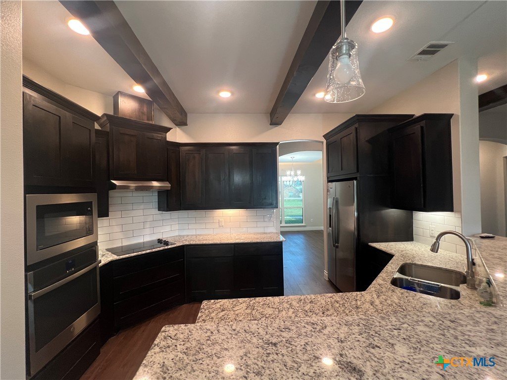 Gorgeous custom-built-in 2021 located in beautiful Sunrise Hills, the home features spacious living at its finest. This home features 4bedrooms plus an office that could double as a 5th bedroom, along with 3 and a 1/2 baths. Sit on the front porch and enjoy the vastviews of the sunrise, then enjoy the beautiful Texas sunsets from your back patio. As you enter this Custom home, you will see a vastliving room with a wood-burning fireplace. The eat-in kitchen has stainless steel appliances and a coffee bar. The formal dining roomfeatures arched entryways. The master bedroom features a walk-in closet with built-in shelving. Bedrooms 3 & 4 have a Jack-and-Jillbathroom, which features double sinks that are separate from the tub/toilet. On the covered back patio, there is a space for an outdoorkitchen. If you are outside working or the kids are playing, there is no need to go inside, as there is a 1/2 bath on the patio. The 22X35shop features two roll-up doors and is on a concrete slab.