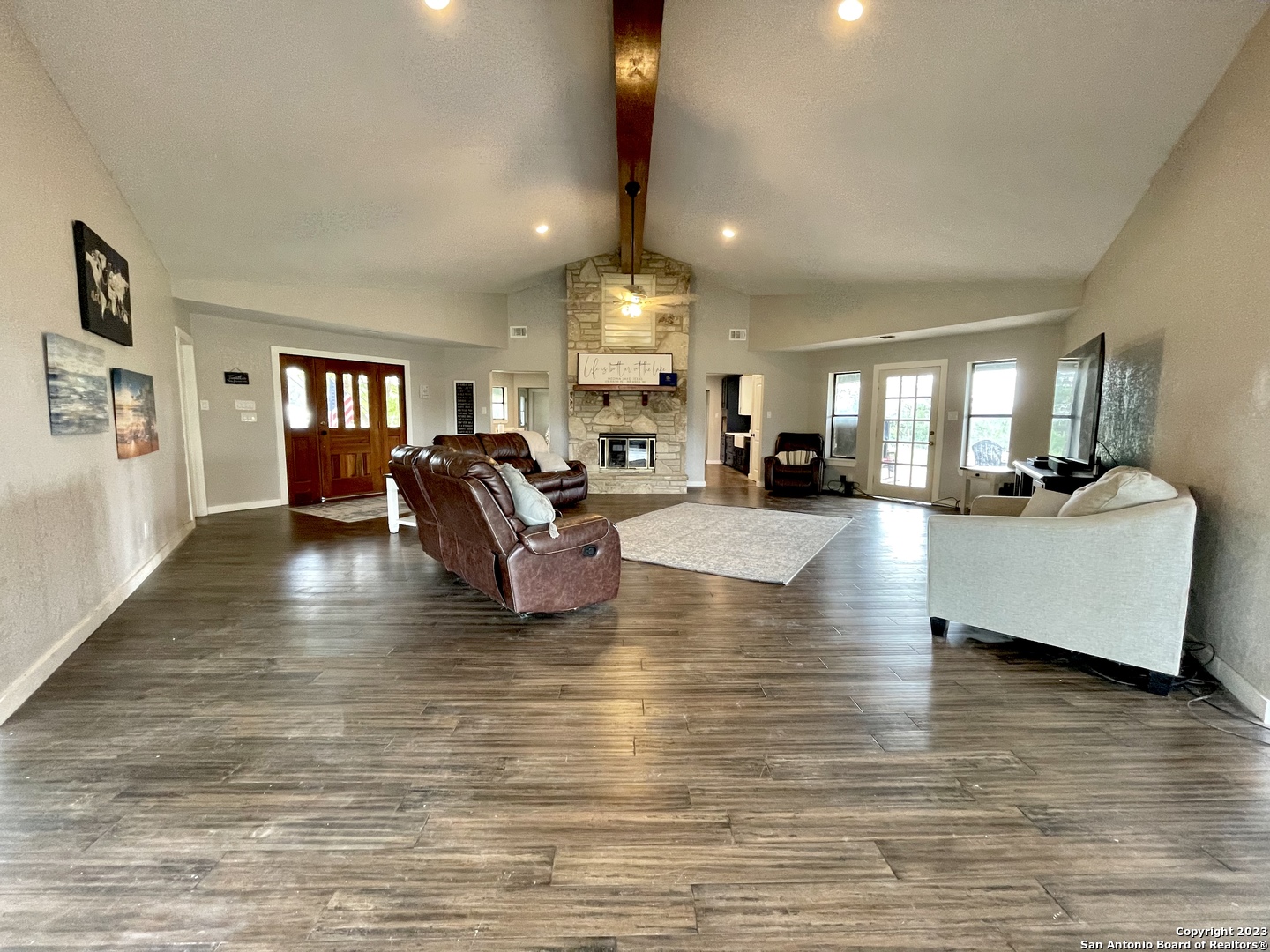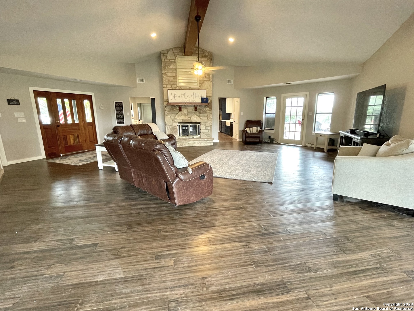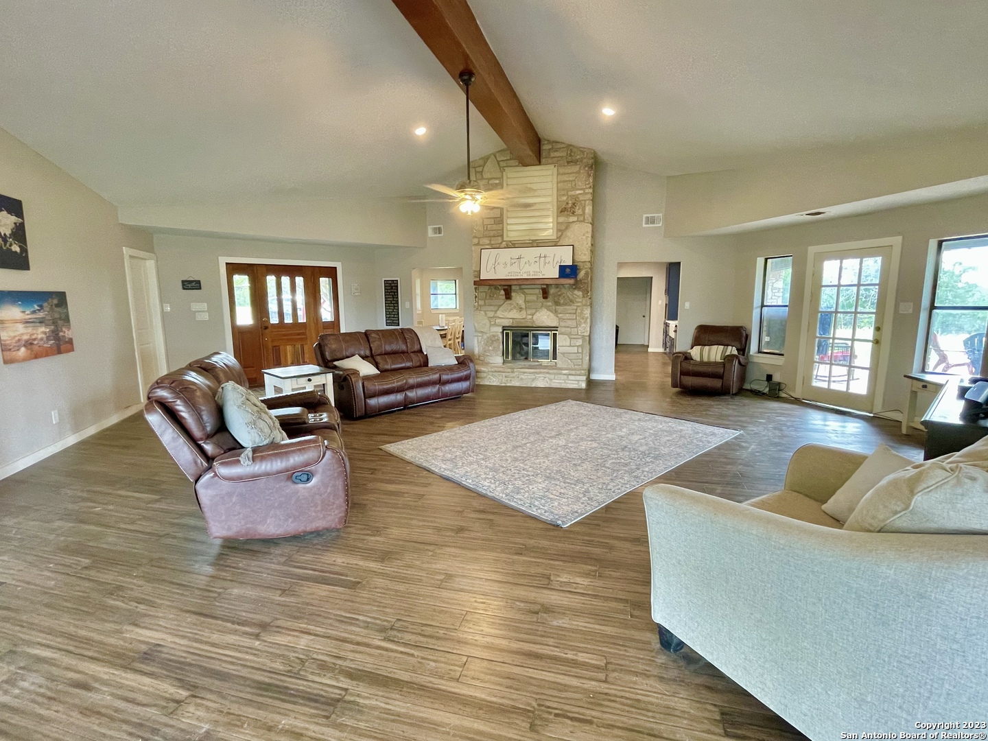 Country living with high speed internet and room for your chickens, goats, horses, etc. Almost 17 acres of mature trees, and stunning views. Peaceful completely fenced property with Axis and deer, horse stall, tack room, chicken coop, additional bar/building, full RV hook up - all in additional to the remodeled main house! Almost 4000 sq feet with 5 bedrooms, 4 and 1/2 bathrooms, huge open living room with additional bonus room that could be a game room, dining room, office, living room, etc. Available for 12 month lease starting August 4.