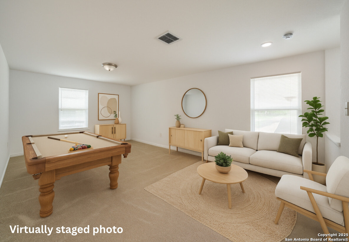 Welcome to 3123 Mission Gate! This spacious 4-bedroom, 3-bath home offers over 2,200 sq. ft. of comfortable living with an open floor plan and a versatile upstairs loft, perfect for a game room, office, or second living space. Energy efficiency is a breeze with fully paid-off solar panels, helping keep utility costs low year-round. Conveniently located just minutes from Texas A&M University-San Antonio, with quick access to Loop 410 for an easy commute anywhere in the city. You're also less than 15 minutes from Lackland Air Force Base and close to shopping, dining, schools, and the historic San Antonio Missions. A perfect blend of modern living, energy savings, and prime location, this home has it all!