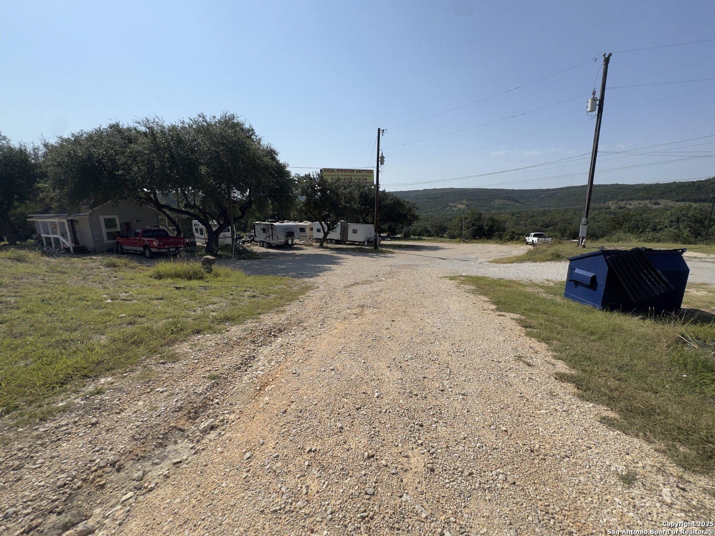 Prime Mixed-Use Investment! This unique property combines residential and commercial income streams with a small home, 11 RV spaces, and 36 storage units. Three RV spots sit beneath a massive metal carport, part of which is enclosed to include a small residence, an additional RV hookup, and space for storage or parking. Current rental income includes the home at $800/month, RV spaces ranging from $550-650/month all bills paid, storage units at $85/month, and a two-room shop leased for $1,100/month to a cabinet maker. The property is well-equipped with utility connections, multiple electric services including 3-phase service, and three septic tank systems. Zoned both commercial and residential, this peaceful property with hill country views and private water offers excellent flexibility for investors or owner-operators. Please allow 4 hours notice for showings.