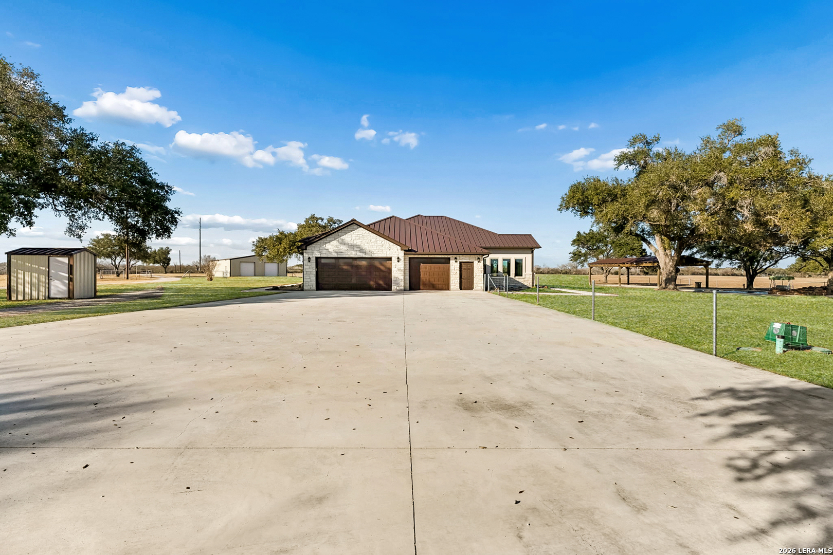 Set just minutes from Beeville, this refined South Texas ranch offers approximately 60 acres of beautifully maintained land framed by mature oak trees. A 4 bed/3 bath 2022 custom-built residence serves as the centerpiece of the property, offering a rare balance of comfort, privacy, and high-quality improvements. The custom home features thoughtful design and elevated finishes throughout. The kitchen includes high-end appliances, custom sinks, and striking exotic countertops, complemented by premium doors, detailed woodwork, and a whole-home Sonos sound system. Built with long-term efficiency and durability in mind, the home features full spray-foam insulation, impact-rated storm windows, a metal roof, and a Generac backup generator supported by an underground 1,000-gallon propane tank. An air-conditioned, fully insulated three-car garage adds both convenience and flexibility. Outdoor living is a central focus of the property. A custom in-ground pool and expansive pavilion, completed in 2022, create an ideal setting for gatherings or quiet evenings overlooking the ranch. A 40' x 60' metal barn with a concrete floor provides ample space for equipment, storage, or recreational use, while all interior and exterior fencing was replaced in 2022, ensuring the ranch is fully functional and well maintained. The land supports abundant South Texas wildlife, including whitetail deer, hogs, turkey, dove, and quail, making it equally appealing for recreation or relaxation. Carefully improved and truly turnkey, this South Texas ranch is a standout offering for those seeking space, privacy, and an elevated rural lifestyle just outside of town.