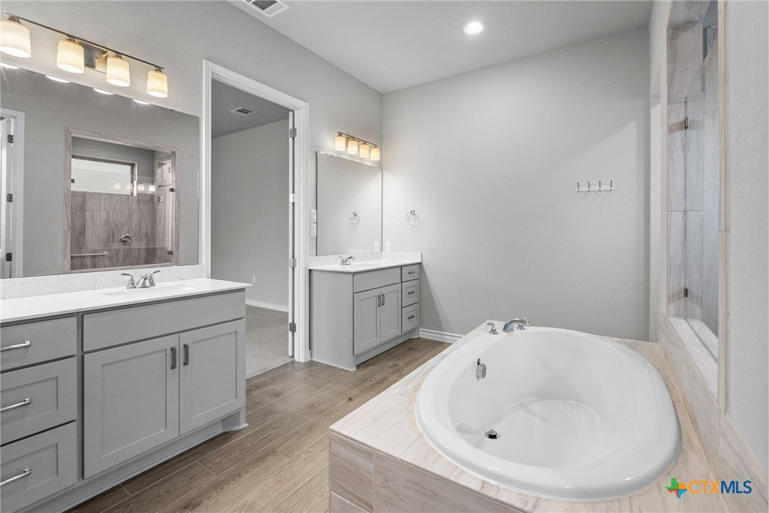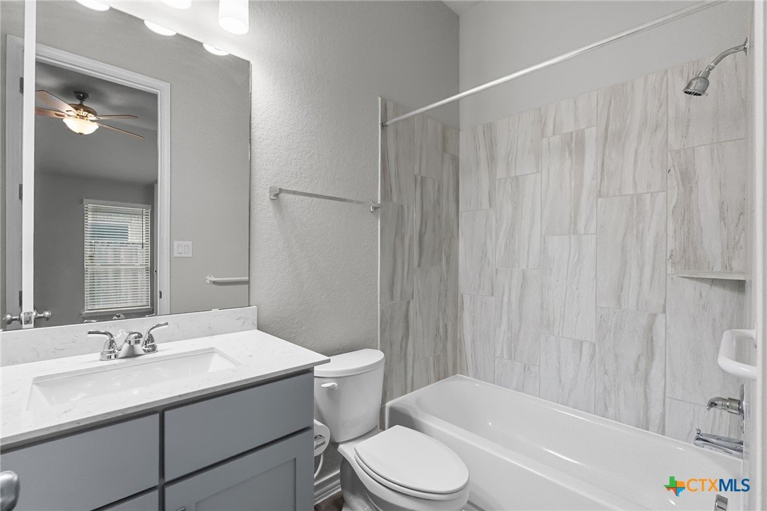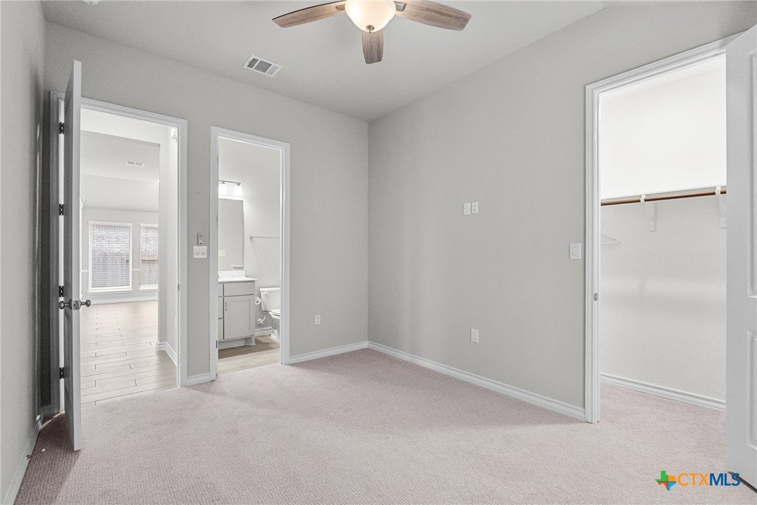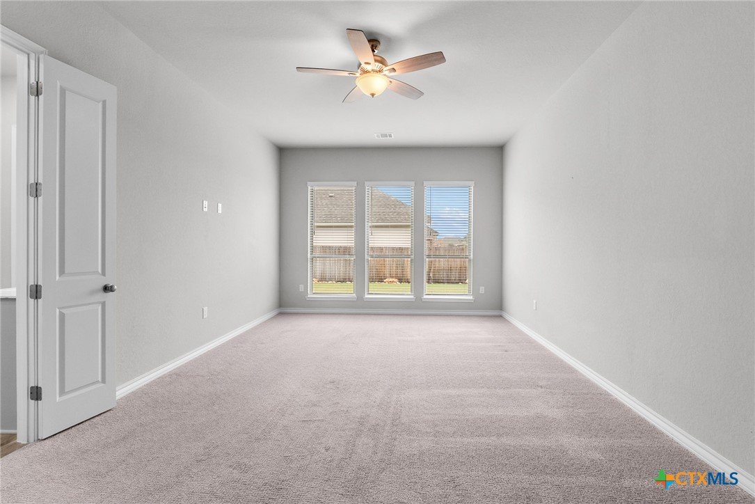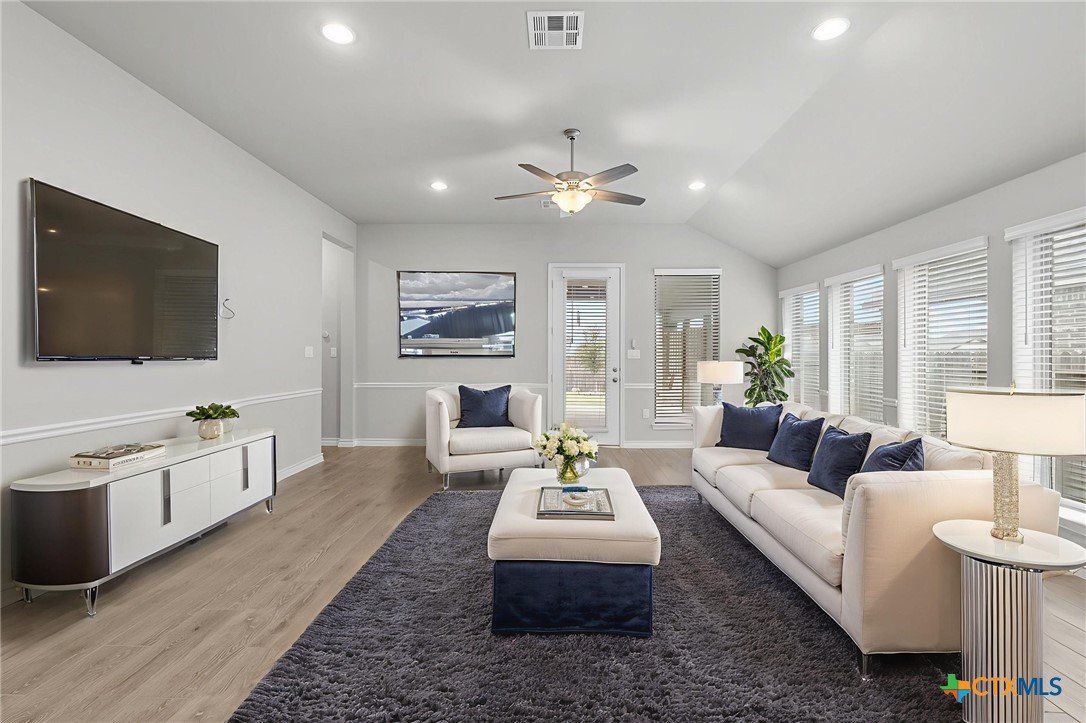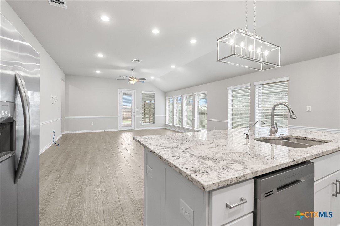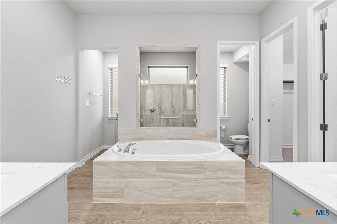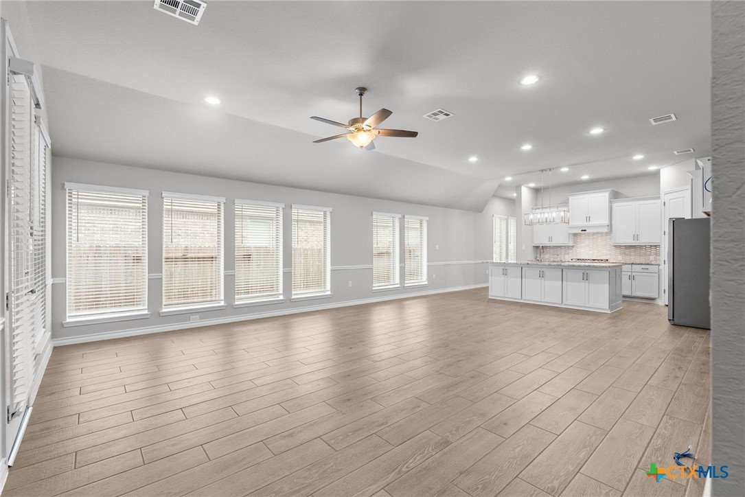 Welcome to 3129 Coral Way, a beautifully upgraded 4-bedroom, 3-bath home located in the highly desirable Village of Mill Creek and Navarro ISD. Built for both comfort and functionality, this single-story layout offers 2,263 sq ft of open-concept living with thoughtful improvements throughout. A bright, inviting kitchen sits at the heart of the home, featuring upgraded cabinets, premium granite countertops, a 5-burner gas cooktop, built-in appliances, and a spacious island perfect for meal prep or gathering. The kitchen refrigerator conveys, and an additional garage refrigerator is also included. The living and dining spaces flow seamlessly, enhanced by ceiling fans in every bedroom, the living room, and the back patio for year-round comfort. All bedrooms feature upgraded carpet and padding, providing a soft, comfortable feel underfoot. The spacious primary suite offers a large bath with separate vanities, a soaking tub, walk-in shower, and generous closet space. Outside, the home continues to impress. The covered back patio includes a privacy panel and mounted TV-ideal for outdoor enjoyment. A gas line is already installed for a future outdoor kitchen, offering additional entertaining potential. The yard is supported by a full sprinkler system, making maintenance simple. Additional upgrades include: Driveway lighting with timer, Garage shelving for added storage, Water filtration system, Blinds throughout the home. This property also features an attached 3-car garage, a beautifully maintained exterior, and a prime location close to New Braunfels, Seguin, schools, shopping, and major commuter routes. With its upgrades, layout, and location, this home is truly move-in ready and offers exceptional value in Navarro ISD.