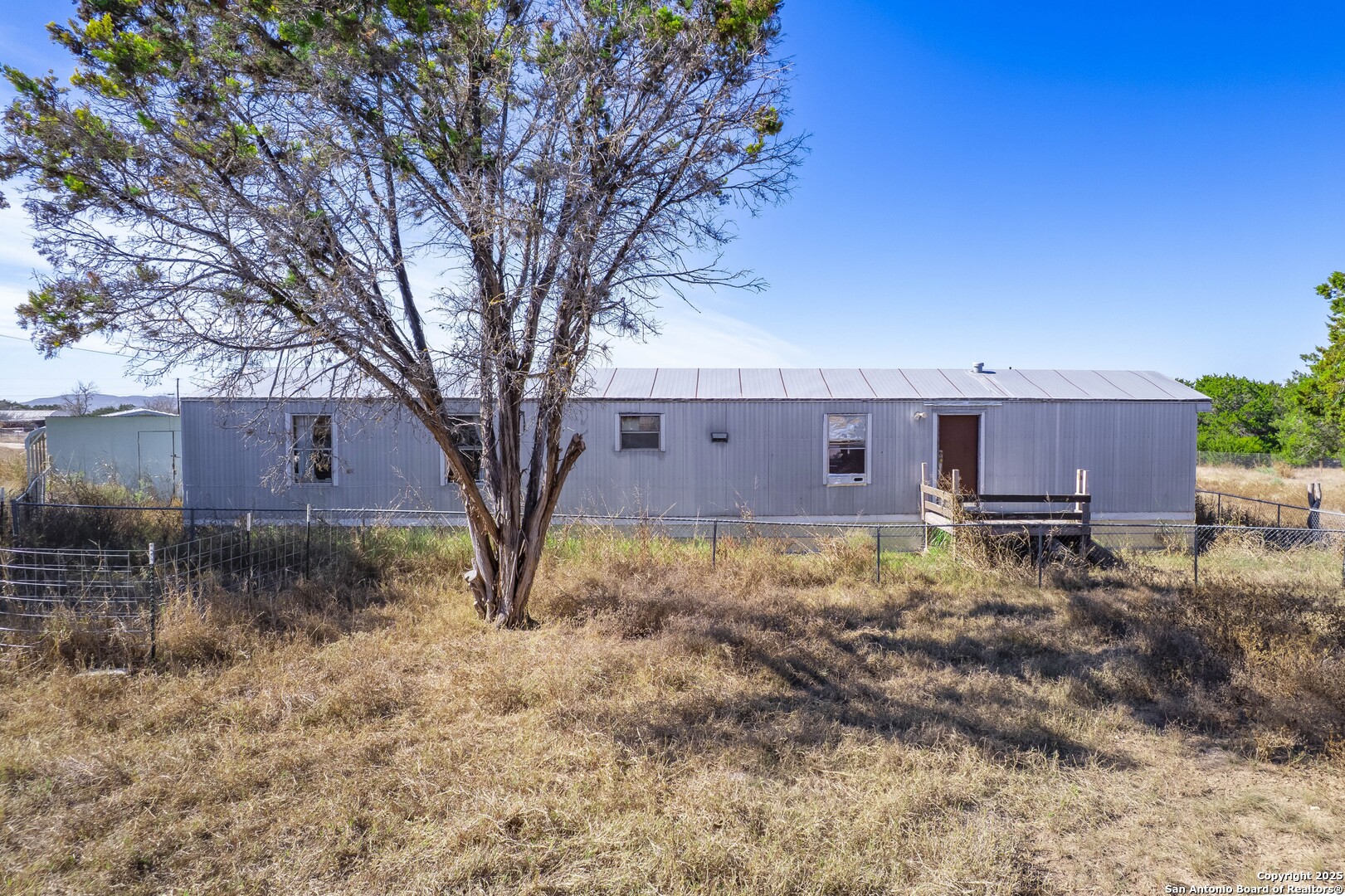 This 5-acre property offers a rare opportunity for country living, with ample space for horses, livestock, or future expansion. The land is fully fenced - three sides with 5 fencing and the fourth side with 4 fencing, though some areas will need repair. It features five pastures, a horse corral, a covered horse shed, and water lines to all pastures, providing convenience and versatility for livestock or hobby farming. A 380-foot deep well with a new pump installed in 2021 supports the property. The single-wide manufactured home, built in 1993, offers 2 bedrooms, 2 bathrooms, and 924 sq ft. Additional improvements include a 2-car carport, a 20x20 powered workshop with a shed, and a new 75 x 20 gravel homesite equipped with water, electric, and a septic dump. The property also includes two RV sites with power, one with septic access, and two electric panels to support current and future utility needs. Conveniently located just minutes from Alkek Elementary School, Bandera Middle School, Bandera High School, and Bandera's shopping, dining, and nightlife, this property combines rural tranquility with convenient access to local amenities. With its functional pastures, multiple utility-ready sites, outbuildings, and ample space, this 5-acre property provides an excellent foundation for creating your ideal country lifestyle.