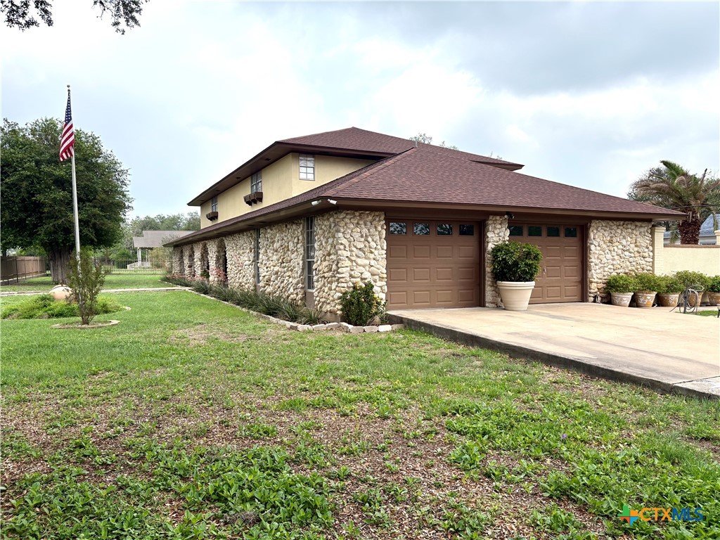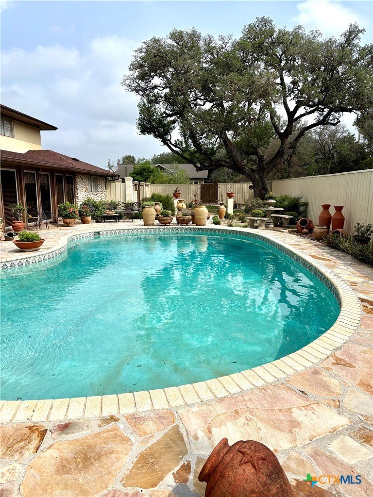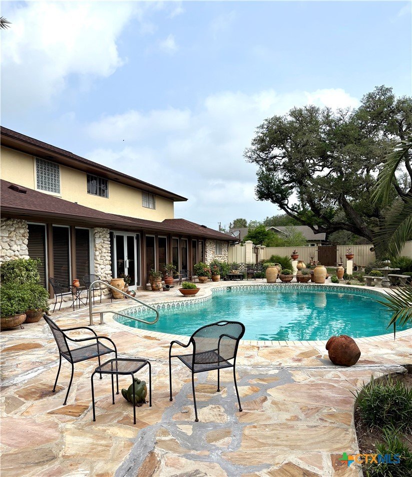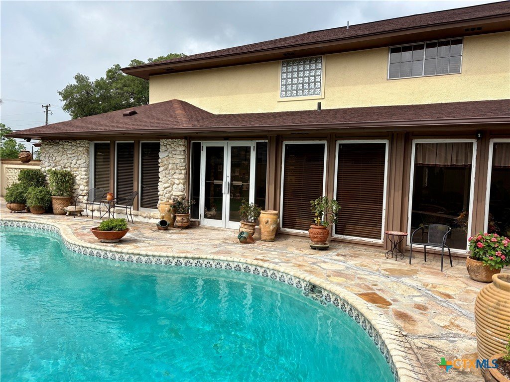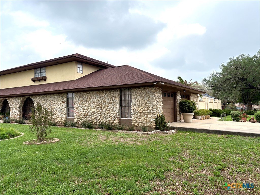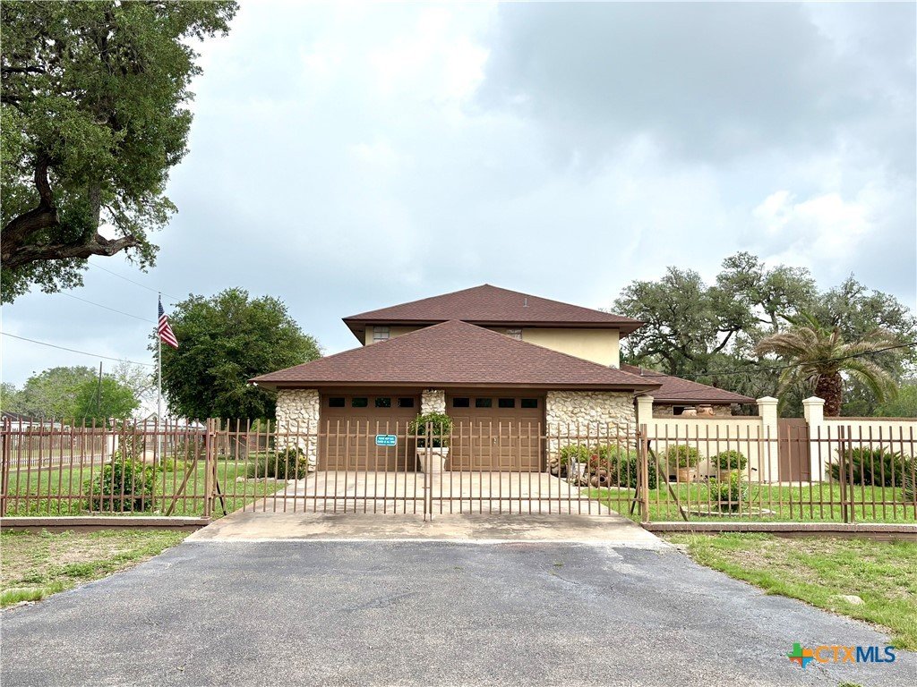 4,000+ square foot Mediterranean style home nestled in the heart of historic Goliad. This exceptional home is offered fully furnished and turnkey, showcasing an exquisite collection of high-end artwork, including authentic Persian rugs and china sets. This spacious home features five bedrooms, four baths, living room, sitting room, dining room, breakfast room, den, sun room, wet-bar and inside laundry room. Ample storage throughout home. Rich hardwood floors and terrazzo tile. Grand foyer with spiral staircase featuring breathtaking chandelier. Upscale finishes including hardwood doors, custom trim and cabinets in each room. Outside features iron perimeter fencing and large yard with sitting areas for entertaining and a large in-ground pool for your own personal oasis.