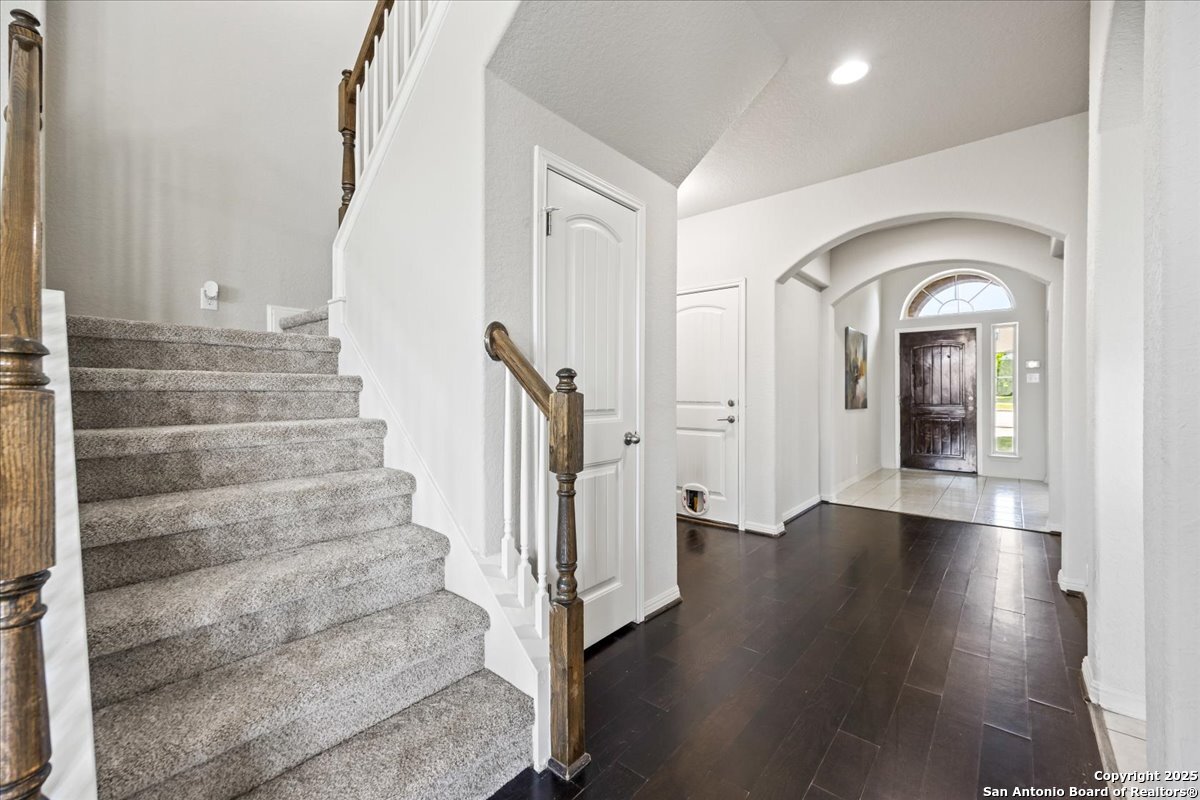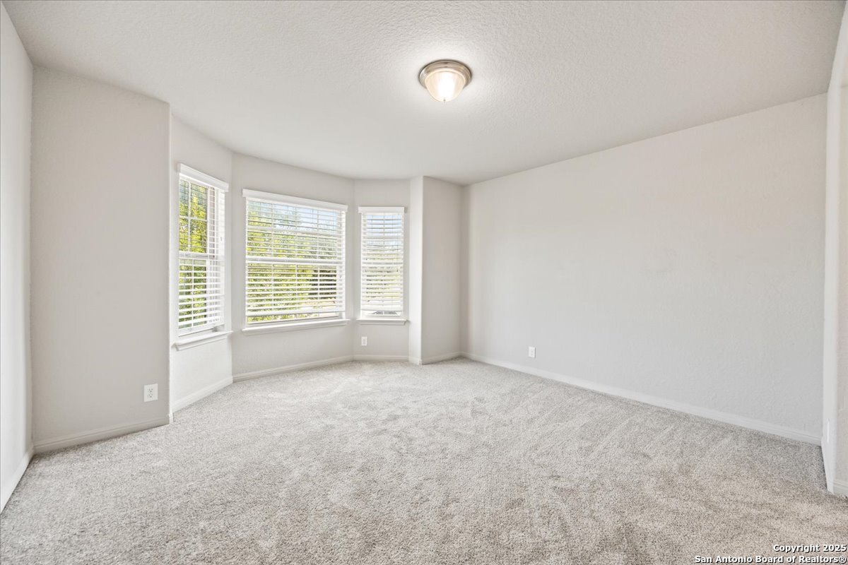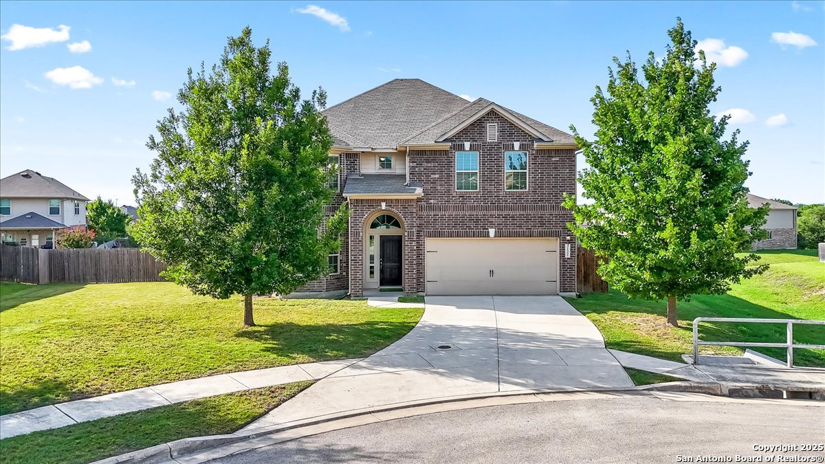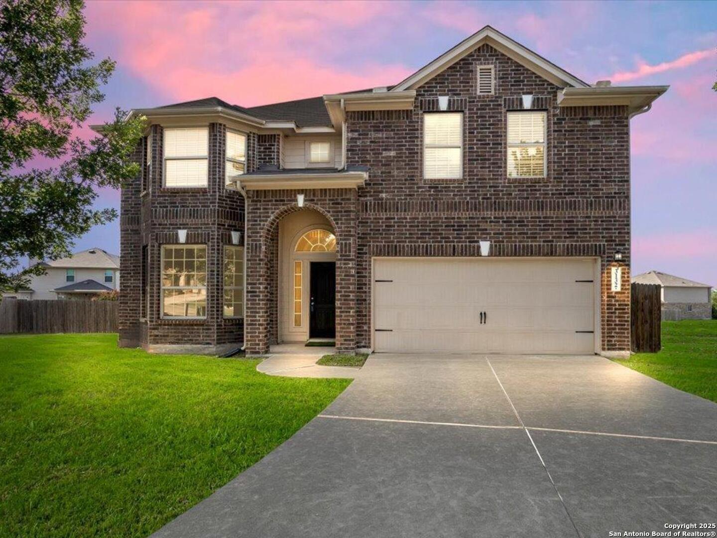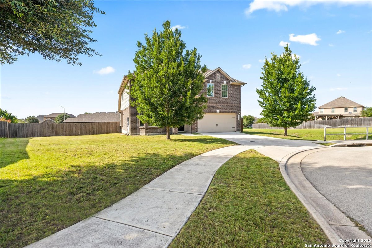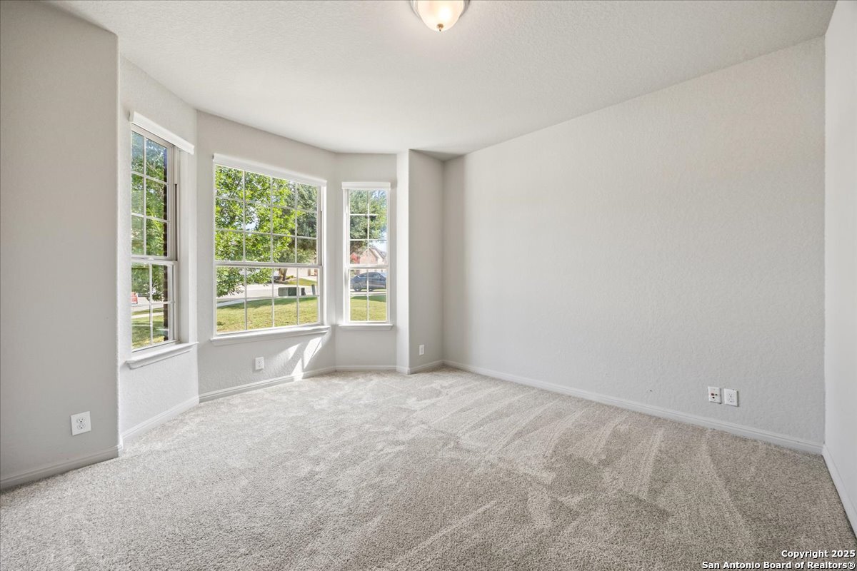 Tucked near the end of a quiet cul-de-sac, 3132 Birch Bend backs to a peaceful greenbelt and sits on an oversized lot with mature trees and added privacy. Inside, you'll find fresh paint, brand-new carpet, espresso cabinetry, granite countertops, and high ceilings throughout the main level. The spacious layout includes a downstairs primary suite, three upstairs bedrooms (including Jack-and-Jill and private en-suite setups), a dedicated office with French doors, and a large media room over the garage. With a fenced yard and plenty of potential, this home is move-in ready and waiting for your personal touch.