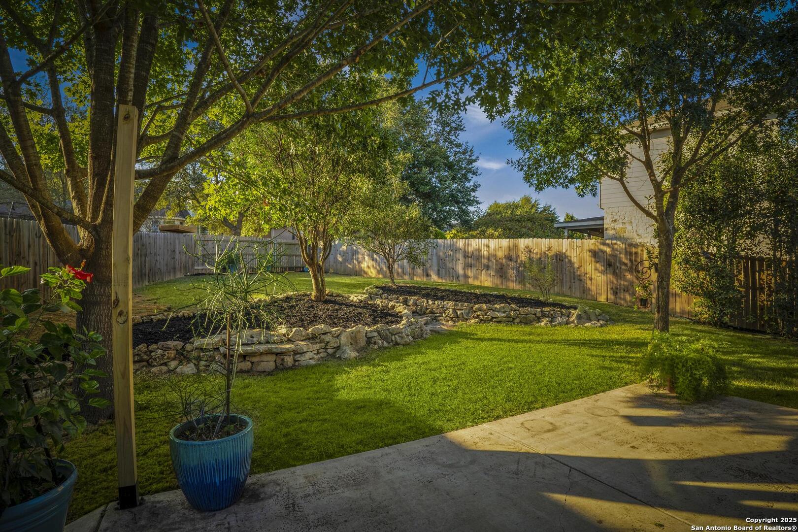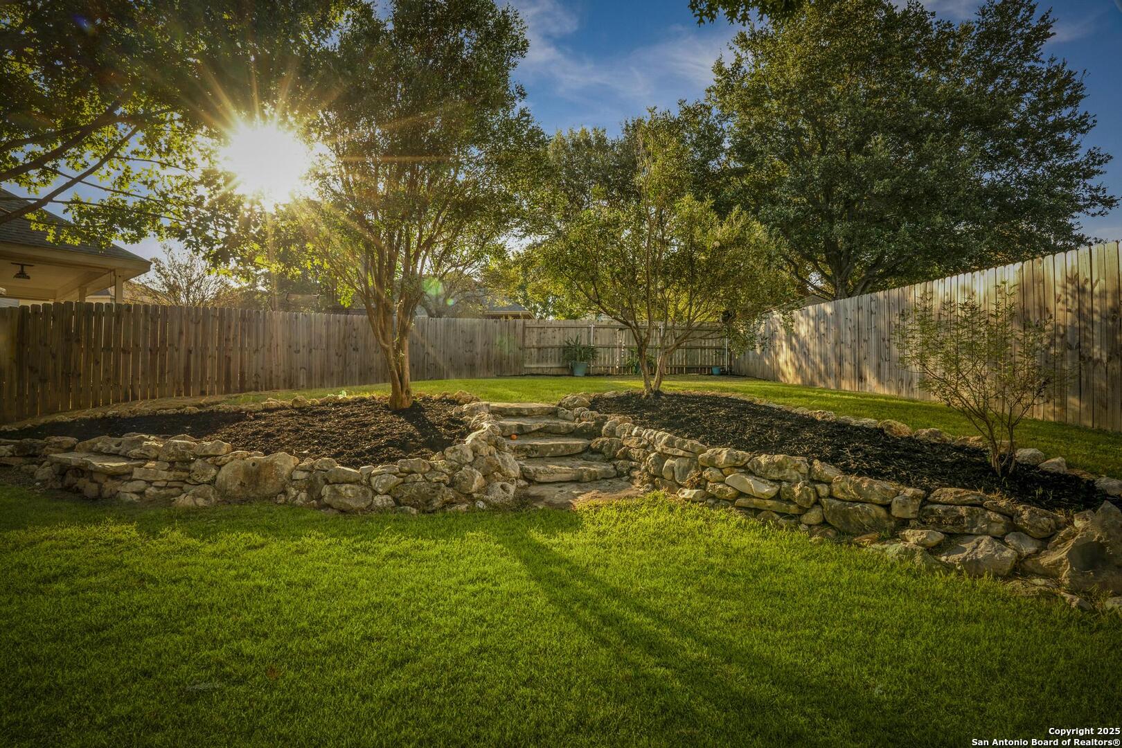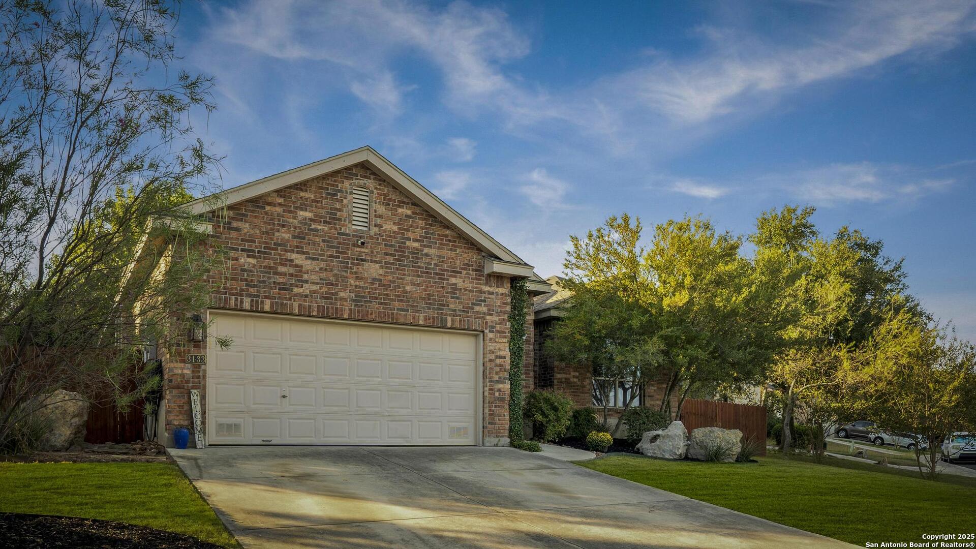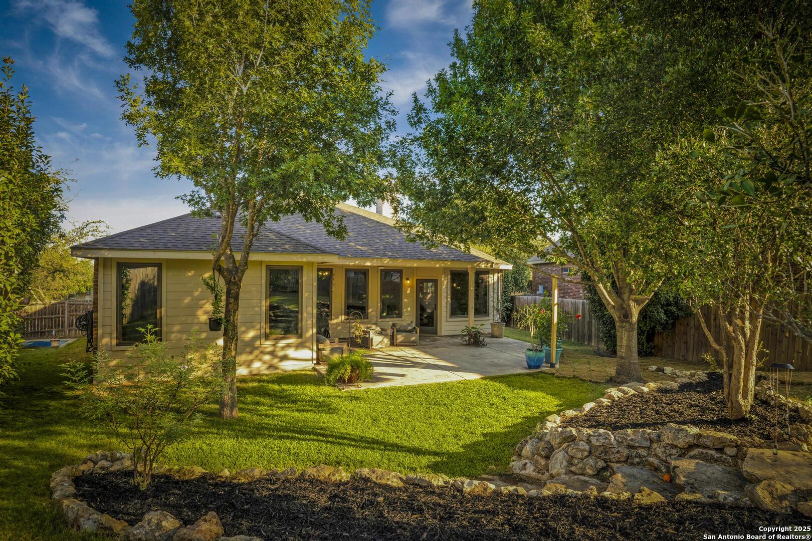 Beautiful one story , 3 bed 2 bath home in Mission Hills Ranch. Location is close to Boerne and Austin with a feeling of Hill country! Owner did a beautiful job choosing windows in the living area to bring the outside in! Walking in the Foyer welcomes you to an open spacious living area with a wood burning Stone Fireplace. Right off the living area you have a separate dining room and also an eat in Kitchen space. Kitchen has new flooring as of 2025,solid counter tops,two tone cabinets, new lighting as of 2025 , Refrigerator, range and Microwave , plenty of light and bright space to cook. There is a laundry room just off the kitchen. Large Split Masterbedroom overlooking the backyard, has a separate garden tub and Shower, new flooring as of 2025 with large walk in closet. 2 large bedrooms and full bath with new flooring complete the inside and then you have your backyard to enjoy! Large Covered Patio to enjoy the professionaly landscaped yard. Come see this well designed home and make it your new home.