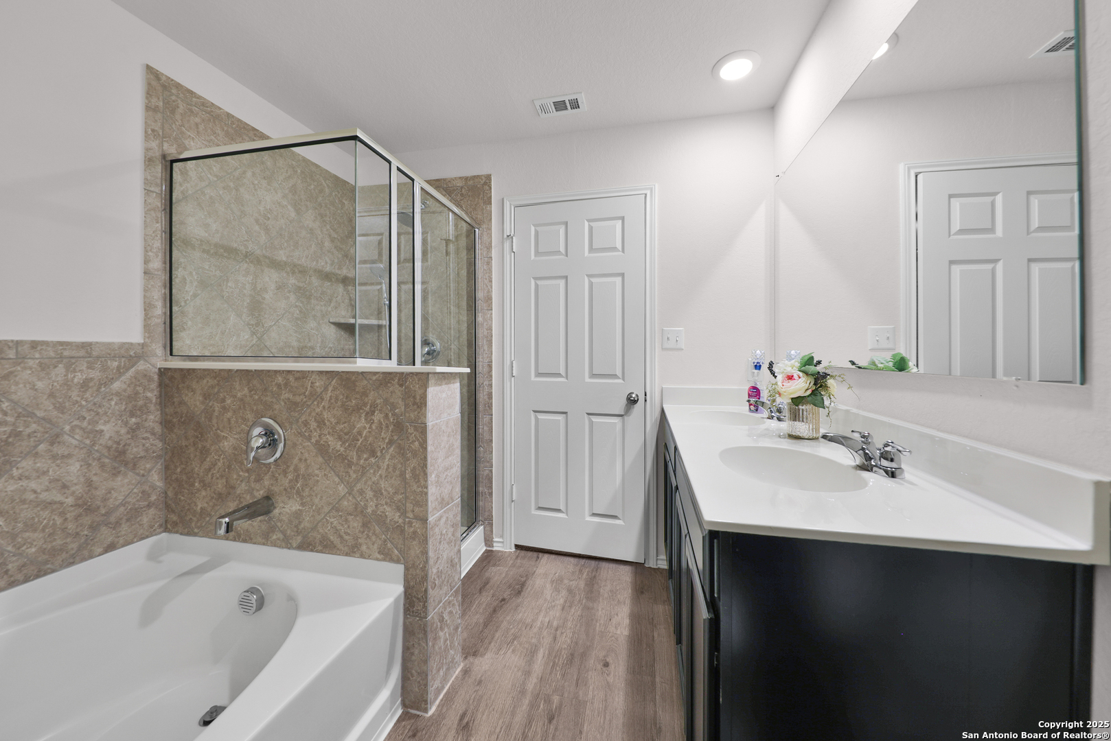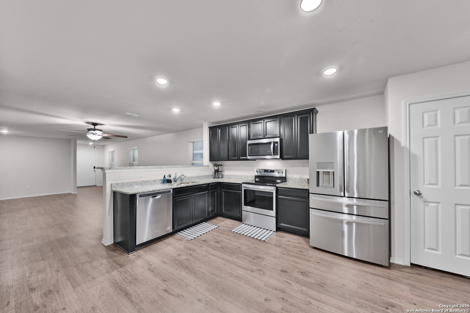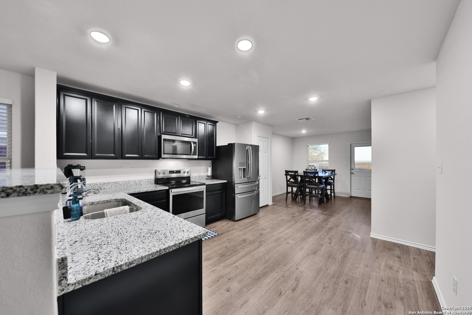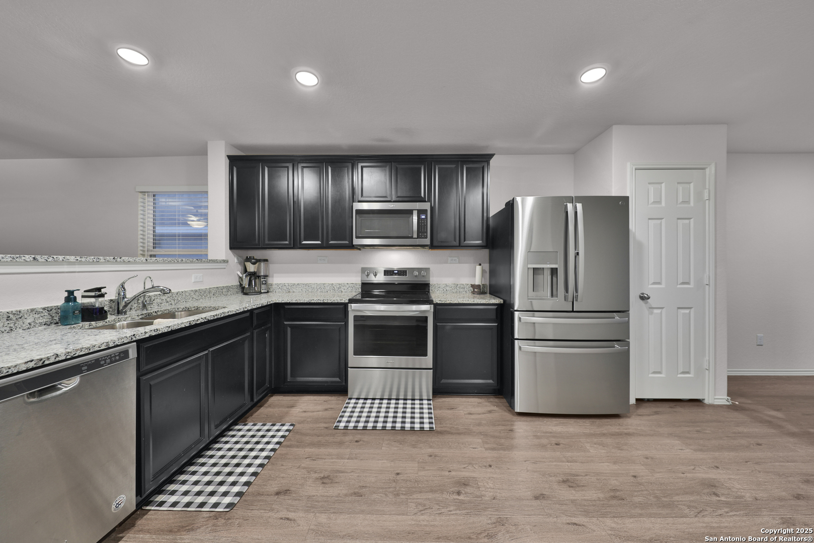 Welcome to this well-kept single-story home in New Braunfels, offering 3 bedrooms, 2 bathrooms, and 1,450 sq ft of comfortable living space. Built in 2020, this home has a functional layout that works well for everyday living. The open living, dining, and kitchen area creates a welcoming space to gather, with plenty of natural light and a layout that feels easy and practical. The kitchen offers ample cabinet space, a center workspace, and a clear view into the main living area-great for both daily routines and casual entertaining. The primary bedroom is privately situated and includes an en-suite bathroom and generous closet space. Two additional bedrooms provide flexibility for guests, a home office, or growing households. Outside, enjoy a fenced backyard with room to relax, grill, or unwind at the end of the day. The home is located in the Overlook at Creekside | The Trails community, offering convenient access to I-35, shopping, dining, and popular New Braunfels attractions including Gruene, Schlitterbahn, and the Comal and Guadalupe Rivers. Located in Comal ISD, this move-in-ready home is a solid option for buyers looking for a newer home in a convenient location.