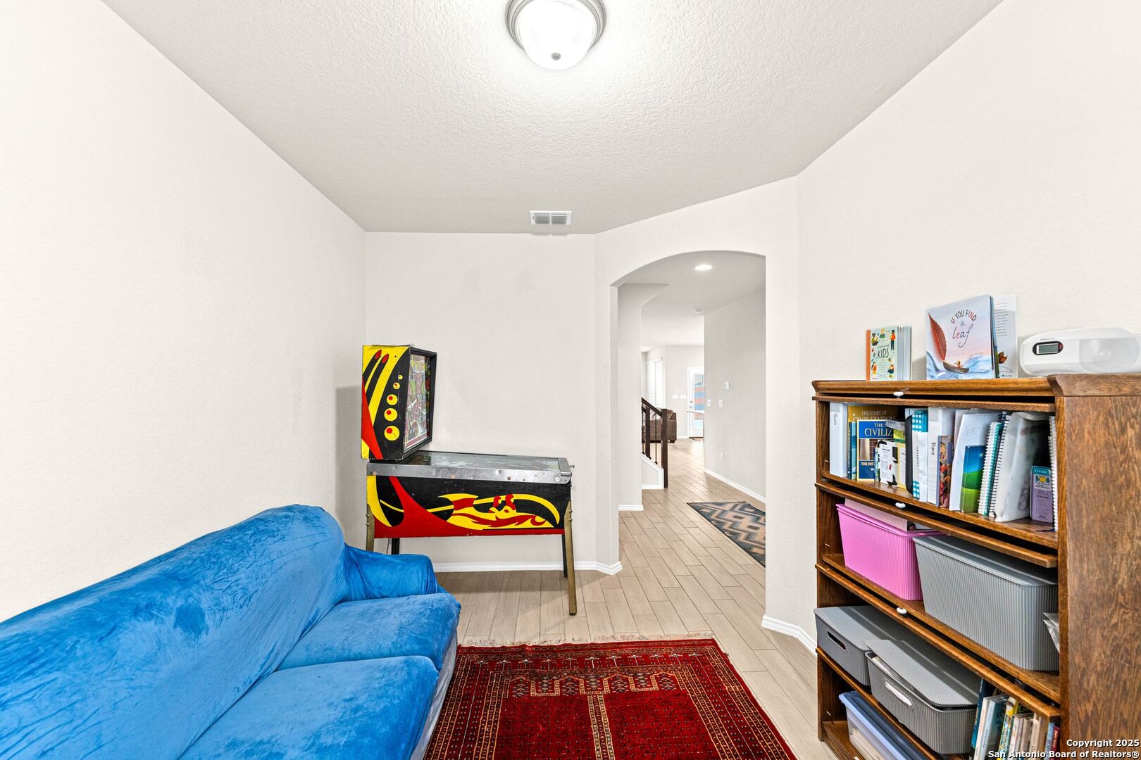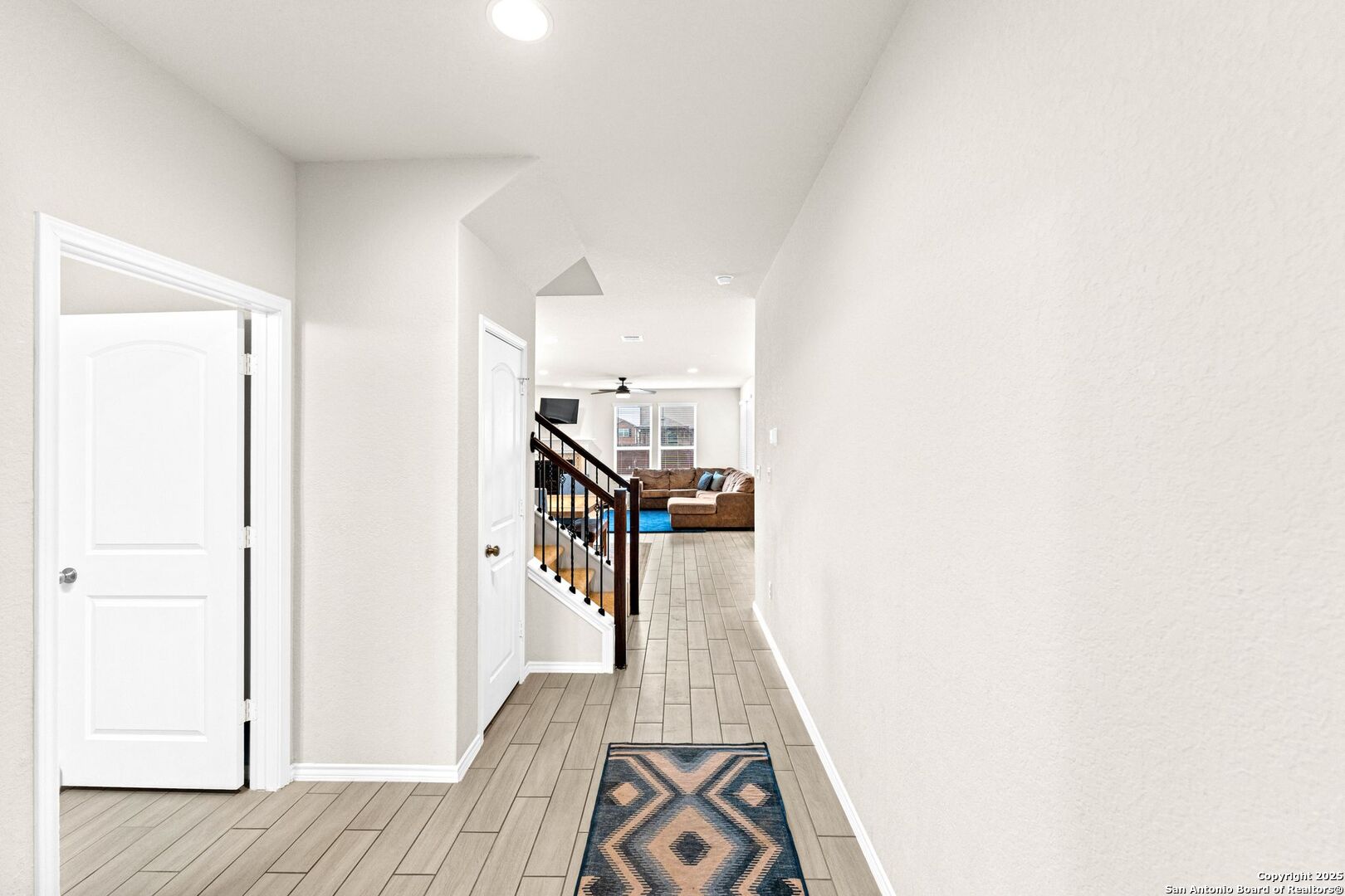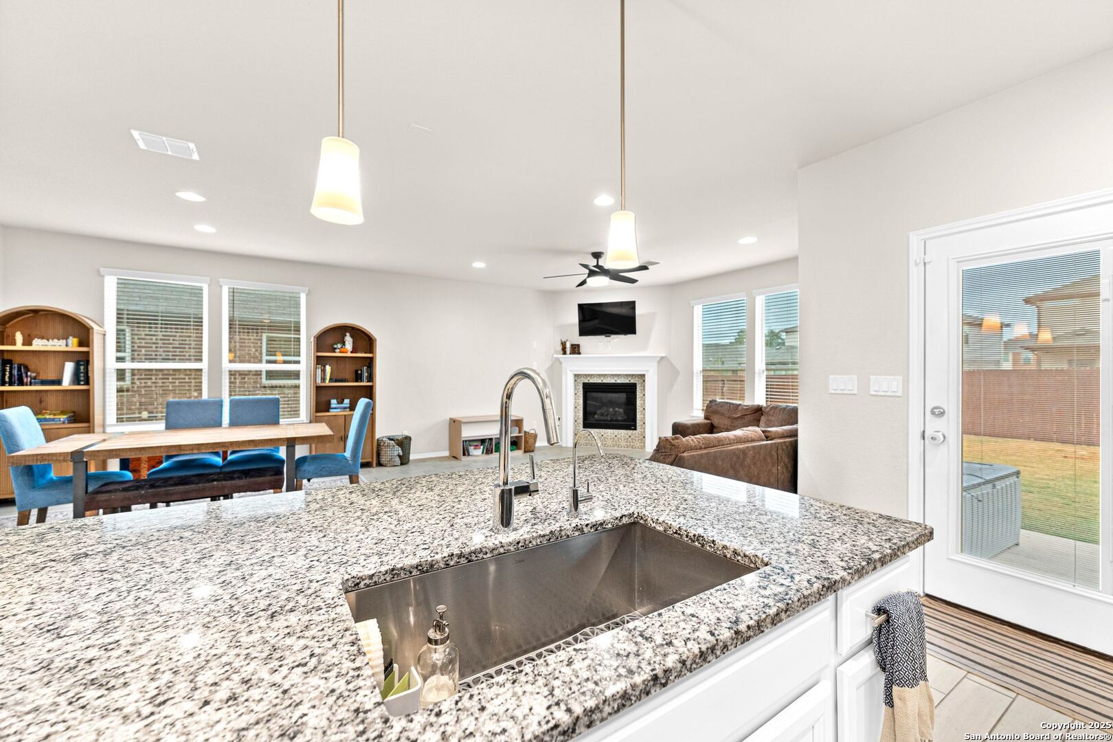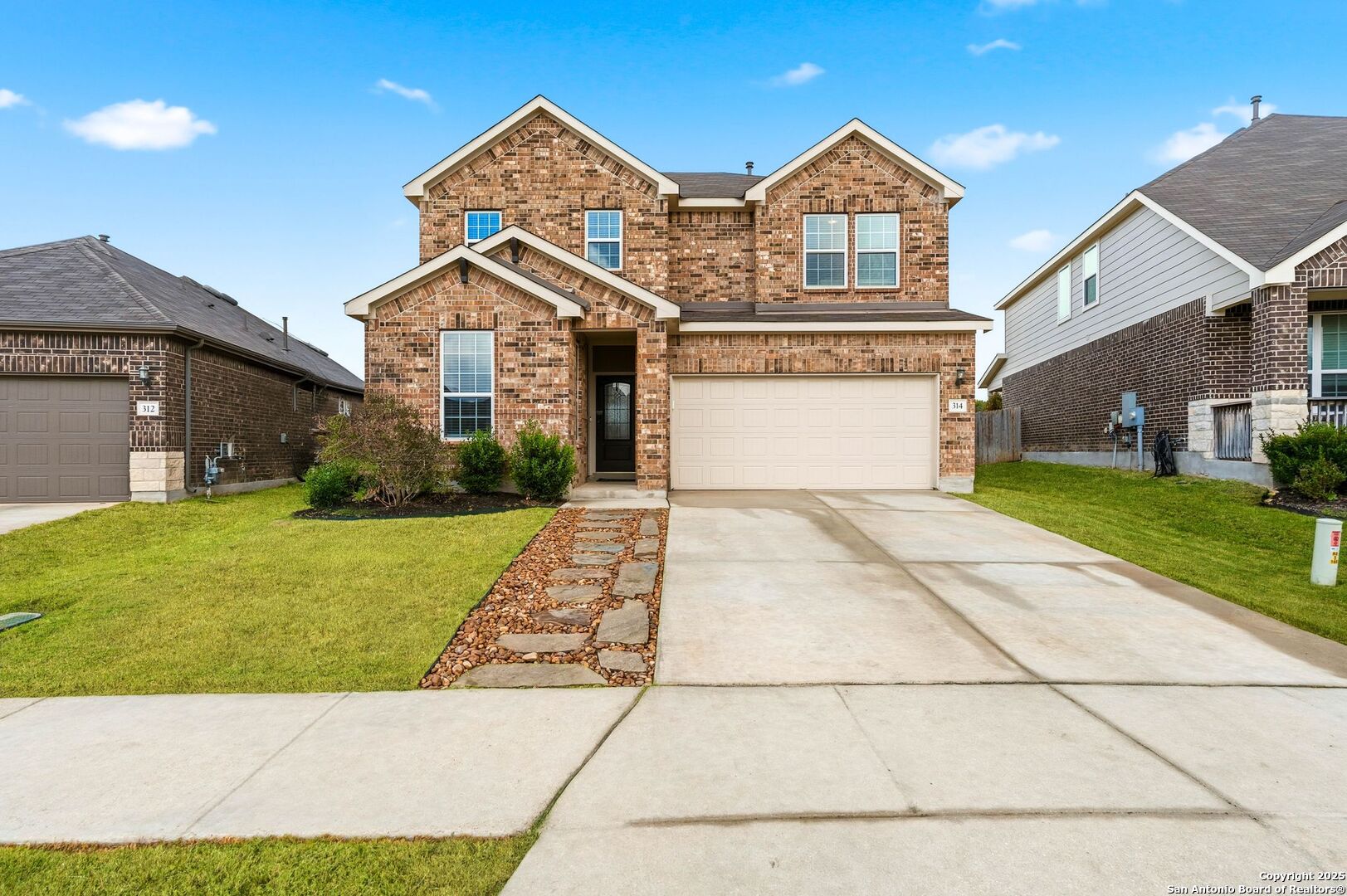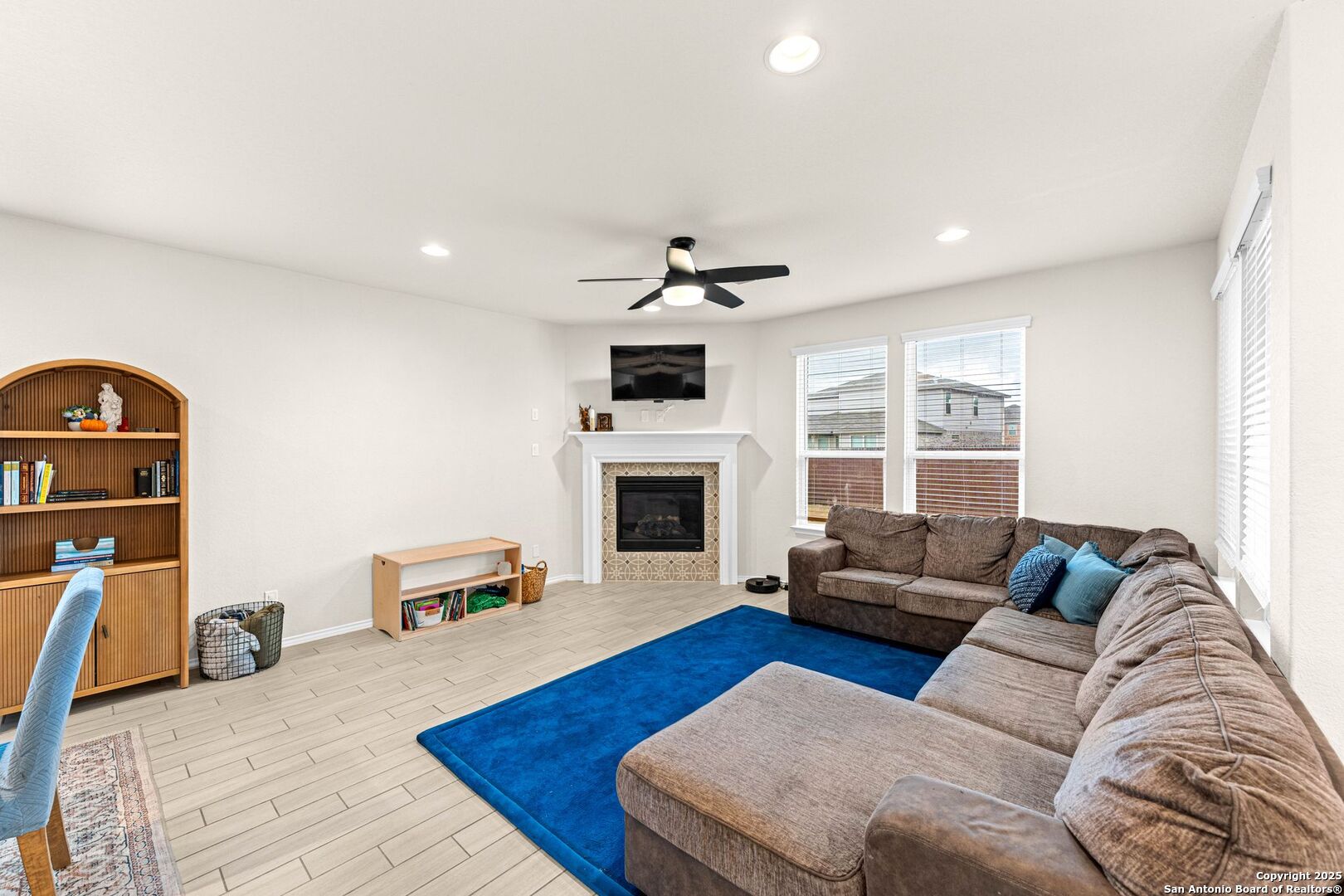 Welcome to Southglen! This inviting two-story home offers a smart, open layout designed for both comfort and convenience. Downstairs features an open-concept living area with tile flooring throughout, a cozy corner fireplace, and a dedicated front office perfect for working from home. The spacious kitchen offers a gas cooktop, abundant cabinet space, and plenty of natural light. A handy micro office off the kitchen helps keep life organized. Upstairs, you'll find three spacious bedrooms, including a large primary suite with a relaxing garden tub, separate shower, and generous walk-in closet. A walk-in laundry room is conveniently located between the bedrooms, and a loft/game room provides flexible space for movie nights, playtime, or a home gym. Step outside to a large backyard with a covered patio, perfect for evenings outdoors or weekend BBQs. Residents of Southglen enjoy access to a community park and pool for year-round fun. Ideally located just 1.5 miles from Cascade Caverns, less than 5 minutes to H-E-B, and about 10 minutes from both downtown Boerne and San Antonio, this home combines small-town charm with big-city convenience