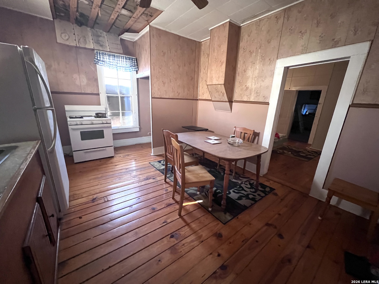 Step into a piece of history with this unique 1921 home offering 4 bedrooms, 2 bathrooms, and two full kitchens-a rare layout with exceptional flexibility and potential. Original wood floors, beadboard walls, high ceilings, and period details highlight the home's timeless character and craftsmanship. The dual-kitchen configuration allows for multiple living arrangements, including multi-generational use, guest accommodations, or future reconfiguration (buyer to verify). A welcoming front porch, mature trees, and abundant natural light add to the home's enduring appeal. Property is being sold AS-IS. Cash buyers preferred; owner financing available. Due to condition, traditional financing may be limited. This home presents a compelling opportunity for investors or renovation buyers seeking to restore, reimagine, or preserve a truly distinctive property. A rare chance to own a historic home with uncommon features and strong upside potential-ready for its next chapter.