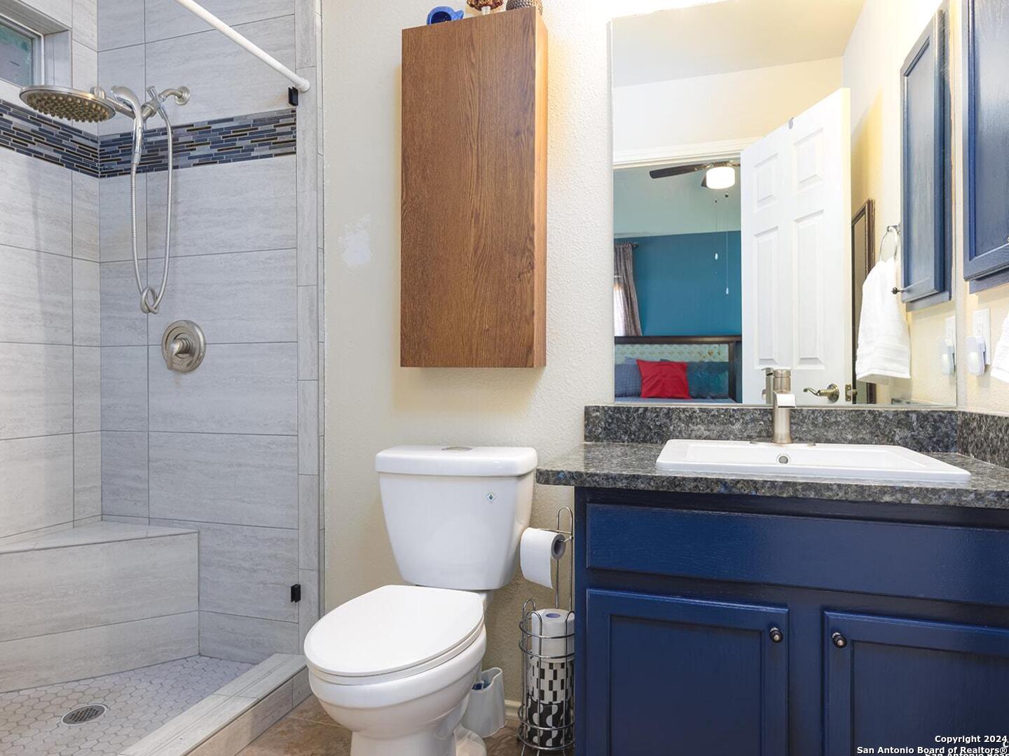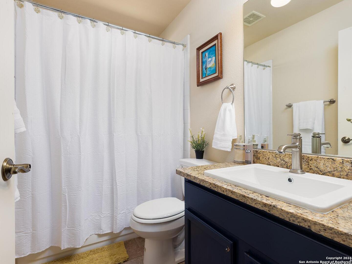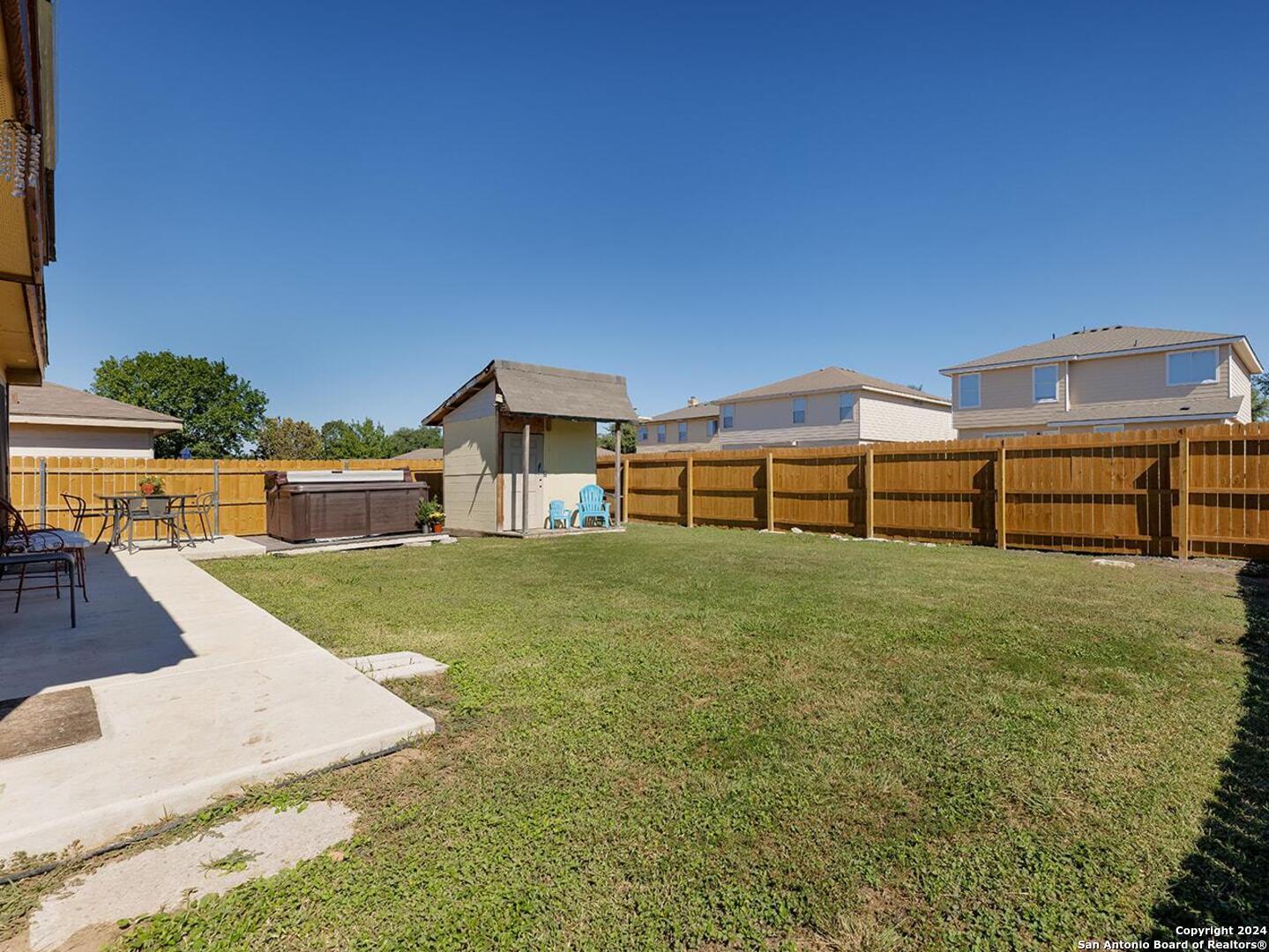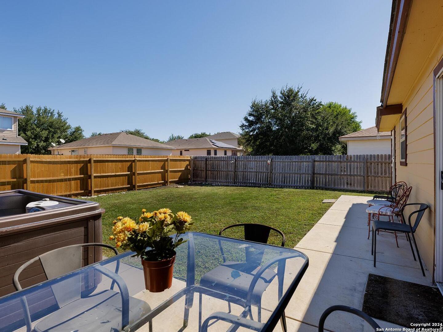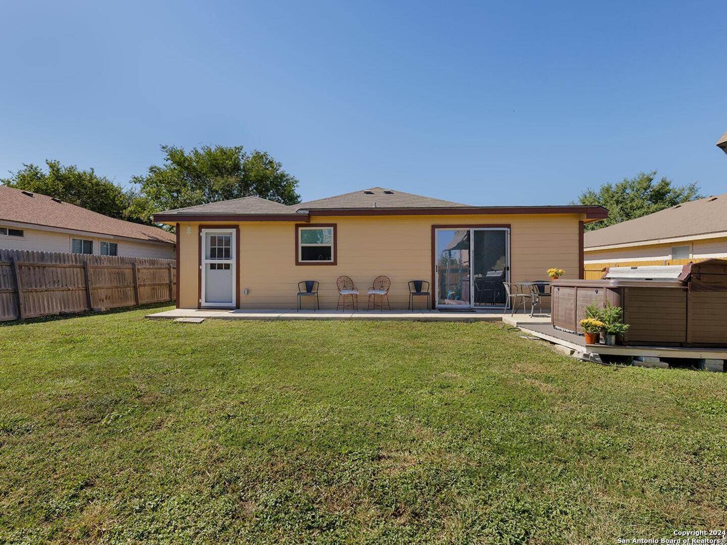 4/2/2 New Braunfels west of I-35....very spacious home beautifully updated w/ granite and modern kitchen cabinets, 18" tile flooring, roofing and more in this single story / split plan. REFRIGERATOR & SPA included! RECENTLY UPGRADED this home now boasts TWO PRIMARY SUITE WALK-IN CLOSETS. Enjoy weekend coffee in the added master sitting area with direct sliding door access to (DOOR REPLACE JUNE) your HOT TUB! The extended family room now opens to a spacious dining area. A granite high-top breakfast bar accommodates meal prep and quick breakfasts. The ensuite bath has a remodeled oversized shower (glass install-May/24). An expanse of patio walkway connects the kitchen to the outdoor table and spa area. Float the rivers! WALK or BIKE TO "A" Rated ELEMENTARY SCHOOL. More updates include all granite tops, interior and exterior paint, recent shed paint, recent roof replacement, built-in appliances, lighting and fixtures.