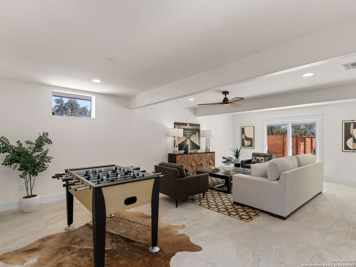 Newly reconstructed and reimagined for lake life luxury, this four level showpiece delivers panoramic Canyon Lake views from multiple upper decks, including a dramatic rooftop terrace, and features a private pool and outdoor kitchen for effortless entertaining. The 4,250 sq ft contemporary layout centers on an open, light-filled main floor with an island kitchen, walk-in pantry, and generous living and dining spaces that spill outdoors. A residential elevator serves every level. The flexible plan provides four bedrooms, three full and two half baths, an upper level primary retreat with spa style bath, plus bonus spaces for media, office, or guests. Recent reconstruction modernized systems and finishes while preserving dramatic lake views and extensive deck space (270 vistas). The property sits on a nearly 0.39 acre corner lot with fenced yard, nearby boat ramp access, marinas, parks and more. Purpose built for lock and eave ease with smart storage and contemporary systems throughout - this home is Hill Country living at its most elevated.
