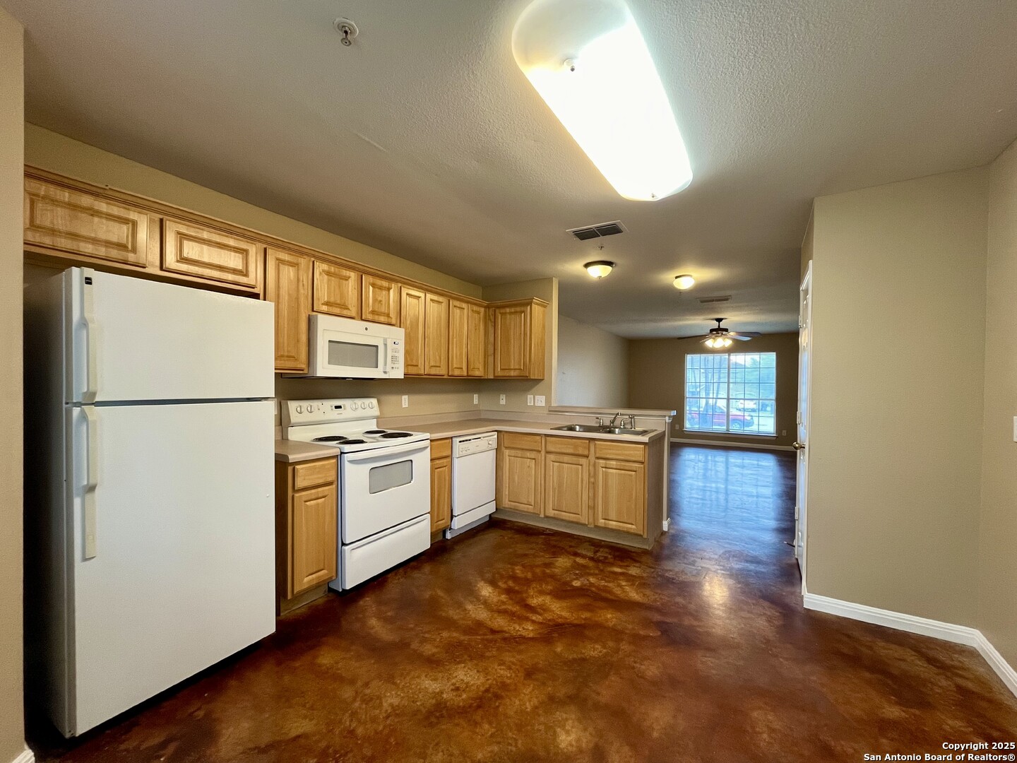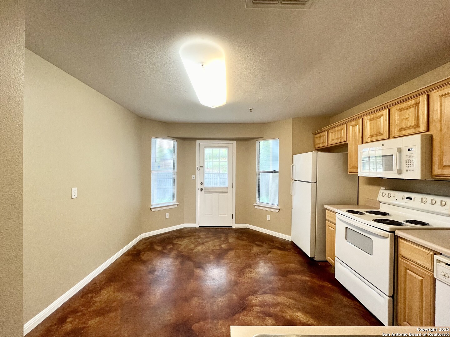 Welcome to this spacious 3-bedroom, 2-bathroom multiplex unit designed for modern comfort. Upon entering, you'll be greeted by the main areas, featuring stained concrete flooring, offering both durability and style, while plush carpet flooring in the bedrooms provides comfort and warmth. Stay comfortable year-round with the HVAC unit equipped with a programmable thermostat, allowing for personalized climate control. The kitchen is a chef's delight, boasting a breakfast bar, dishwasher, microwave, refrigerator and stove, providing functionality and convenience for culinary endeavors. Retreat to the primary bedroom, which features an ensuite bathroom complete with a shower/garden tub combo, single vanity and a spacious walk-in closet, offering a serene sanctuary for relaxation. A dedicated laundry room comes equipped with washer and dryer hookups, adding convenience to your daily routine. Step outside to discover a tranquil backyard oasis with a covered patio, mature trees and a privacy fence perfect for outdoor gatherings and quiet moments. Located on a cul-de-sac, this home offers added privacy and minimal through traffic. Community perks include proximity to shopping, making errands and leisure easily accessible. Parking is convenient with a one-car garage that includes a door opener, providing secure storage for your vehicle and more. Don't miss the opportunity to make this exceptional 3-bedroom, 2-bath home your next residence. "*Our award winning Resident Benefits Package (RBP) required program includes Liability Insurance, Pest Control, Monthly Air Filter Delivery, Move-in Concierge (utilities/cable/internet), Credit Building, Resident Rewards, Identity Fraud Protection and more for only $65/mo. *If you provide your own insurance policy, the RBP cost will be reduced. Optional Premium Upgrades Available as well, More details in application. *PET APPS $30 with credit card/debit payment per profile or $25 by ACH per profile. All information in this marketing material is deemed reliable but is not guaranteed. Prospective tenants are advised to independently verify all information, including property features, availability, and lease terms, to their satisfaction. *some marketing photos may be virtually staged images*"