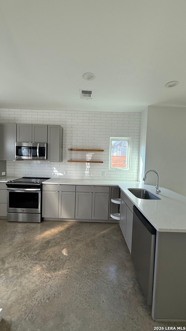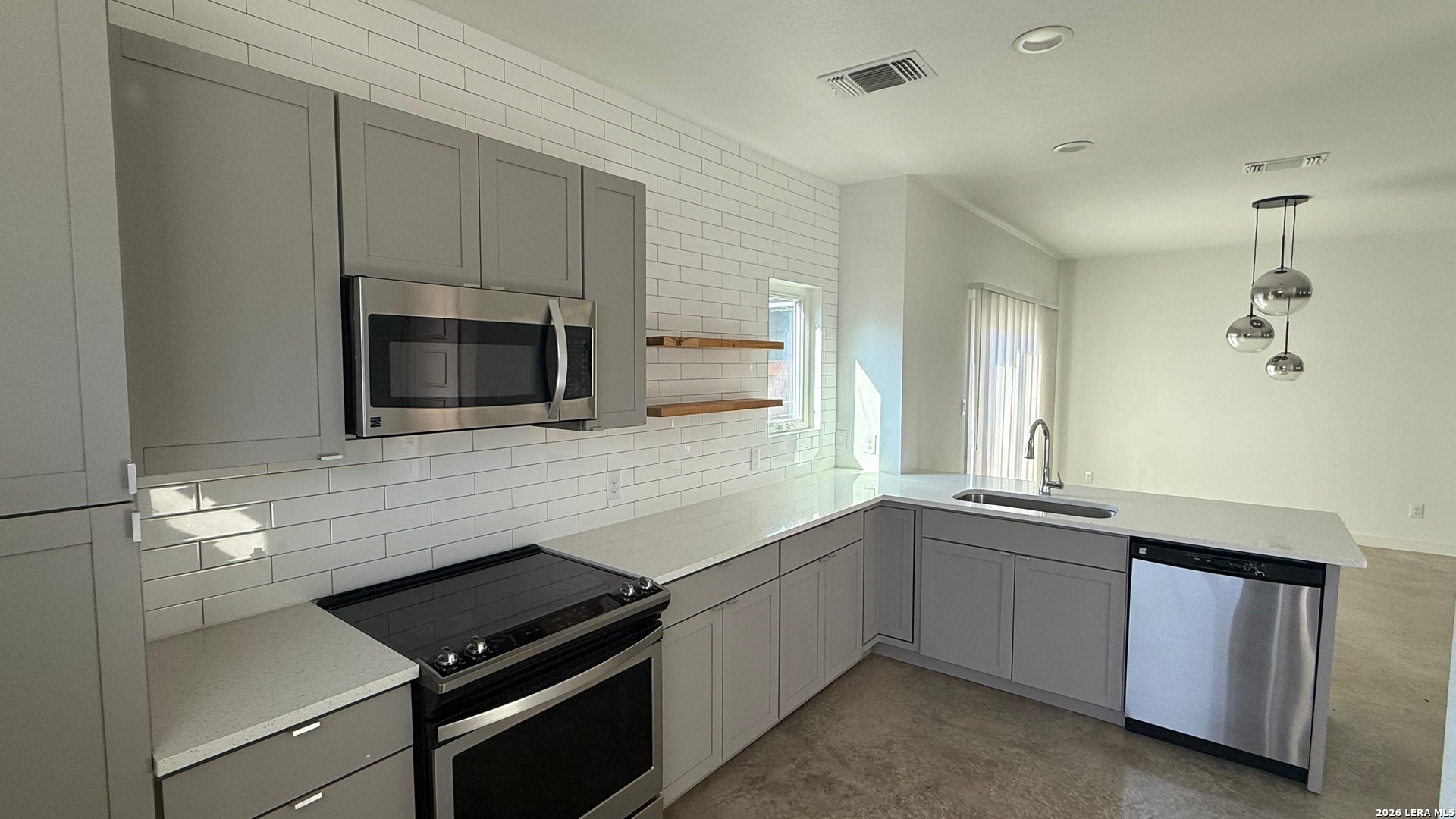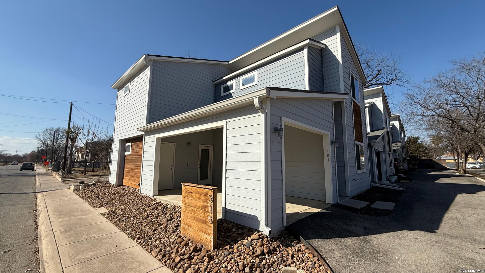 Live in the heart of Southtown in this stunning contemporary home just minutes from the San Antonio River, Roosevelt Park, and Freetail Brewing. Enjoy walkable city living with some of San Antonio's best outdoor spaces, dining, and local culture right at your doorstep. This modern home features a bright, open-concept floor plan with sleek concrete floors on the main level for a clean, industrial-chic feel. The kitchen is thoughtfully designed with custom cabinetry, white quartz countertops, and a striking tile accent wall that extends from counter to ceiling, perfect for both everyday living and entertaining. Upstairs, you'll find durable, deluxe waterproof vinyl flooring throughout. The spacious primary bedroom offers beautiful natural light, creating an airy retreat. The ensuite bath includes a double vanity with ceramic sinks and a floor to ceiling walk-in shower. Modern style, prime location, and low-maintenance living- schedule your private showing today!