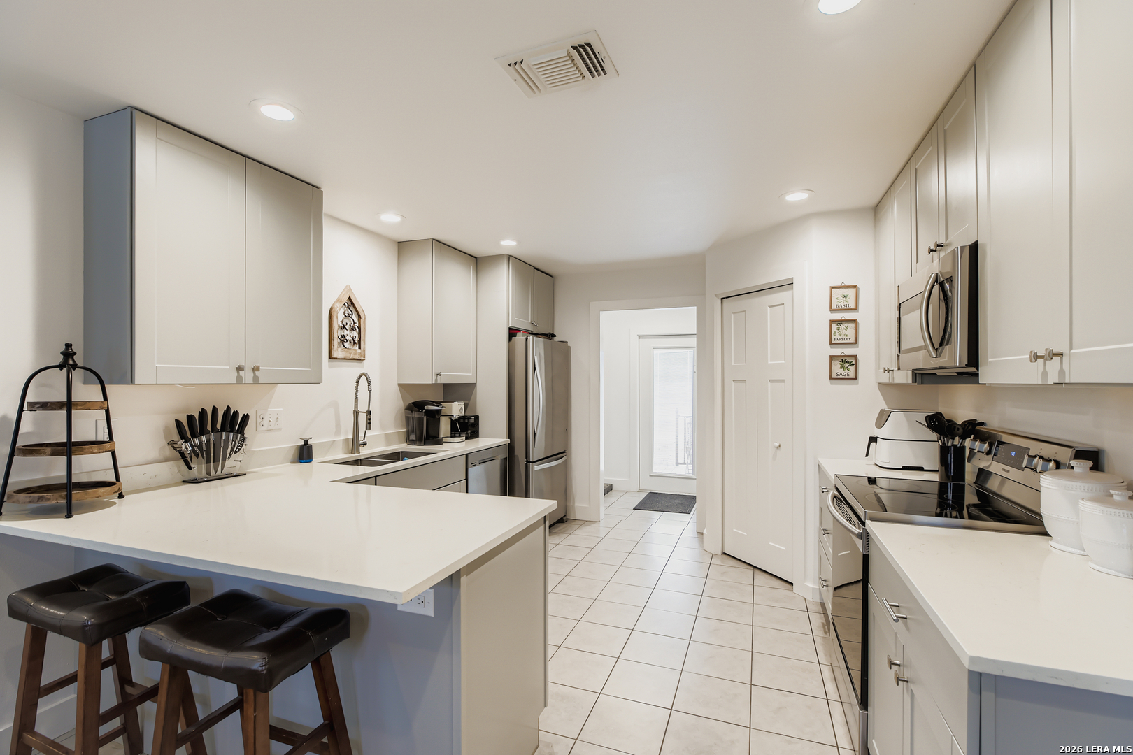 Welcome to this beautifully remodeled and inviting 3-bedroom, 2-bathroom home nestled in an established community in the heart of Kerrville. Designed with an open and airy floorplan, the home is filled with natural light and offers a seamless flow between the living and dining areas, both centrally located to the spacious kitchen. The kitchen impresses with generous storage, sleek quartz countertops, and a full appliance package including washer, dryer, stove, refrigerator, and dishwasher, making everyday living effortless. The primary suite is thoughtfully positioned within the layout for added privacy and features a luxurious ensuite bath and walk-in closet, while the secondary bedrooms are well-sized and versatile. Step outside to enjoy a huge backyard complete with a deck, perfect for relaxing or entertaining. With quick access to local amenities, shopping, dining, and all areas of Kerrville, this move-in-ready home offers comfort, style, and convenience in a desirable setting.
