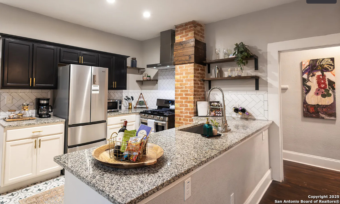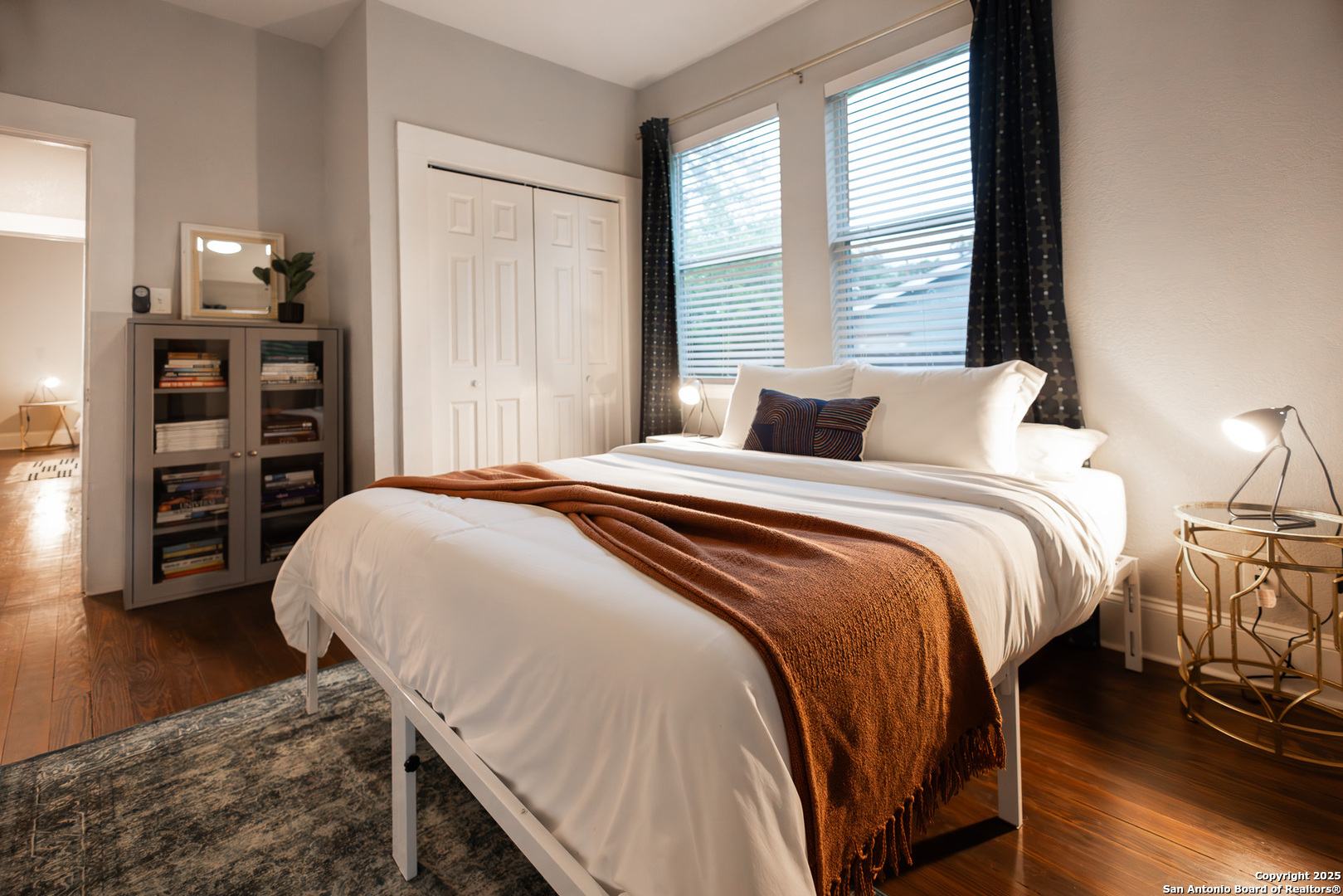 IF YOU LOVE OLD WORLD CHARM WITH MODERN CONVIENCES, THIS IS IT. ORIGINAL PINE HARDWOOD FLOORS AND ARCHITECTURE KITCHEN UPDATED WITH NEW APPLIANCES, GRANITE COUNTERTOPS, VANITIES, SHOWER AND MORE. THE KITCHEN FEATURES STAINLESS-STEEL APPLIANCES INCLUDING GAS RANGE AND COOKTOP AND LARGE STAINLESS-STEEL SINK PLUS UPDATED CABINETS. NEW MASTER BEDROOM AND BATH AND DECK ADDED IN 2018. MASTER BEDROOM IS BIG FOR THIS SIZE HOME WITH A BATHROOM FEATURING A HUGE WALK-IN SHOWER AND OUTSIDE ACCESS TO YOUR OWN PRIVATE DECK THAT WOULD BE GREAT FOR RELAXING AT THE END OF THE DAY OR BARBEQUING ALL WHILE BEING SUROUNDED BY A BEAUTIFUL PECAN TREE. THE 2ND AND 3D BEDROOMS ARE GOOD SIZE AND HAVE AMPLE STORAGE AND THE SECOND BATH HAS ALSO BEEN UPDATED AND FEATURES A TUB/SHOWER. WHEN YOU DRIVE UP YOU WILL NOTICE THE FLOWERS, NATIVE PLANTS, LEMON TREE AND LARGE FRONT PORCH ALL ADDING TO THE CURB APPEAL OF YOUR NEW HOME. MINUTES TO FORT SAM AND BAMC, 10 MINUTES TO DOWNTOWN AND MUCH MORE.