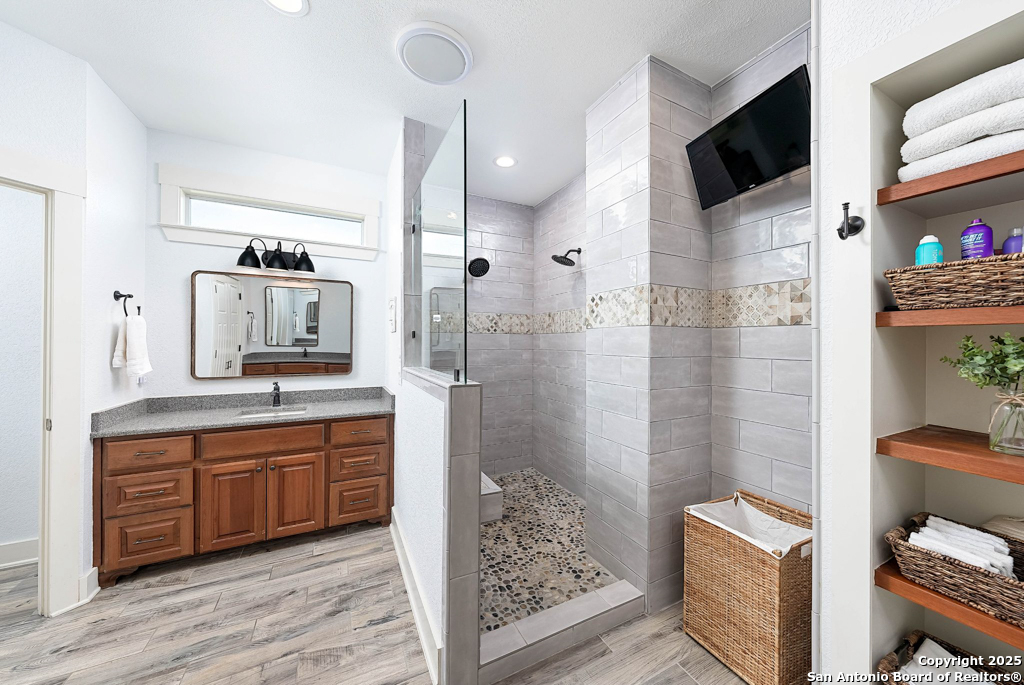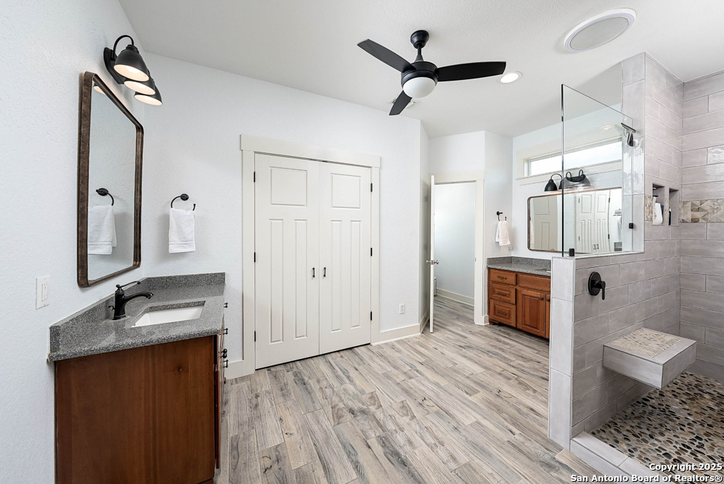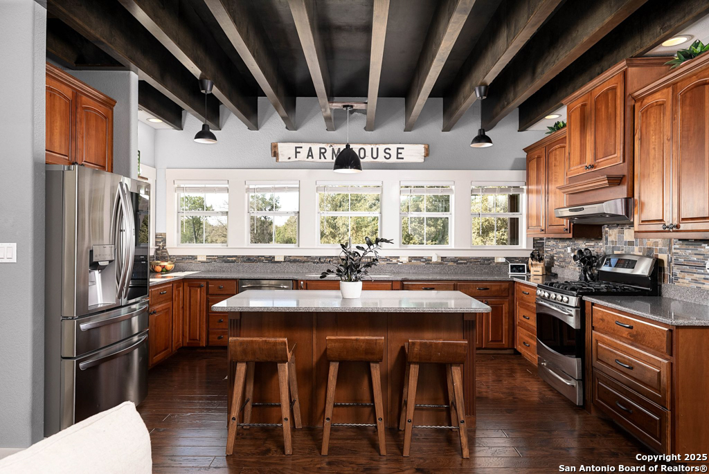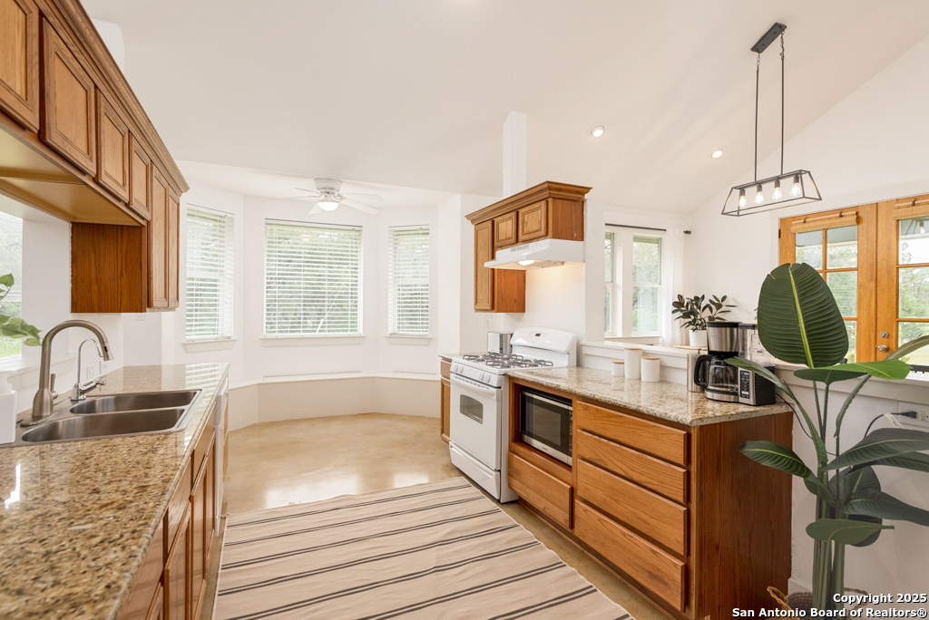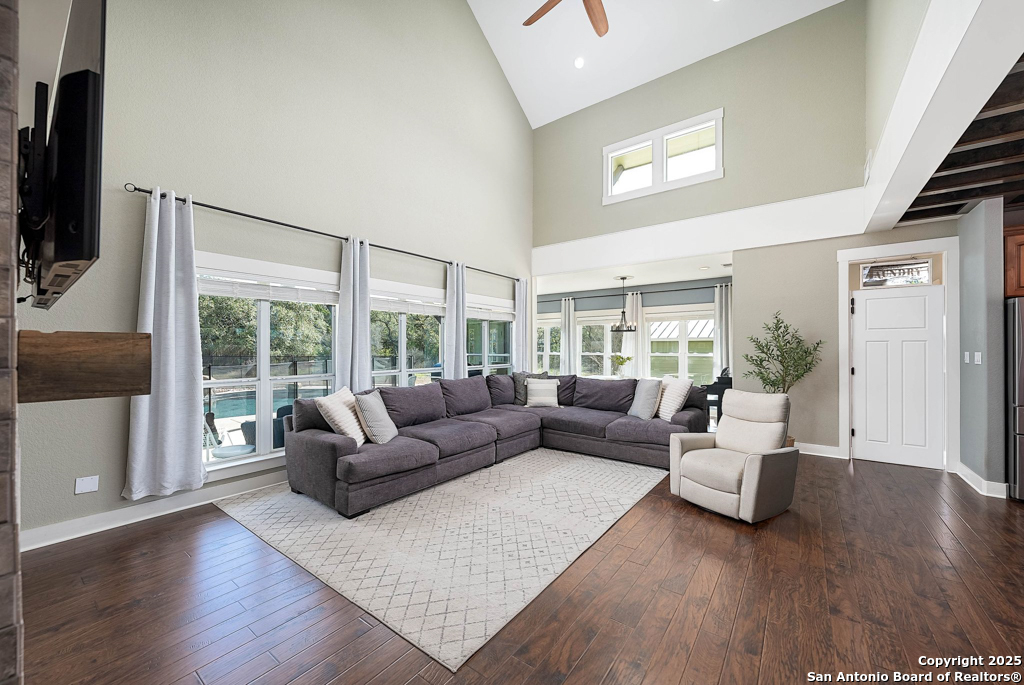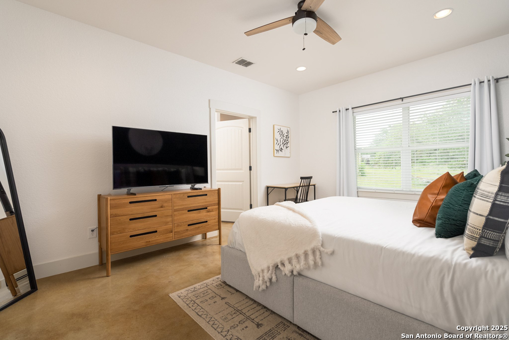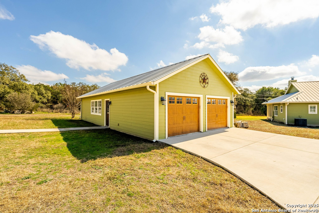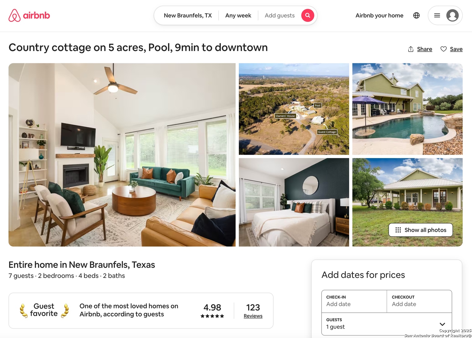 Discover luxury country living on this wooded 5-acre estate in the New Braunfels hill country, featuring two distinct homes offering incredible versatility for multi-generational living or a smart investment strategy. This unique property comprises a main residence and a separate guest cottage.The main residence, a light-filled 2,688 sq ft contemporary Craftsman, provides the primary living space with 4 bedrooms and 2.5 baths and boasts soaring cathedral ceilings and premium finishes throughout. The detached guest cottage, a charming 1,516 sq ft single-story dwelling that was recently remodeled, offers a completely separate living space with 2 bedrooms and 2 baths, and a welcoming modern design. This cottage is currently a successful short-term rental, having grossed over $110K in its first two years, presenting a fantastic income opportunity that can contribute significantly to your dream lifestyle! Unwind poolside or entertain guests with the resort-style PebbleTec pool and spa, complete with a built-in table and umbrella, Baja shelf, and waterfall. The property boasts a 1,179 sq. ft. climate-controlled garage, large enough for four cars, a workshop, a quiet home office, or the ultimate game room. Both homes feature high-end amenities including gas fireplaces, tankless water heaters, energy-efficient heat pumps, and granite countertops. Enjoy complete privacy and self-sufficiency with a private well (goodbye, water bills!), two subterranean propane tanks, and a custom, oversized aerobic septic system. Just outside city limits but minutes from downtown, this acreage property offers the perfect blend of country tranquility and city accessibility. Nowhere else will you find five unrestricted acres this close to town, so schedule a private tour today to experience this once-in-a-lifetime opportunity before it's gone.