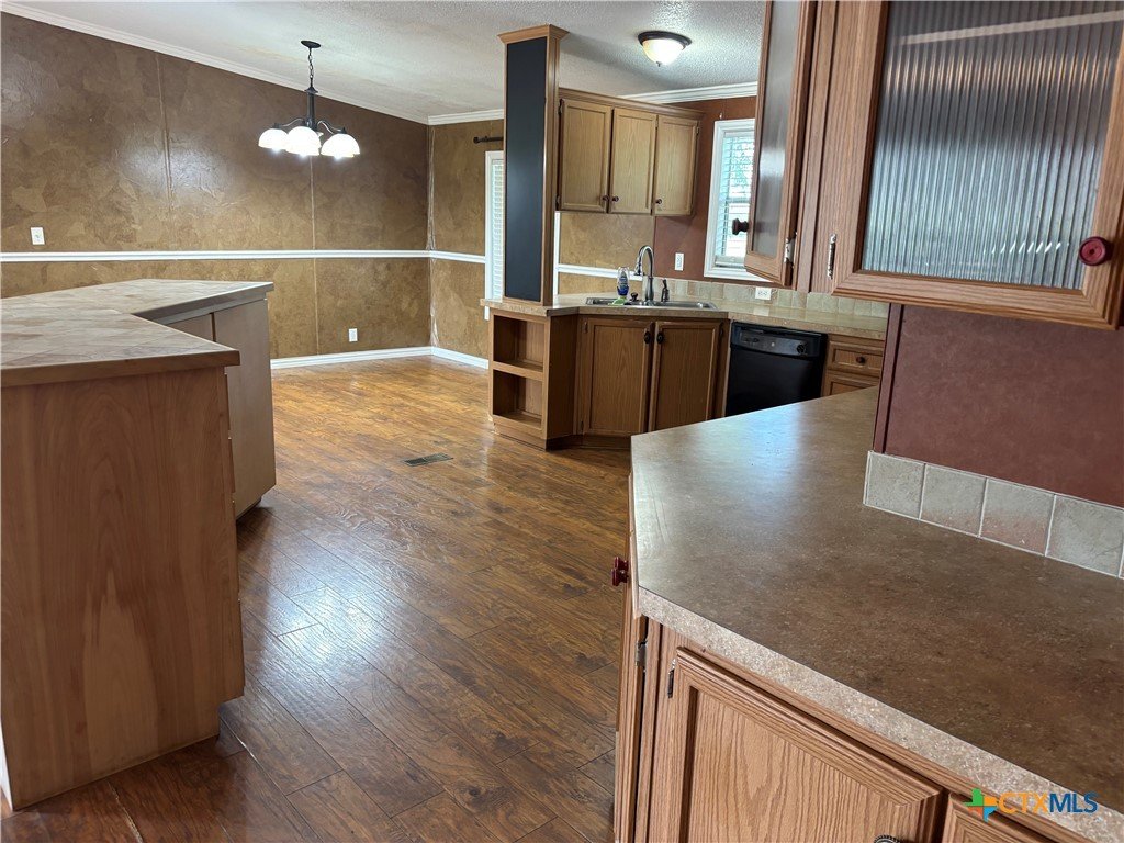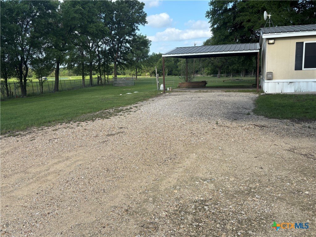 Well-maintained manufactured home situated on a spacious, tree-covered lot offering privacy and flexibility. The property features mature hardwood trees, a fenced yard, and a large gravel driveway with ample parking, plus a covered carport. Interior offers an open-concept floor plan with wood-look flooring throughout the main living areas. Kitchen includes abundant cabinetry, wraparound counter space, and a center island overlooking the living and dining areas. Exterior highlights include a shaded concrete patio, fire pit area, and expansive yard with room for recreation, pets, or future improvements. Convenient access to nearby roadways while maintaining a quiet, country setting. Ideal for owner-occupant or investment use. This could easily be smaill storage facility, lay down yard or commercial yard