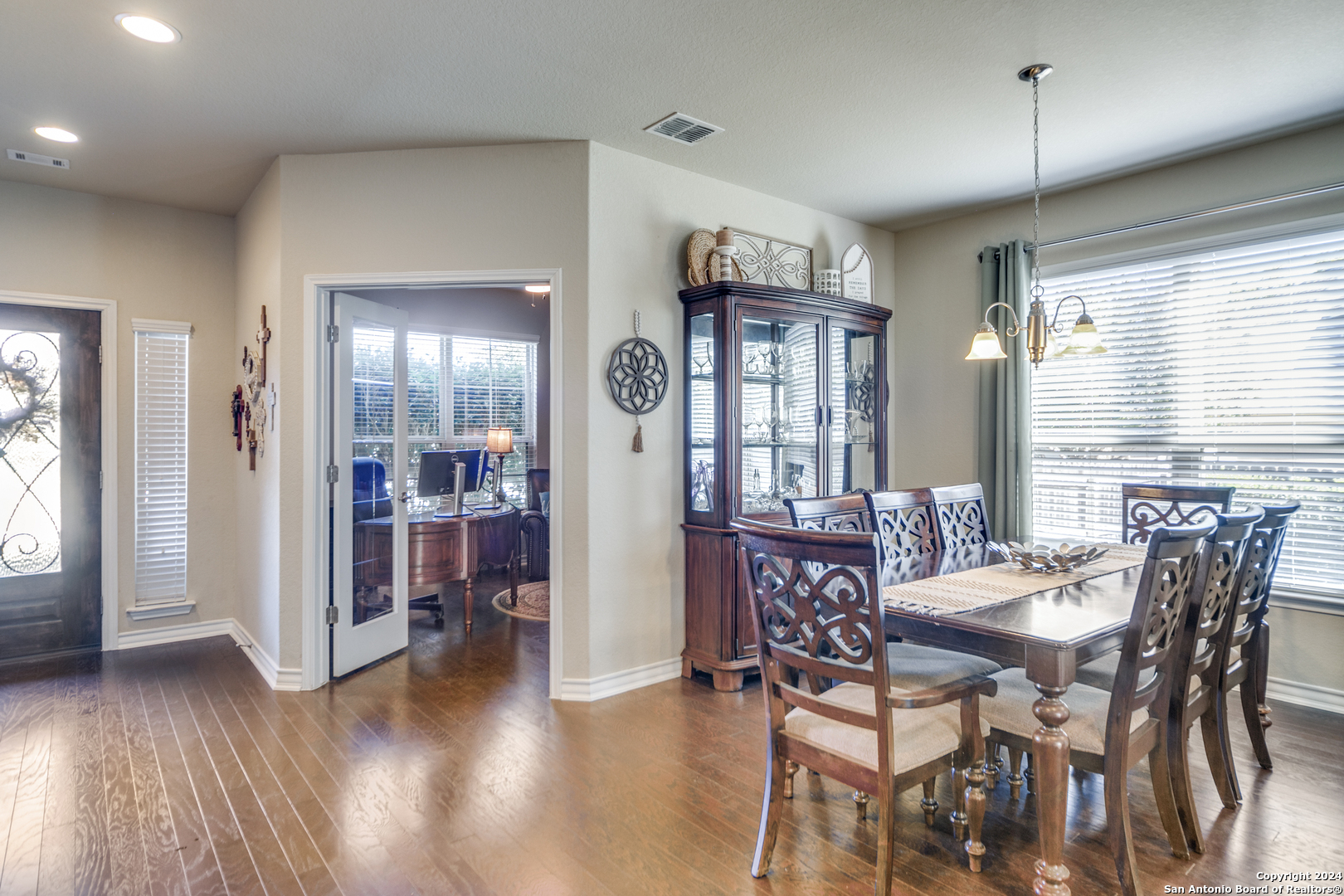 What an AMAZING price!! Welcome to this beautiful 5 bedroom 3.5 bath custom home located in the desirable English Oaks Development in Boerne Texas! You will feel like you're home as soon as you drive up to this gem! Located within walking distance to Boerne High School and Curington Elementary. The main floor incudes wood floors, dining room, private study, oversized utility room, walk in pantry, half bath and a large primary bedroom/bathroom. Upstairs you will find a very large game room, built in desk space, a separate media room and 4 large bedrooms with walk in closets and two double vanity bathrooms! All interior walls are insulated as well as an exterior door to the two bedrooms off the game room! Did I mention LOW utility bills? This home is ready to move into! Plenty of space for entertaining and no HOA! Don't pass this one up! Such a great home in a quiet and great neighborhood!