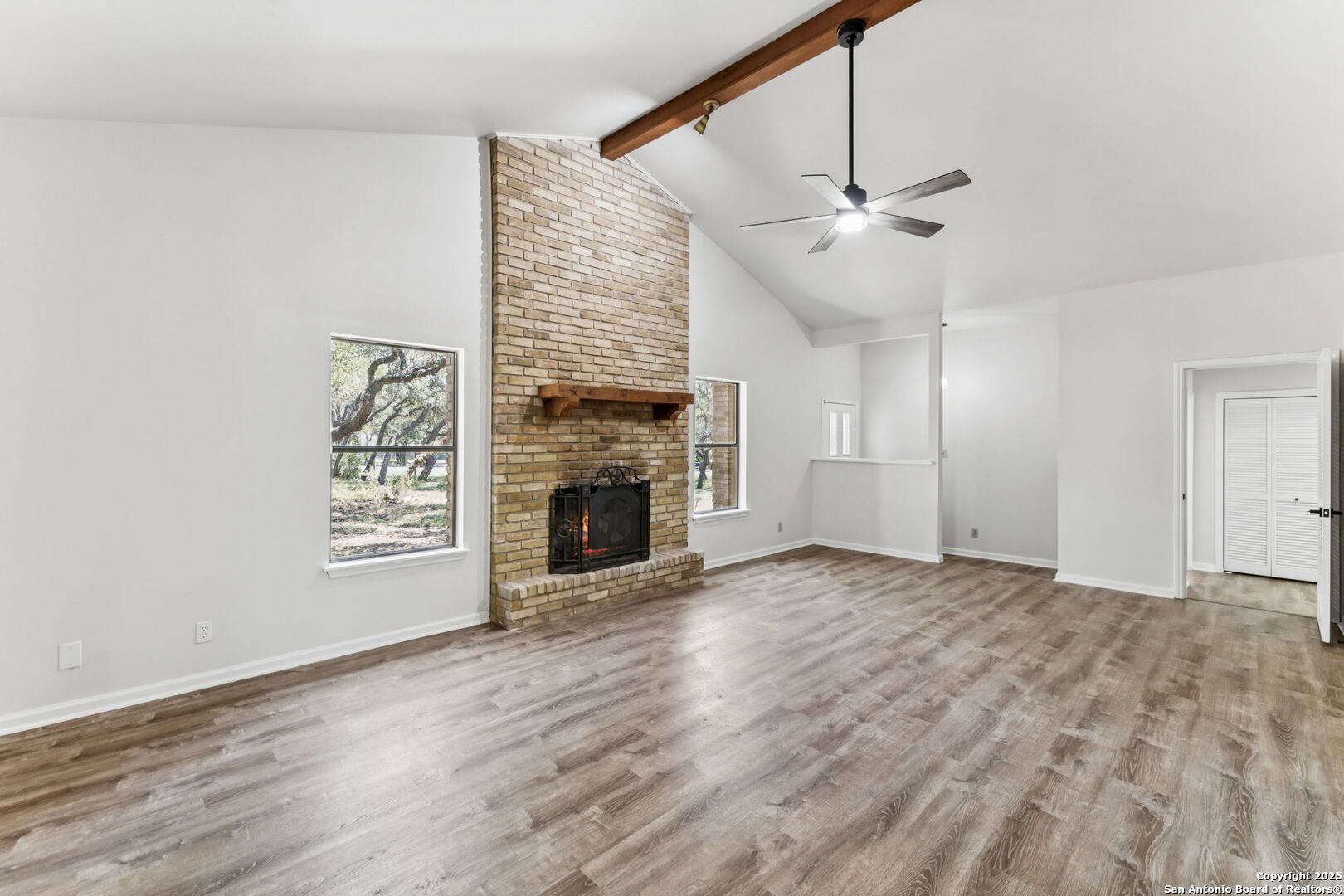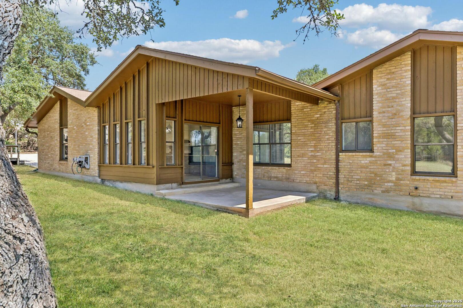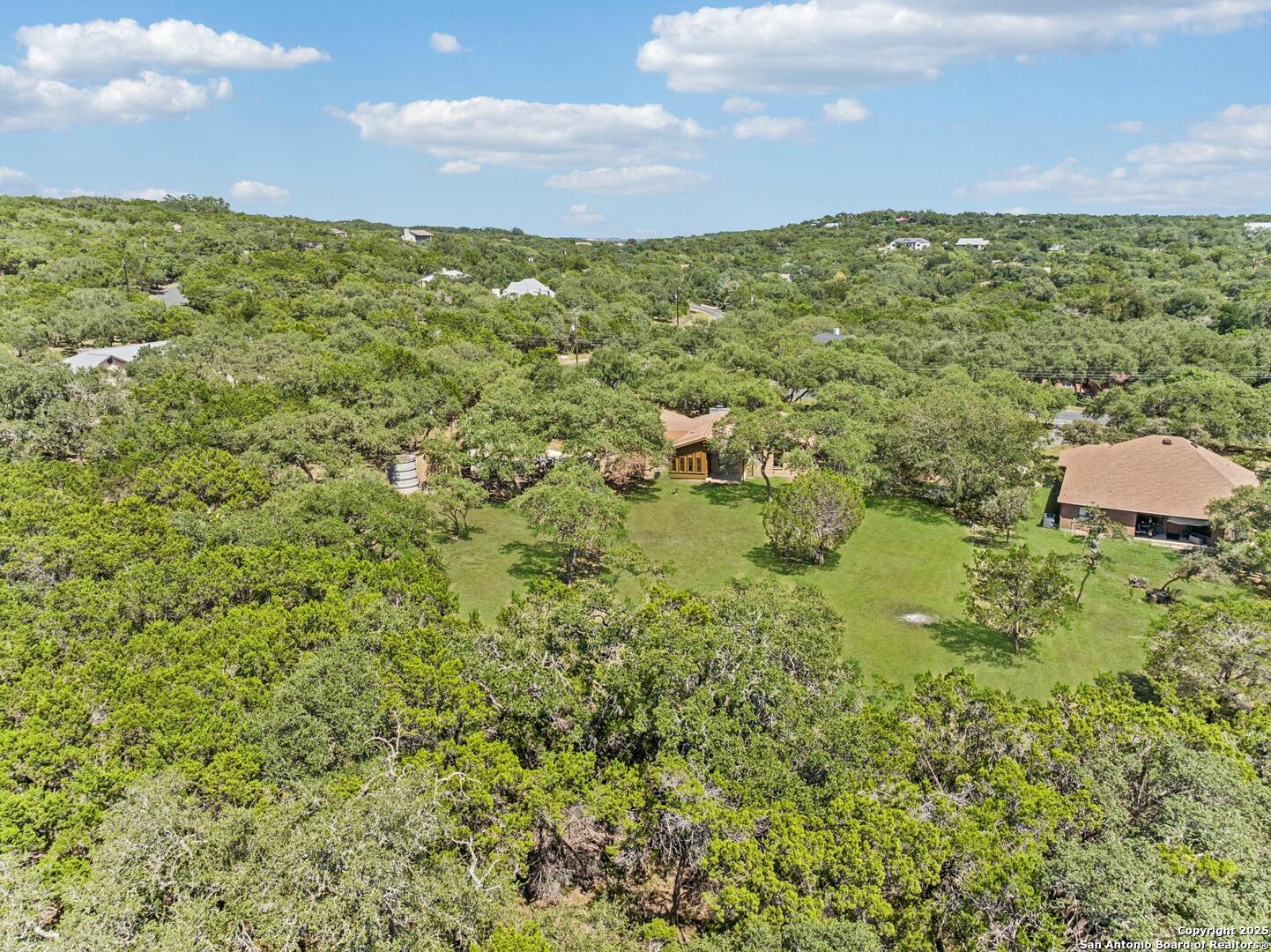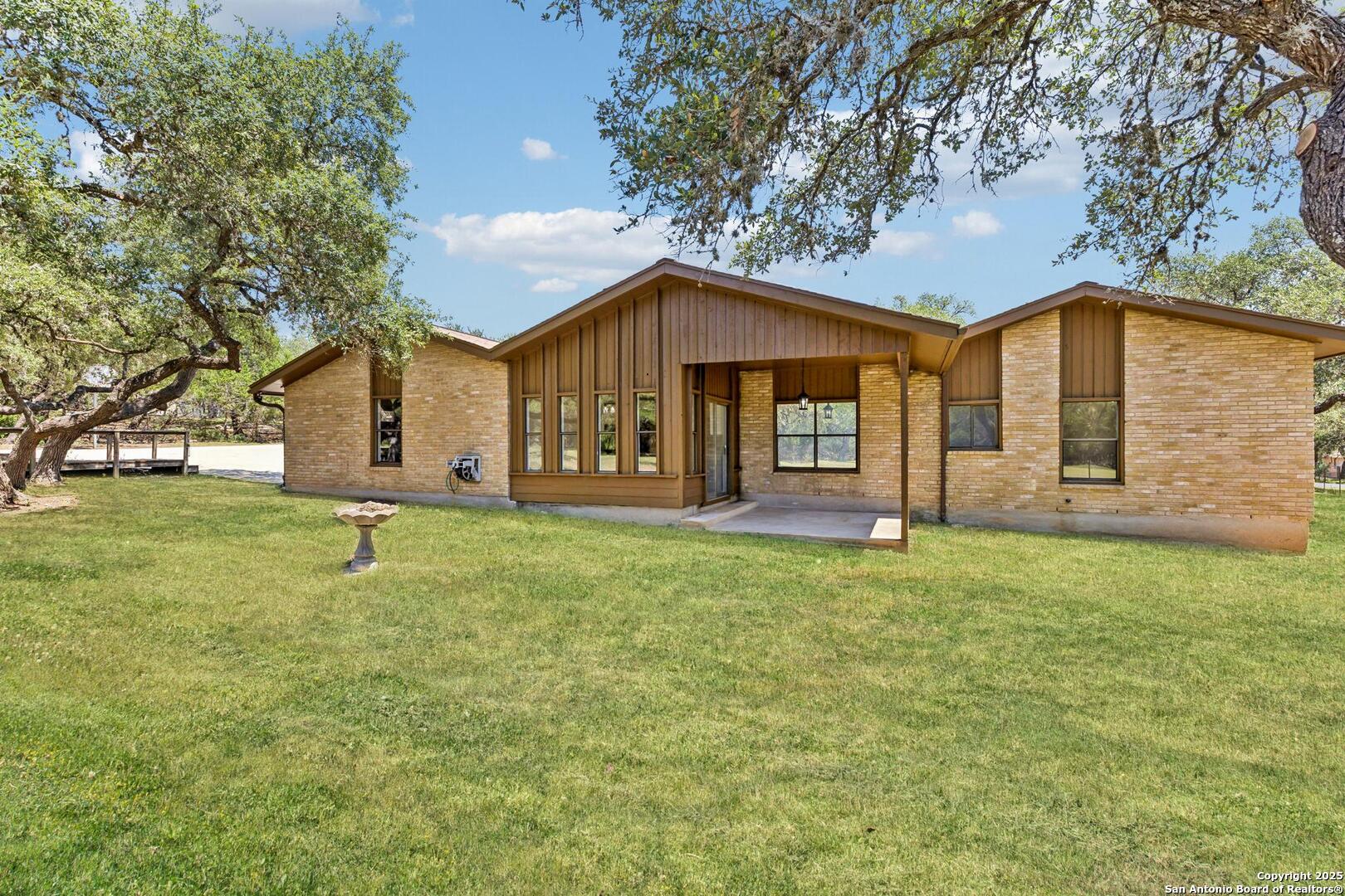 Your private Texas oasis awaits-1.14 acres of fenced, gated serenity dotted with over 70 majestic oak trees. Room to build your dream workshop, a pool, or create the ultimate outdoor playground. A private well with a 5-ring cistern delivers top-quality water, so you're set for whatever comes next. Step outside onto the expansive deck with fire pit and ambient lighting-perfect for sunset drinks, starry nights, or weekend gatherings. The level lot, concrete driveway, and outdoor spaces are ready for action, entertaining, and creating memories. Inside, vaulted beamed ceilings and a brick wood-burning fireplace give the living area a warm, airy, and welcoming vibe. The kitchen is built to impress: massive granite island, built-in appliances, smooth cooktop with vent hood, soft-close cabinetry, and a walk-in pantry. Sunlit breakfast area opens to the outdoors, while a flexible space can serve as formal dining, office, or game zone. Two bright secondary bedrooms, a spacious owner's suite with en suite bath and walk-in closet, and a climate-controlled utility room make this home functional and comfortable. All of this with easy access to Hwy 46 & 281-versatile, private, and ready for your Texas lifestyle.
