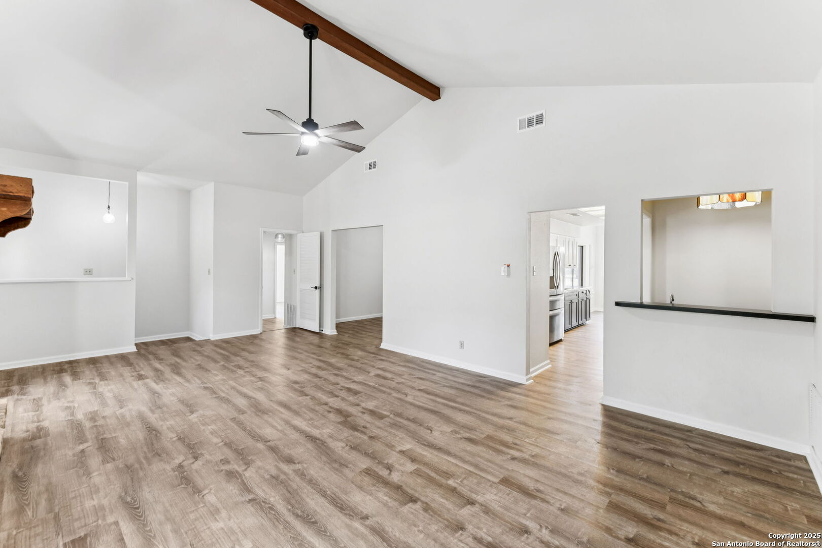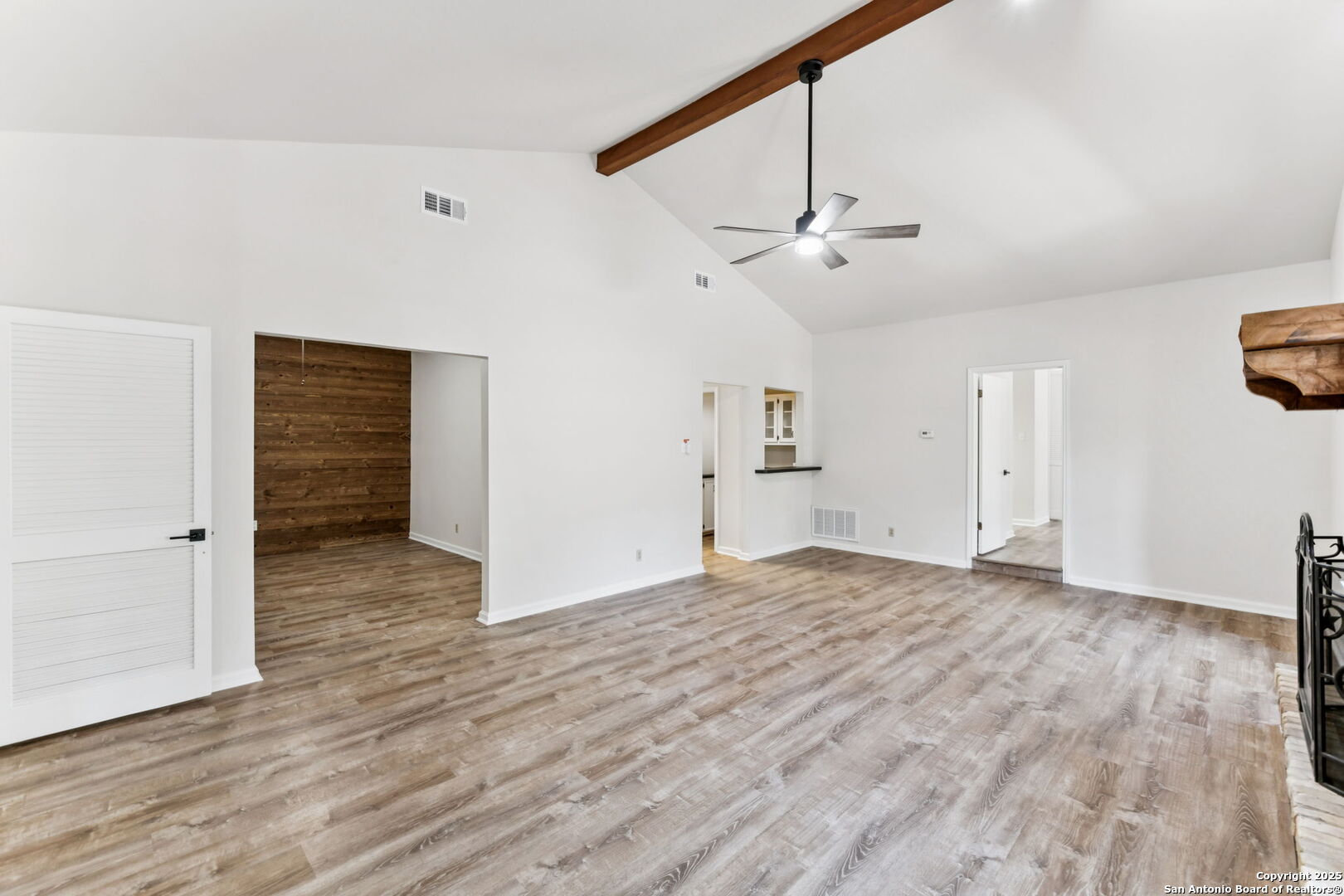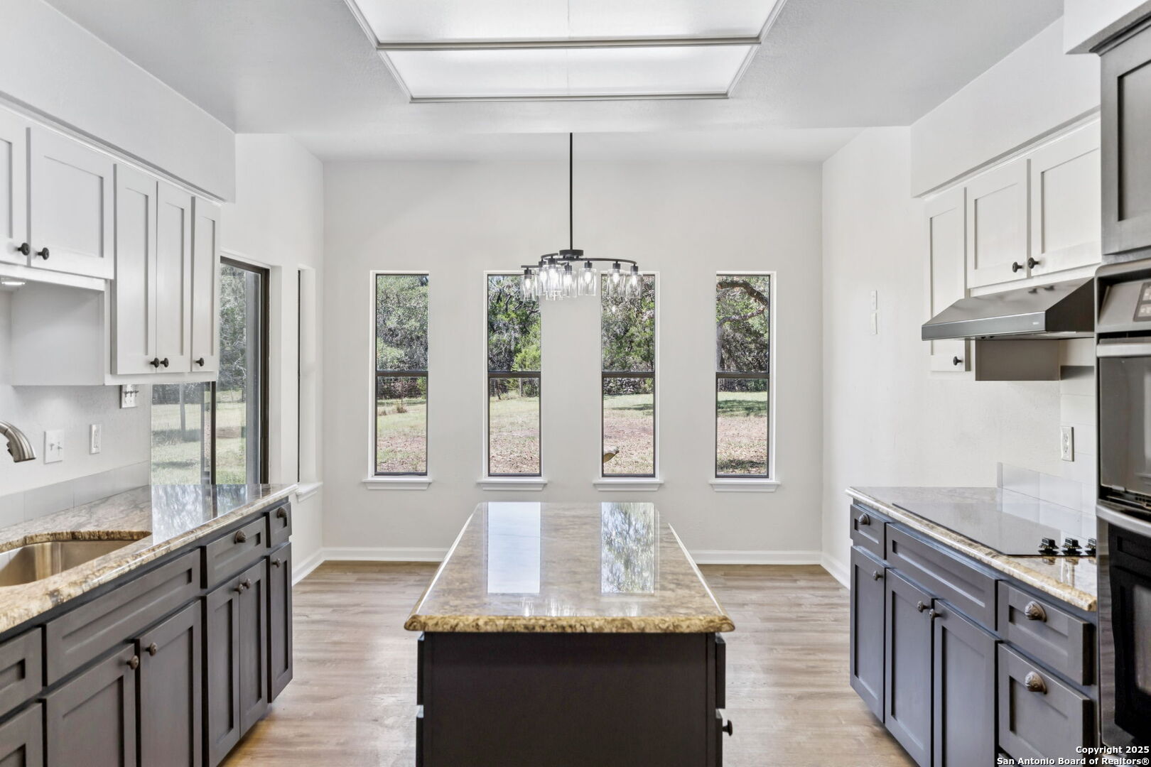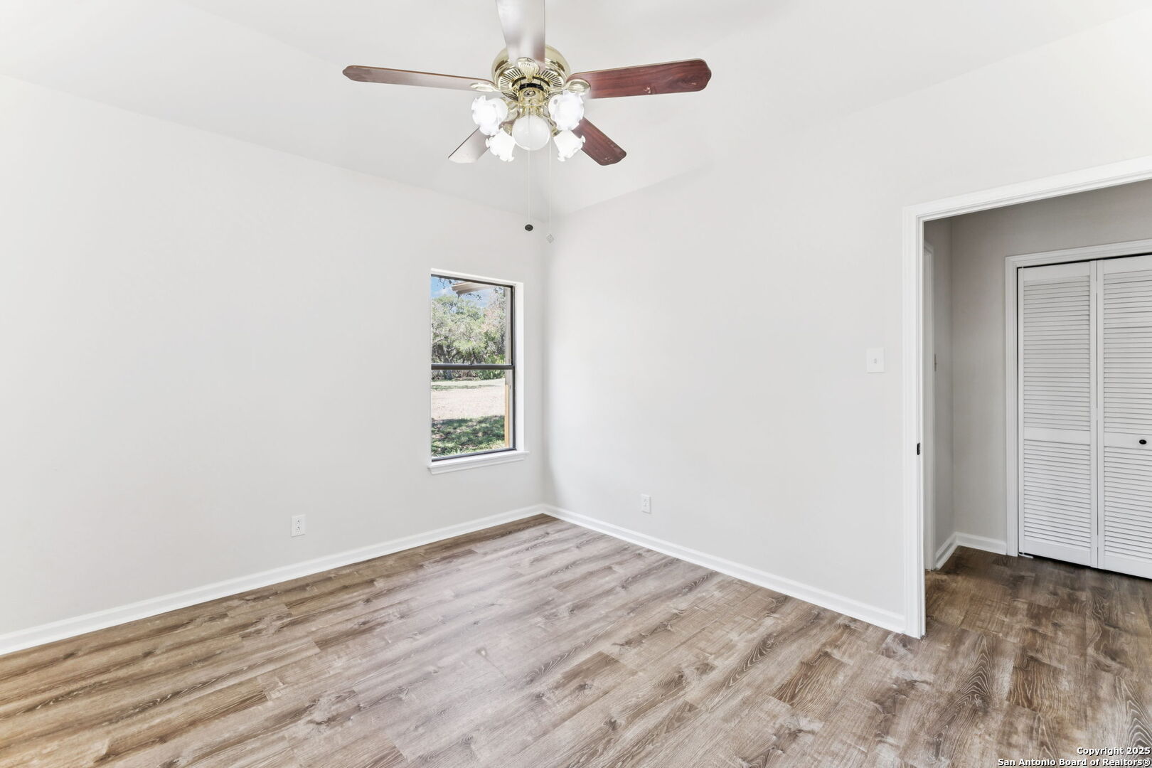 Your private Texas oasis awaits-1.14 acres of fenced, gated serenity dotted with over 70 majestic oak trees. Room to build your dream workshop, a pool, or create the ultimate outdoor playground. A private well with a 5-ring cistern delivers top-quality water, so you're set for whatever comes next. Step outside onto the expansive deck with fire pit and ambient lighting-perfect for sunset drinks, starry nights, or weekend gatherings. The level lot, concrete driveway, and outdoor spaces are ready for action, entertaining, and creating memories. Inside, vaulted beamed ceilings and a brick wood-burning fireplace give the living area a warm, airy, and welcoming vibe. The kitchen is built to impress: massive granite island, built-in appliances, smooth cooktop with vent hood, soft-close cabinetry, and a walk-in pantry. Sunlit breakfast area opens to the outdoors, while a flexible space can serve as formal dining, office, or game zone. Two bright secondary bedrooms, a spacious owner's suite with en suite bath and walk-in closet, and a climate-controlled utility room make this home functional and comfortable. All of this with easy access to Hwy 46 & 281-versatile, private, and ready for your Texas lifestyle.