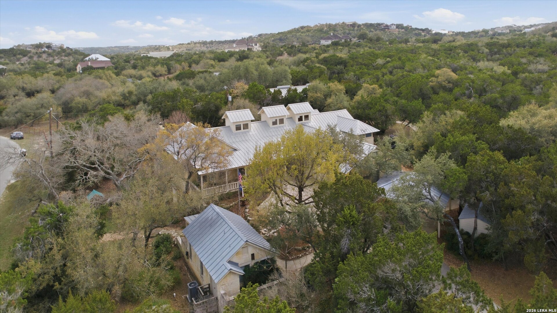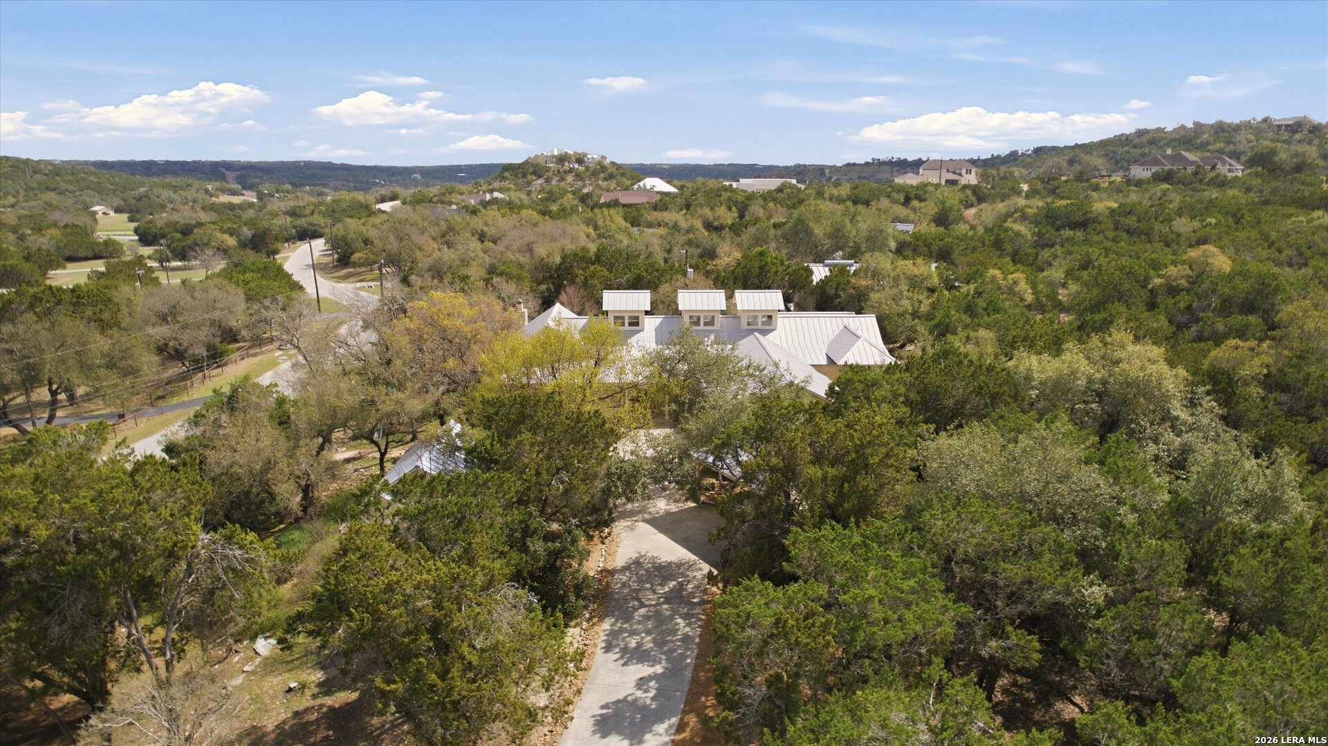 Masterpiece architect designed luxury estate offering stunning beauty & full wheelchair friendly ADA accessible living. Remarkable Hill Country property blends refined architecture w/ peaceful natural surroundings beneath majestic oak trees. A tranquil waterfall & koi pond create a serene setting that feels like a private retreat. The main residence features open light filled living spaces designed for comfort connection & effortless entertaining while maintaining sophisticated style. Two detached bedroom suites create exceptional privacy flexibility & peaceful retreats for guests extended family or multigenerational living. Bonus room ideal for home gym crafting studio or sauna & is separate from the executive style office. Outdoor living invites relaxation around the fire pit gardening or enjoying the quiet landscape beneath mature oaks. Private gated entrance & long concrete driveway enhance the estate feel. Horses allowed & neighborhood sports courts add recreation lifestyle & community appeal. Luxury design privacy nature accessibility & Hill Country living come together in this extraordinary property. Come live the dream.