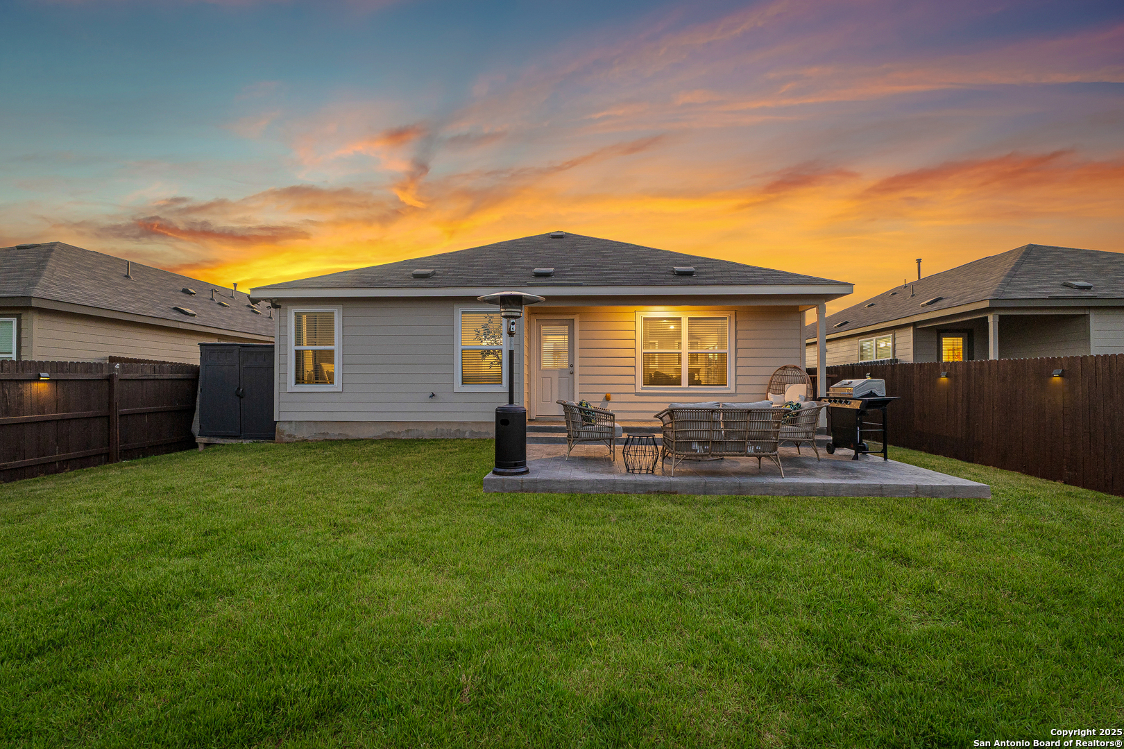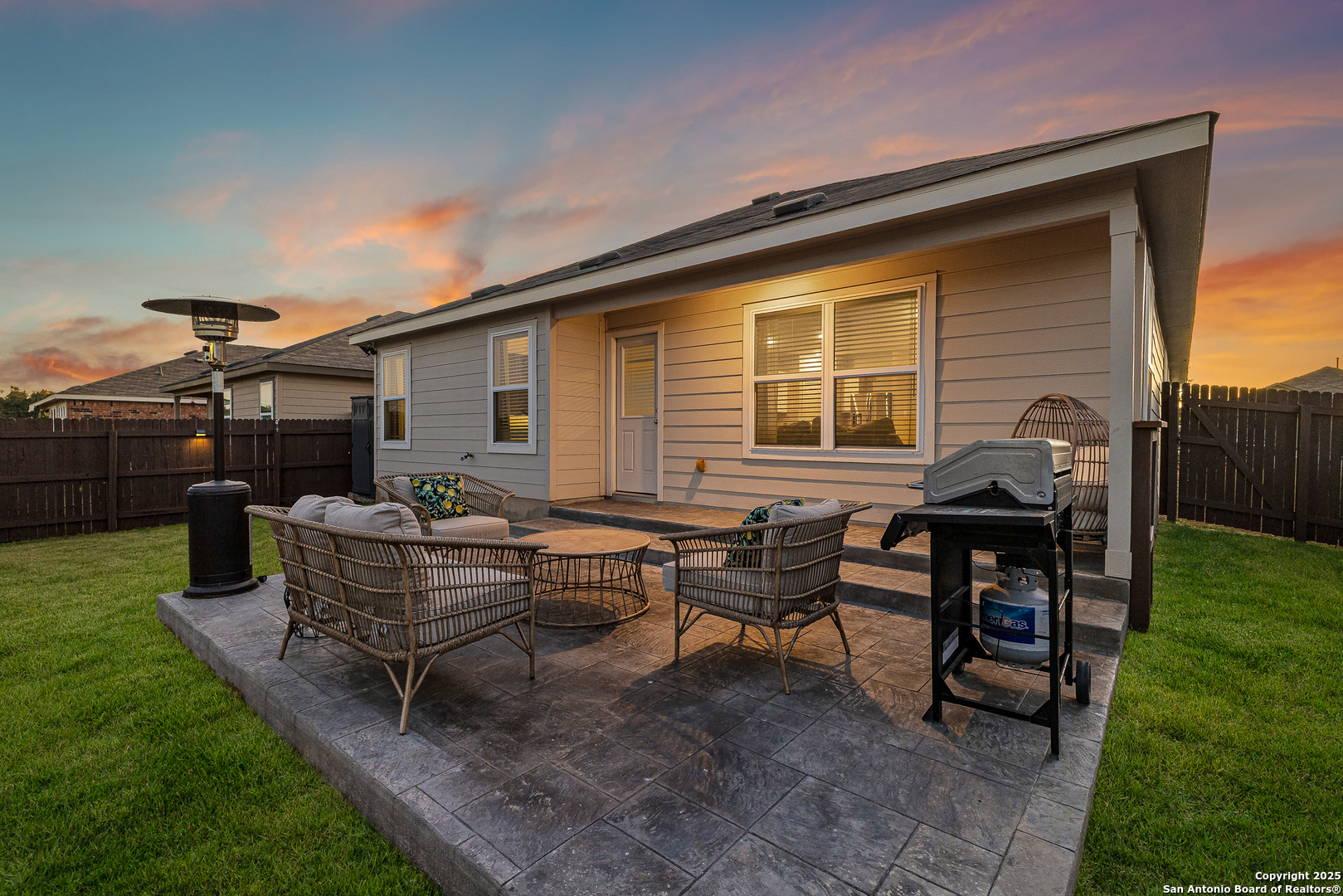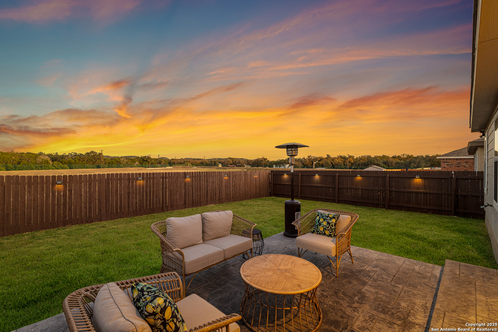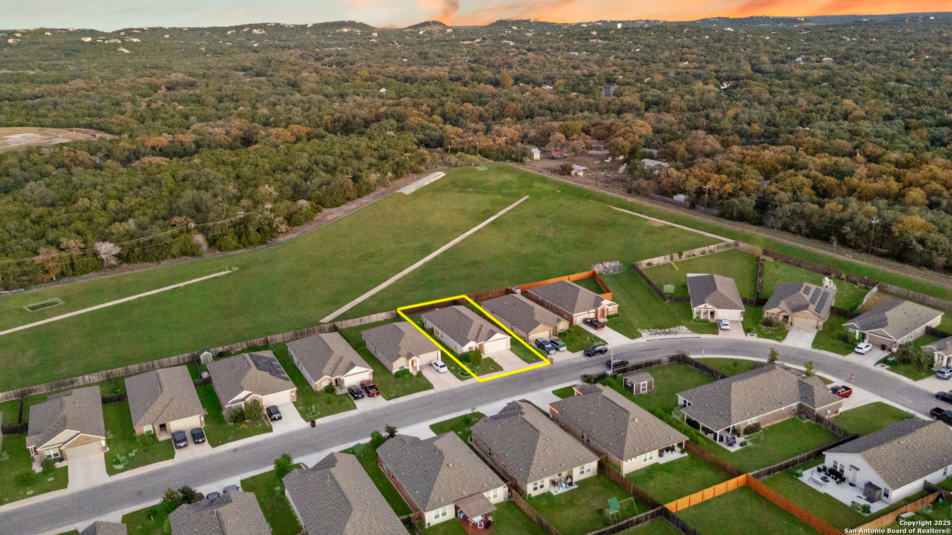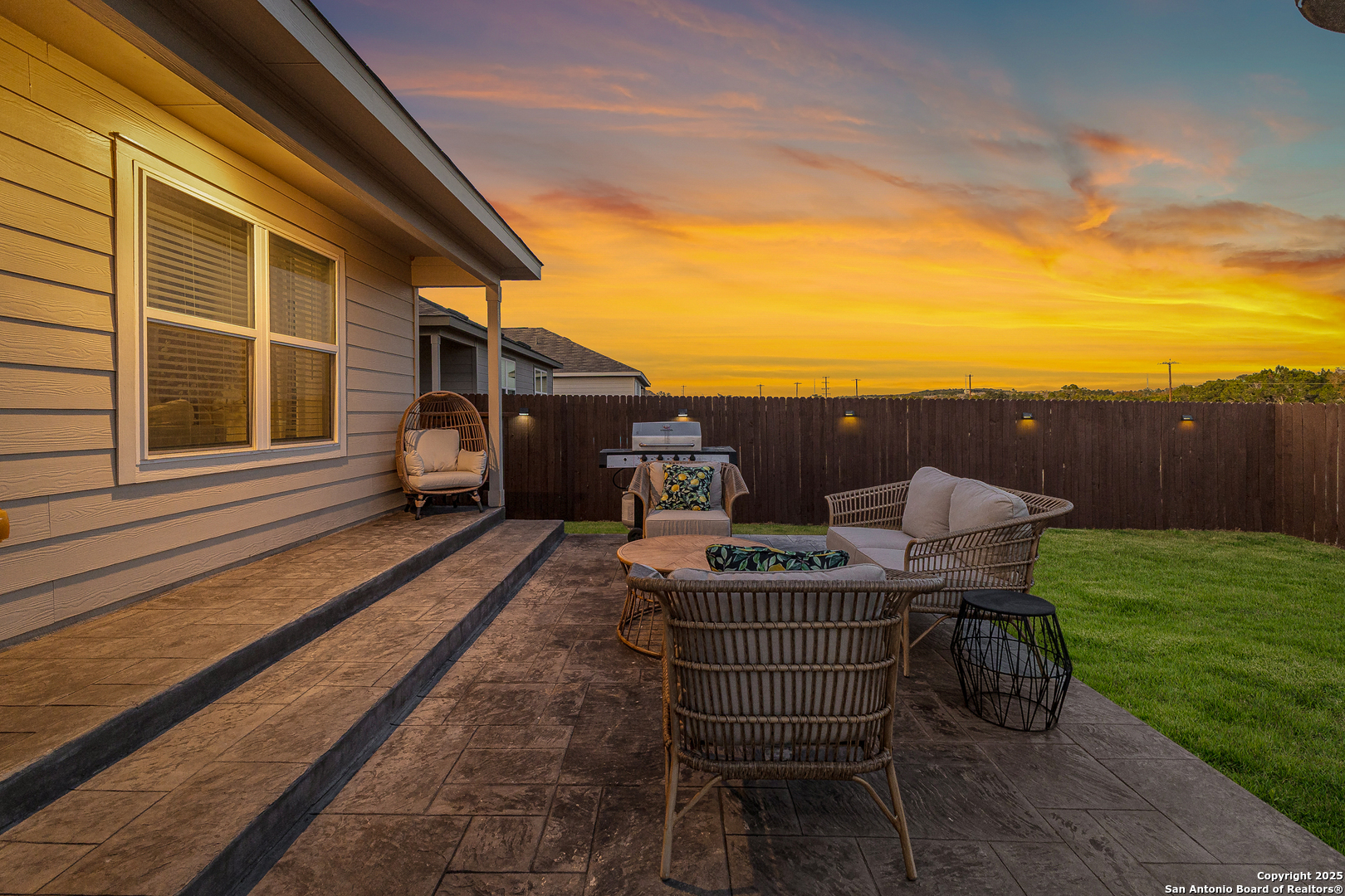 Beautiful 4-bedroom, 2-bath home with a 2-car garage situated on an oversized lot. The inviting front porch opens into a thoughtfully designed floor plan that seamlessly blends comfort and functionality. This home offers two spacious living rooms, providing flexibility for entertainment, work, or relaxation. The kitchen features gas cooking, granite countertops, a generous breakfast bar, and a spacious pantry-ideal for everyday living and hosting. A custom wine bar adds a sophisticated touch and enhances the home's entertainment appeal. Throughout the residence, you'll find upgraded ceiling fans, well-proportioned bedrooms, and excellent closet space. The primary suite is privately positioned away from the secondary bedrooms and includes dual vanities, a large walk-in shower, and an expansive walk-in closet. The backyard is truly exceptional, backing up to a greenbelt for added privacy, and offering a custom patio extension. Whether hosting gatherings or enjoying quiet evenings outdoors, this space provides endless versatility along with abundant yard space. Located in Comal ISD within the desirable Hidden Trails community, residents enjoy access to outstanding neighborhood amenities that elevate everyday living.