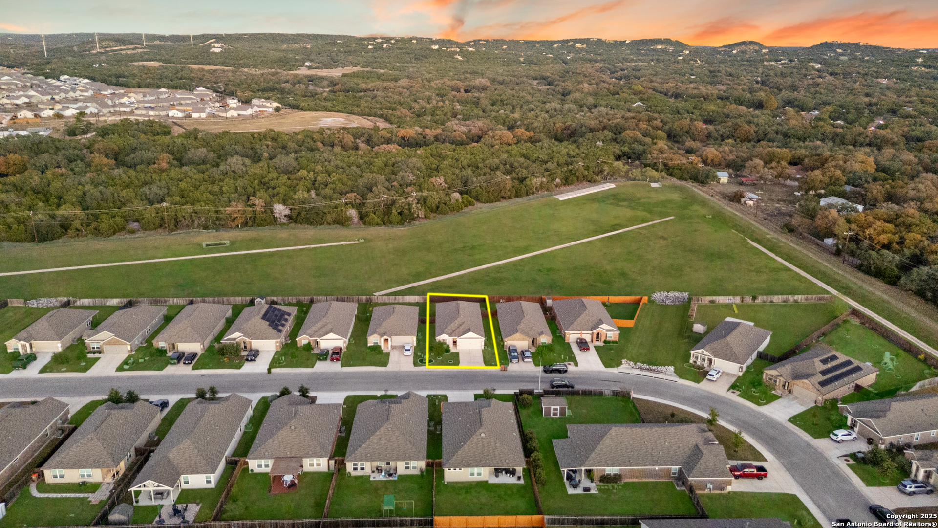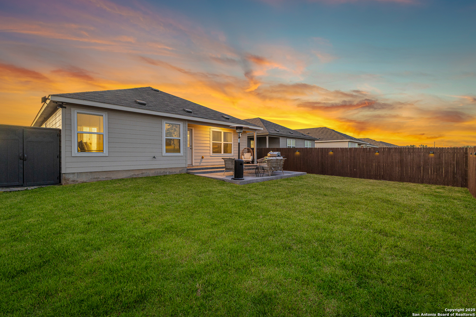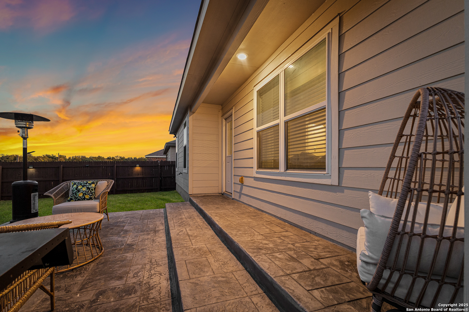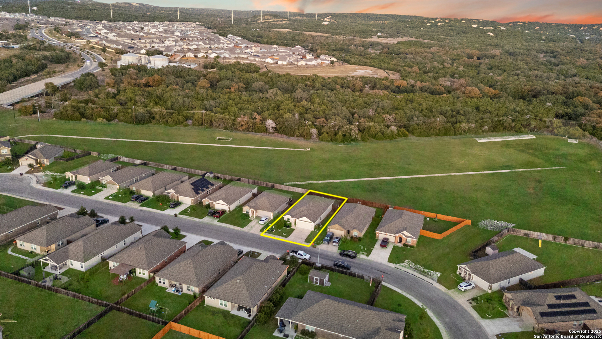 Beautiful 4-bedroom, 2-bath home with a 2-car garage situated on an oversized lot. The inviting front porch opens into a thoughtfully designed floor plan that seamlessly blends comfort and functionality. This home offers two spacious living rooms, providing flexibility for entertainment, work, or relaxation. The kitchen features gas cooking, granite countertops, a generous breakfast bar, and a spacious pantry-ideal for everyday living and hosting. A custom wine bar adds a sophisticated touch and enhances the home's entertainment appeal. Throughout the residence, you'll find upgraded ceiling fans, well-proportioned bedrooms, and excellent closet space. The primary suite is privately positioned away from the secondary bedrooms and includes dual vanities, a large walk-in shower, and an expansive walk-in closet. The backyard is truly exceptional, backing up to a greenbelt for added privacy, and offering a custom patio extension. Whether hosting gatherings or enjoying quiet evenings outdoors, this space provides endless versatility along with abundant yard space. Located in Comal ISD within the desirable Hidden Trails community, residents enjoy access to outstanding neighborhood amenities that elevate everyday living.