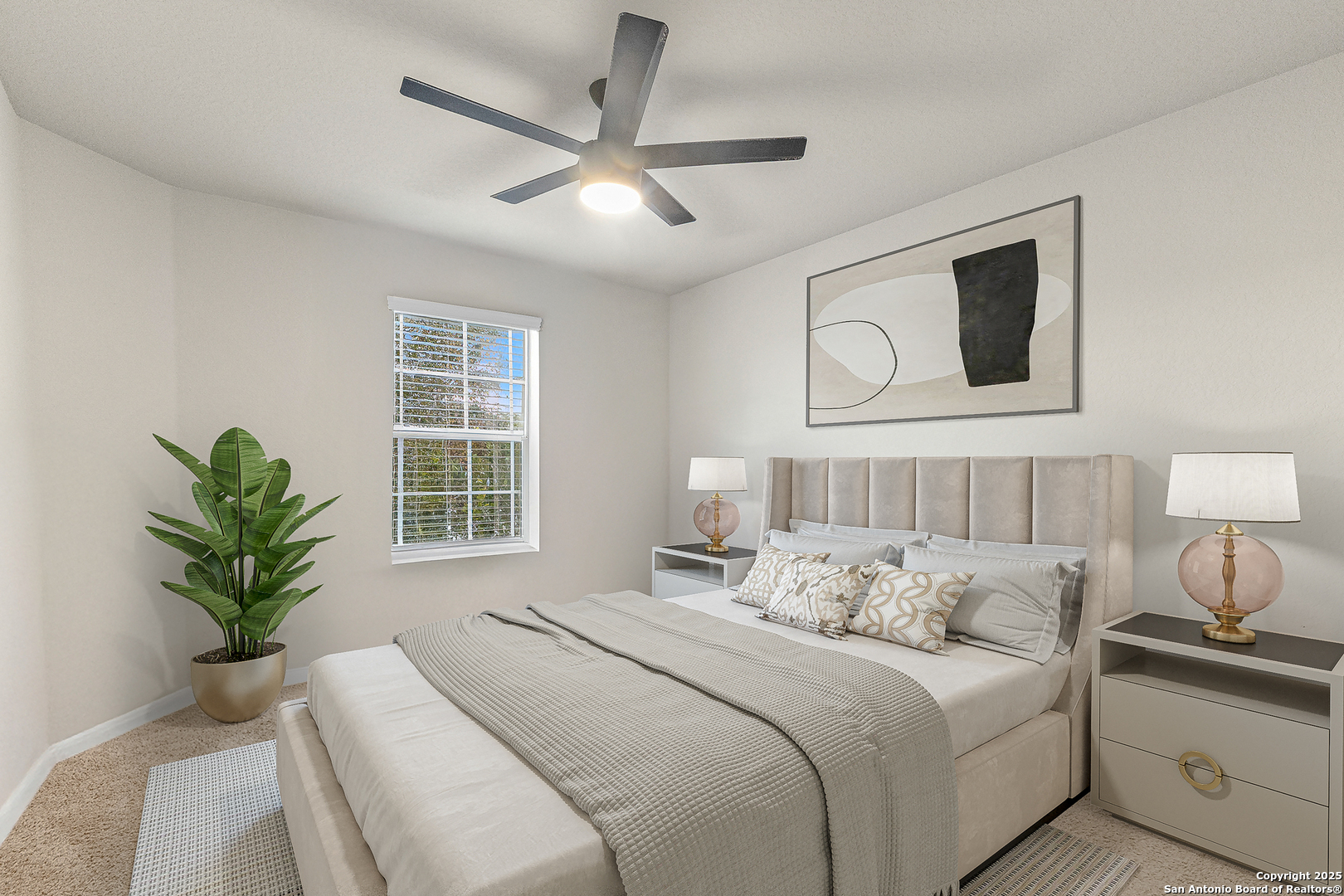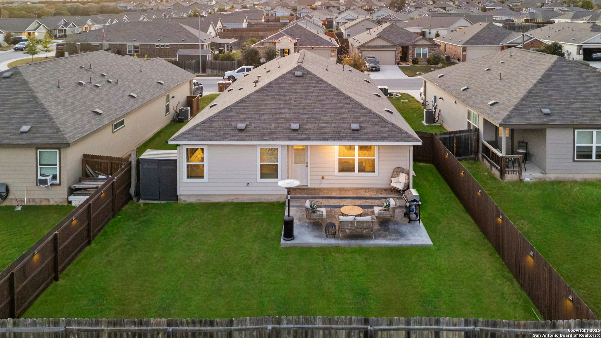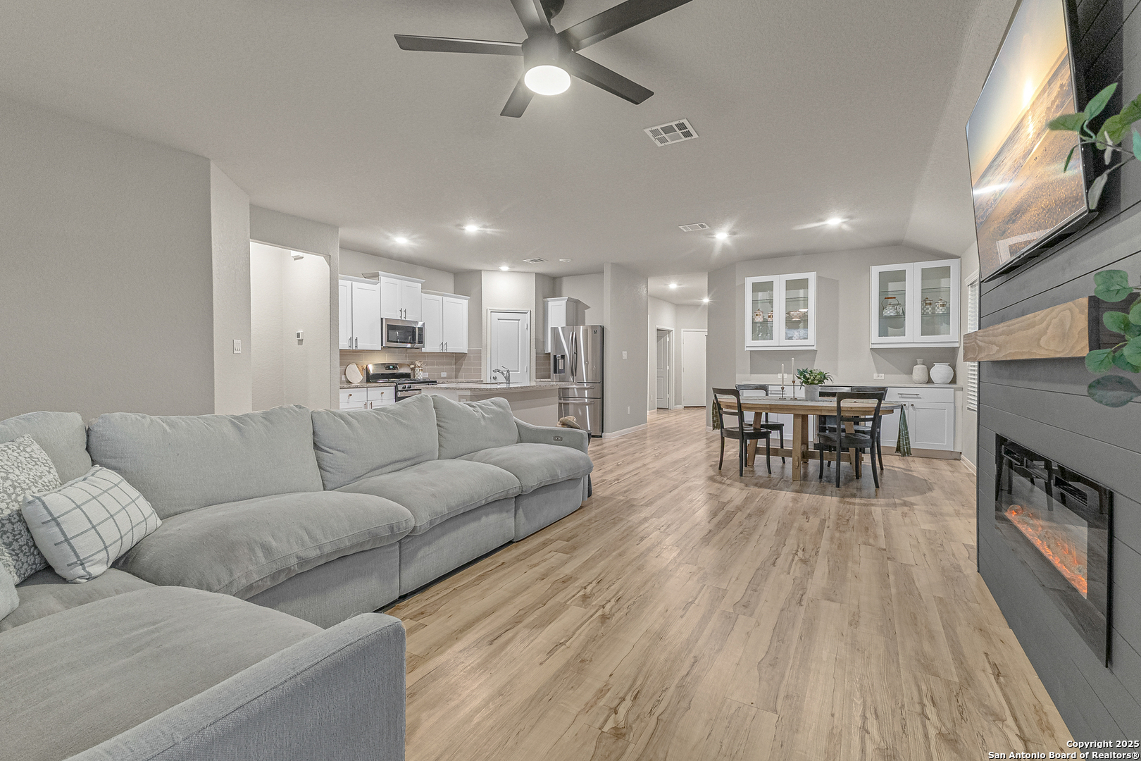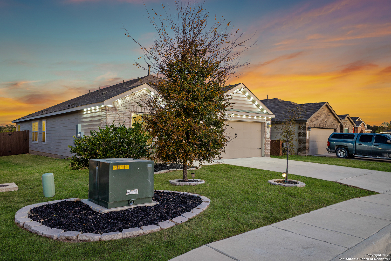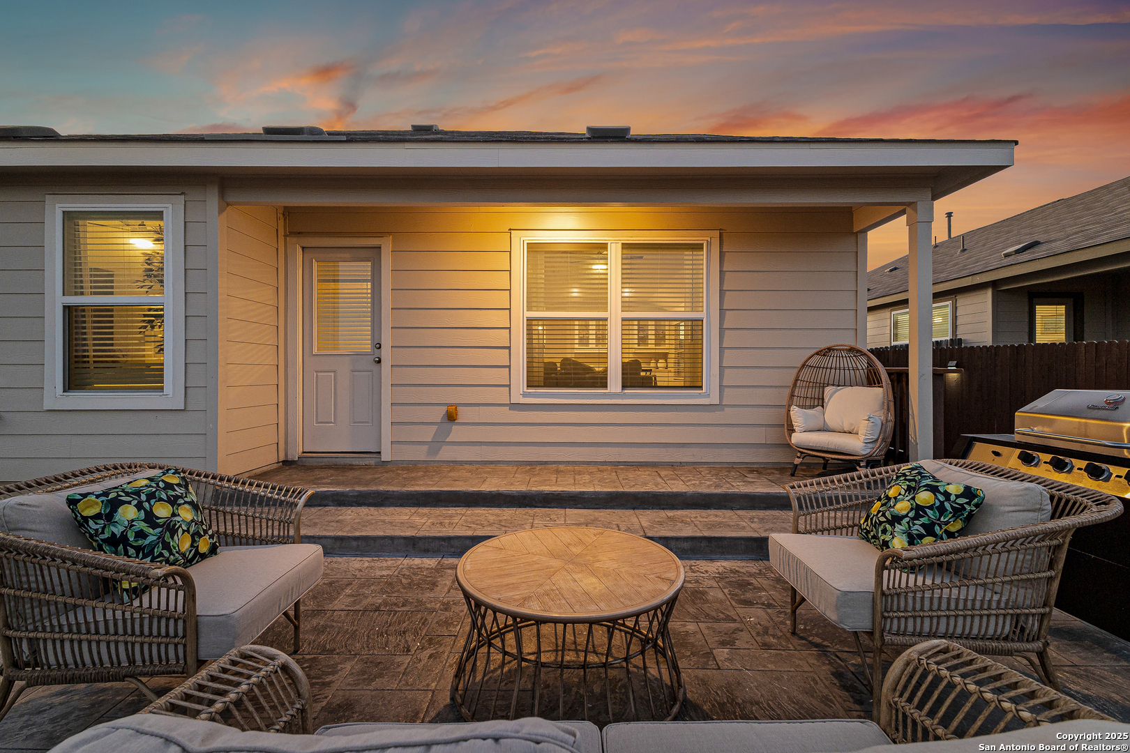 Beautiful 4-bedroom, 2-bath home with a 2-car garage situated on an oversized lot. The inviting front porch opens into a thoughtfully designed floor plan that seamlessly blends comfort and functionality. This home offers two spacious living rooms, providing flexibility for entertainment, work, or relaxation. The kitchen features gas cooking, granite countertops, a generous breakfast bar, and a spacious pantry-ideal for everyday living and hosting. A custom wine bar adds a sophisticated touch and enhances the home's entertainment appeal. Throughout the residence, you'll find upgraded ceiling fans, well-proportioned bedrooms, and excellent closet space. The primary suite is privately positioned away from the secondary bedrooms and includes dual vanities, a large walk-in shower, and an expansive walk-in closet. The backyard is truly exceptional, backing up to a greenbelt for added privacy, and offering a custom patio extension. Whether hosting gatherings or enjoying quiet evenings outdoors, this space provides endless versatility along with abundant yard space. Located in Comal ISD within the desirable Hidden Trails community, residents enjoy access to outstanding neighborhood amenities that elevate everyday living.