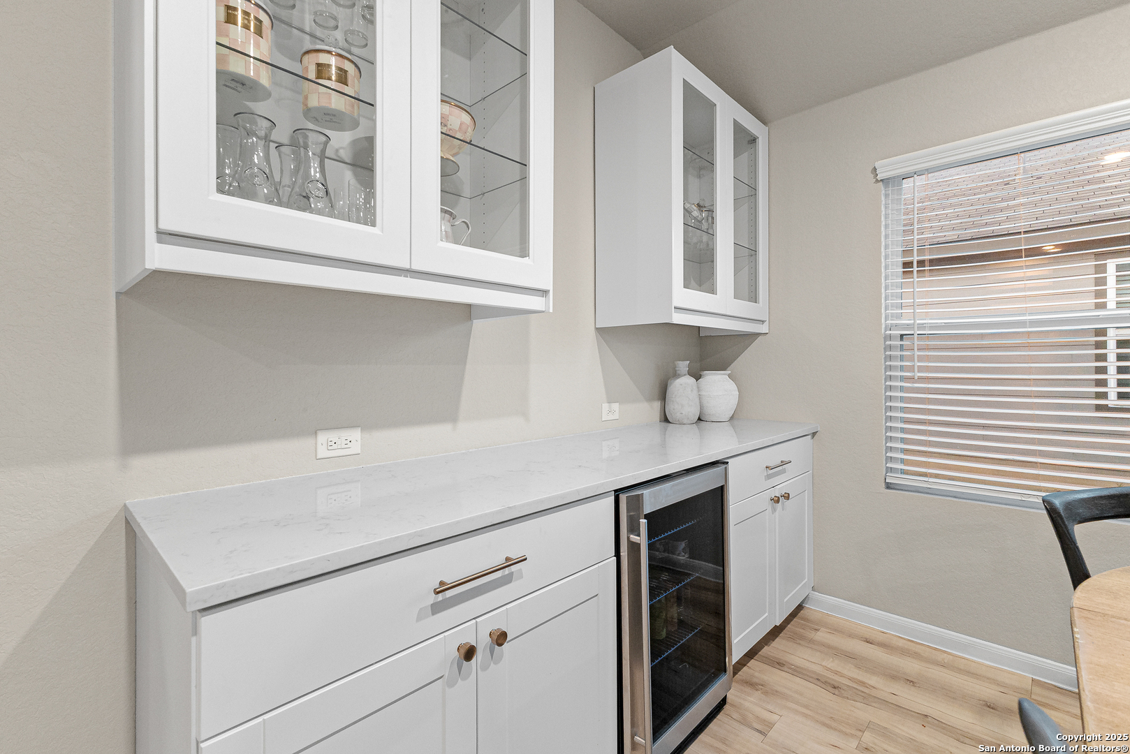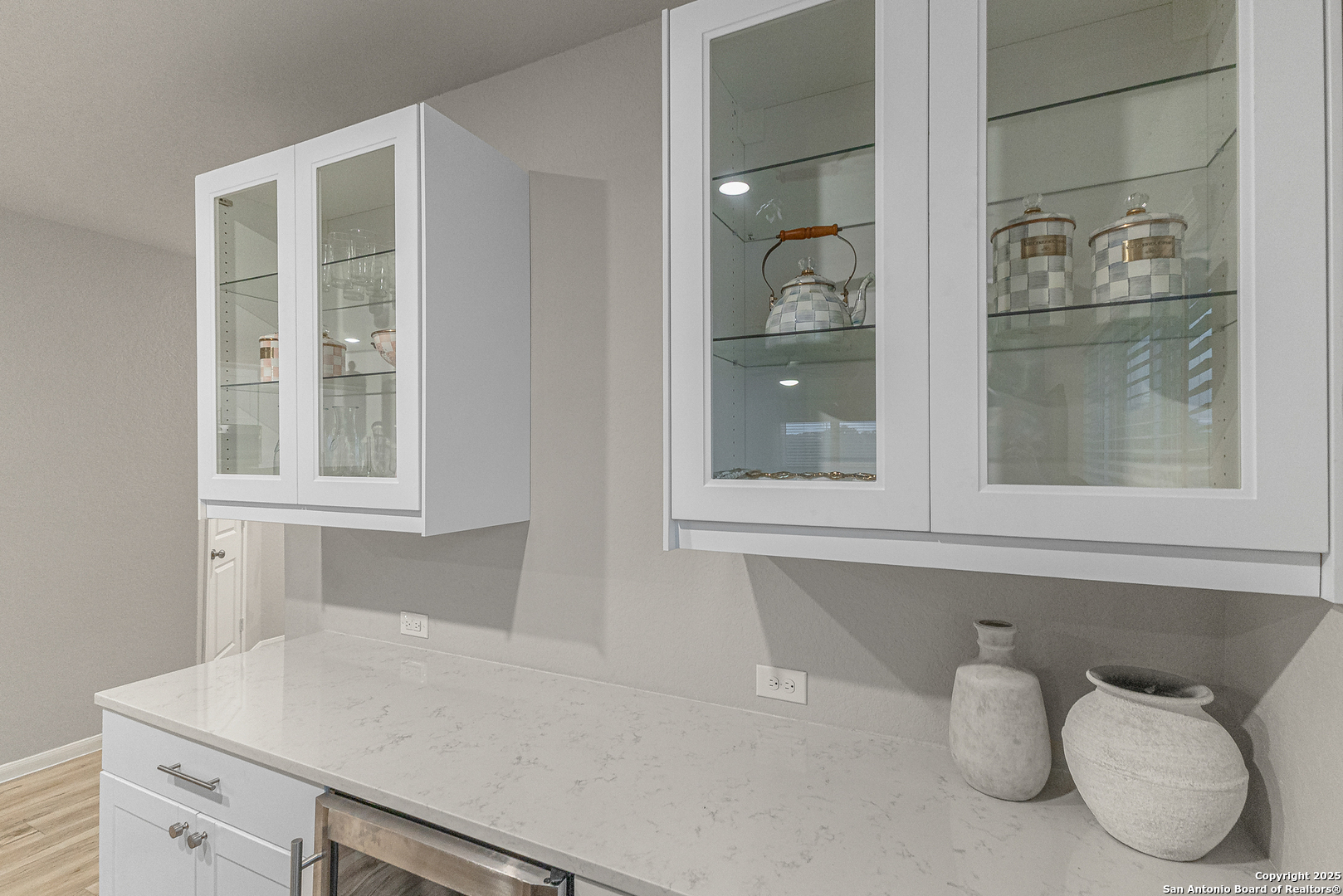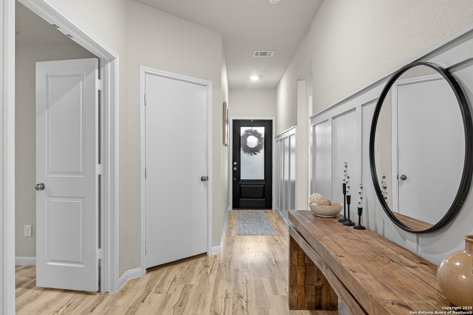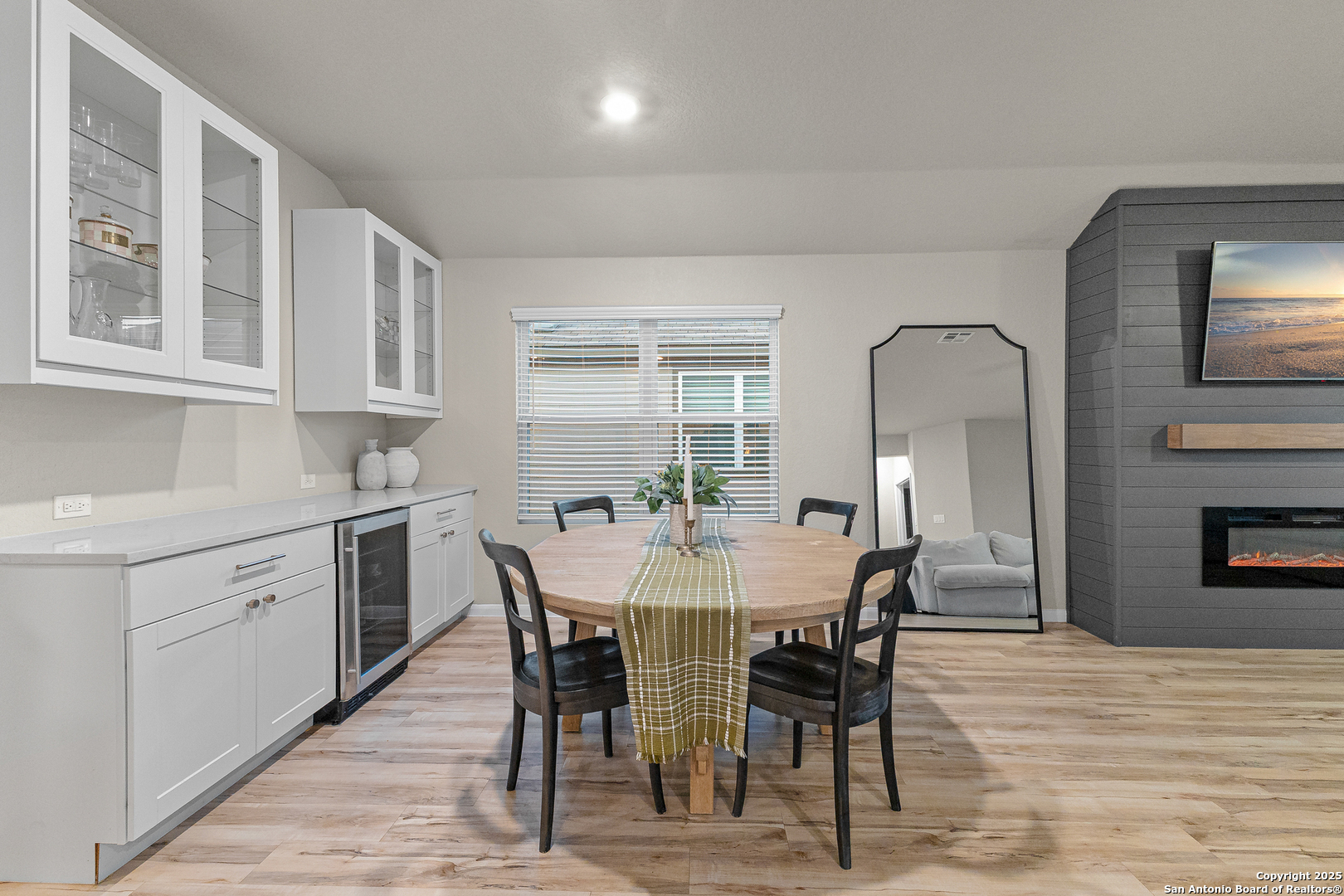 Beautiful 4-bedroom, 2-bath home with a 2-car garage situated on an oversized lot. The inviting front porch opens into a thoughtfully designed floor plan that seamlessly blends comfort and functionality. This home offers two spacious living rooms, providing flexibility for entertainment, work, or relaxation. The kitchen features gas cooking, granite countertops, a generous breakfast bar, and a spacious pantry-ideal for everyday living and hosting. A custom wine bar adds a sophisticated touch and enhances the home's entertainment appeal. Throughout the residence, you'll find upgraded ceiling fans, well-proportioned bedrooms, and excellent closet space. The primary suite is privately positioned away from the secondary bedrooms and includes dual vanities, a large walk-in shower, and an expansive walk-in closet. The backyard is truly exceptional, backing up to a greenbelt for added privacy, and offering a custom patio extension. Whether hosting gatherings or enjoying quiet evenings outdoors, this space provides endless versatility along with abundant yard space. Located in Comal ISD within the desirable Hidden Trails community, residents enjoy access to outstanding neighborhood amenities that elevate everyday living.