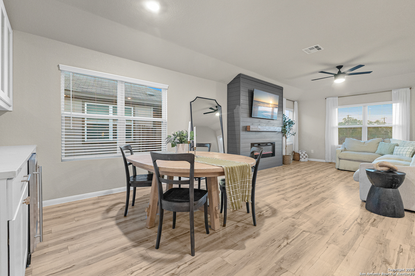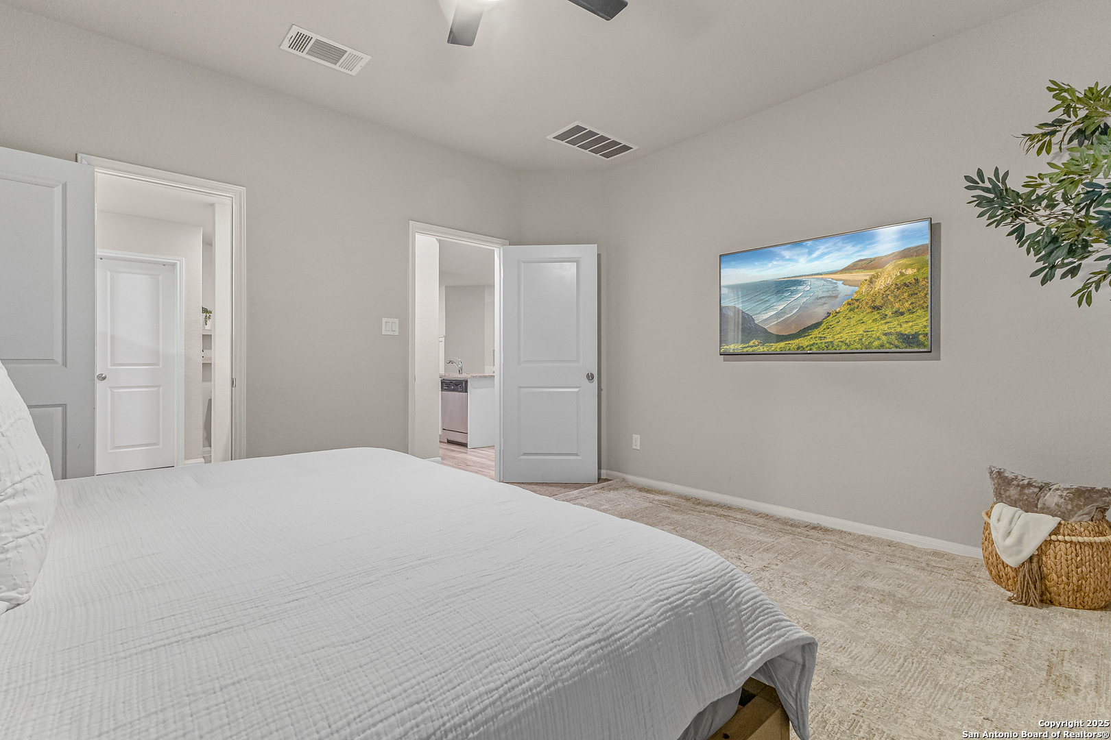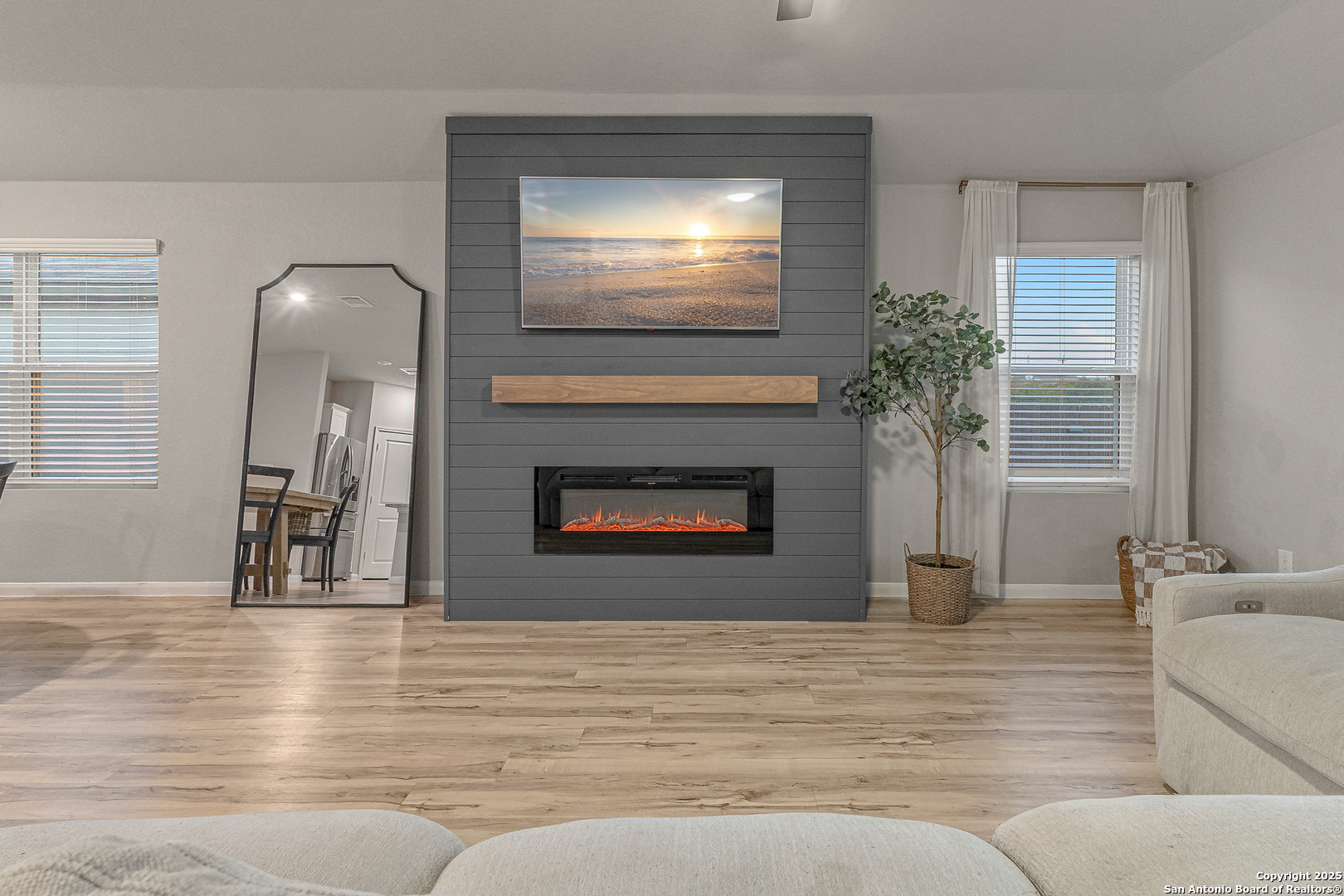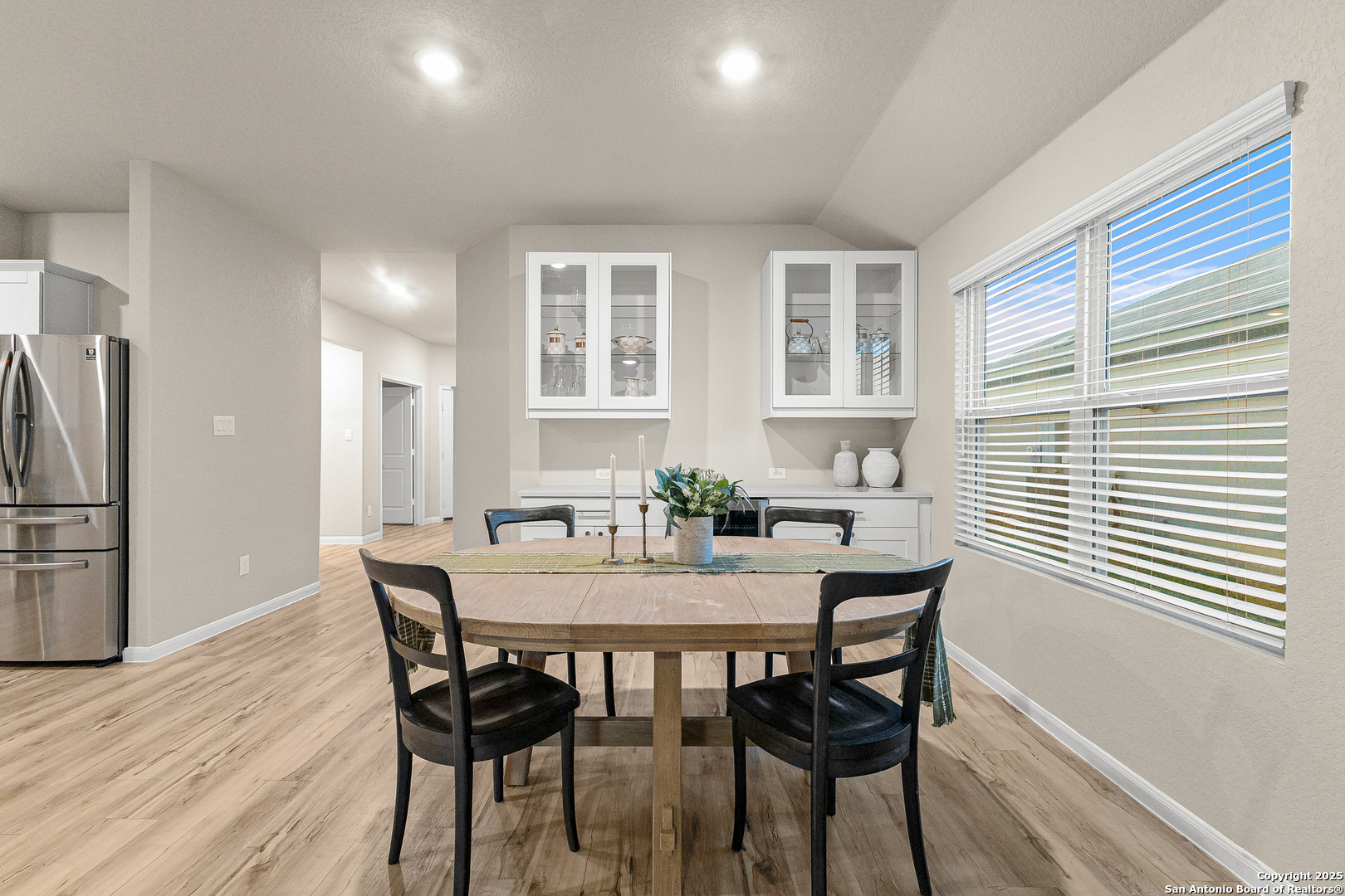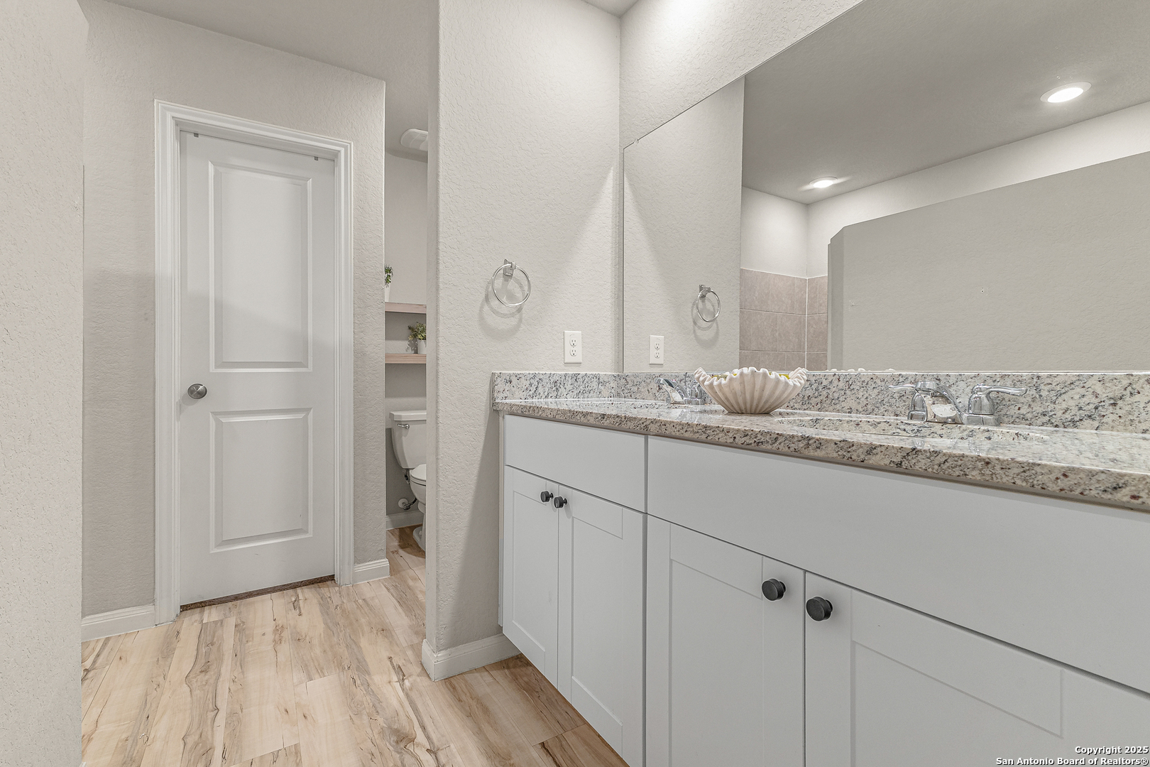Beautiful 4-bedroom, 2-bath home with a 2-car garage situated on an oversized lot. The inviting front porch opens into a thoughtfully designed floor plan that seamlessly blends comfort and functionality. This home offers two spacious living rooms, providing flexibility for entertainment, work, or relaxation. The kitchen features gas cooking, granite countertops, a generous breakfast bar, and a spacious pantry-ideal for everyday living and hosting. A custom wine bar adds a sophisticated touch and enhances the home's entertainment appeal. Throughout the residence, you'll find upgraded ceiling fans, well-proportioned bedrooms, and excellent closet space. The primary suite is privately positioned away from the secondary bedrooms and includes dual vanities, a large walk-in shower, and an expansive walk-in closet. The backyard is truly exceptional, backing up to a greenbelt for added privacy, and offering a custom patio extension. Whether hosting gatherings or enjoying quiet evenings outdoors, this space provides endless versatility along with abundant yard space. Located in Comal ISD within the desirable Hidden Trails community, residents enjoy access to outstanding neighborhood amenities that elevate everyday living.