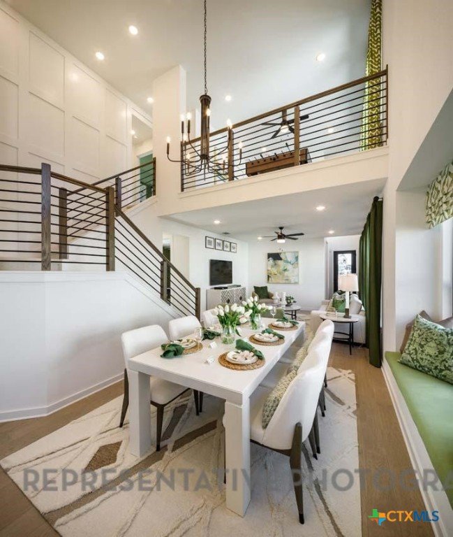 Model home plan! The Easton is a thoughtfully designed two-story home offering five bedrooms, 4 bathrooms, and an airy, open layout perfect for modern living. A cozy living room and dining room greet you, opening to a kitchen with a large island. Numerous windows flood the space with natural light, and extensive cabinetry provides plenty of storage.