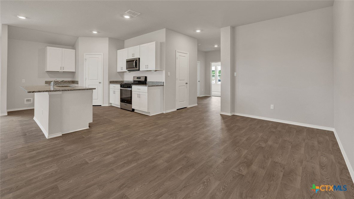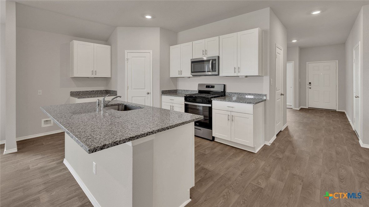 MARCH ESTIMATED COMPLETION DATE. The Lakeway is our most popular floorplan and is available at Bollinger in Maxwell, Texas. This one-story home offers 2,042 square feet of living space across 4 bedrooms, 3 bathrooms, a study, and 2-car garage. Our homes in Bollinger feature our modern farmhouse exteriors and the Lakeway plan is available in 2 exterior options. As you enter the home from the covered front porch, you’ll step into the spacious foyer and will find the open study, bathroom 2 and bedroom 2. Use the study as a home office, library, or extra play area for the kids. Stepping further into the home, you’ll discover the dining room, kitchen and family room laid out in an open concept design. Built to make cooking, eating, and entertaining a pleasant experience for family and friends, you’re sure to make many memories in this beautiful space. The kitchen features an island with undermount sink, granite countertops, 4" backsplash, a pantry closet, 36” upper cabinets, and stainless-steel appliances, including a gas range. Located privately off the dining room are bedrooms 3 and 4, as well as bathroom 3. The primary bedroom is at the back of the house, off the family room, and includes a private bathroom. This relaxing bathroom space features a walk-in shower, cultured marble vanity with dual sinks, private toilet area with a door, and a walk-in closet. The utility room is outside the primary bedroom, allowing for the laundry chores to be completed with ease. The Lakeway includes vinyl flooring throughout the common areas of the home, and carpet in the bedrooms. A covered back patio is also included in the Lakeway plan. All our new homes feature Bermuda sod, an irrigation system in the front and back yard, and a 6’ privacy fence around the back yard. This home features our America’s Smart Home base package, which includes the Video Front Doorbell, Front Door Deadbolt Lock, Home Hub, Thermostat, and Deako® Smart Switches.