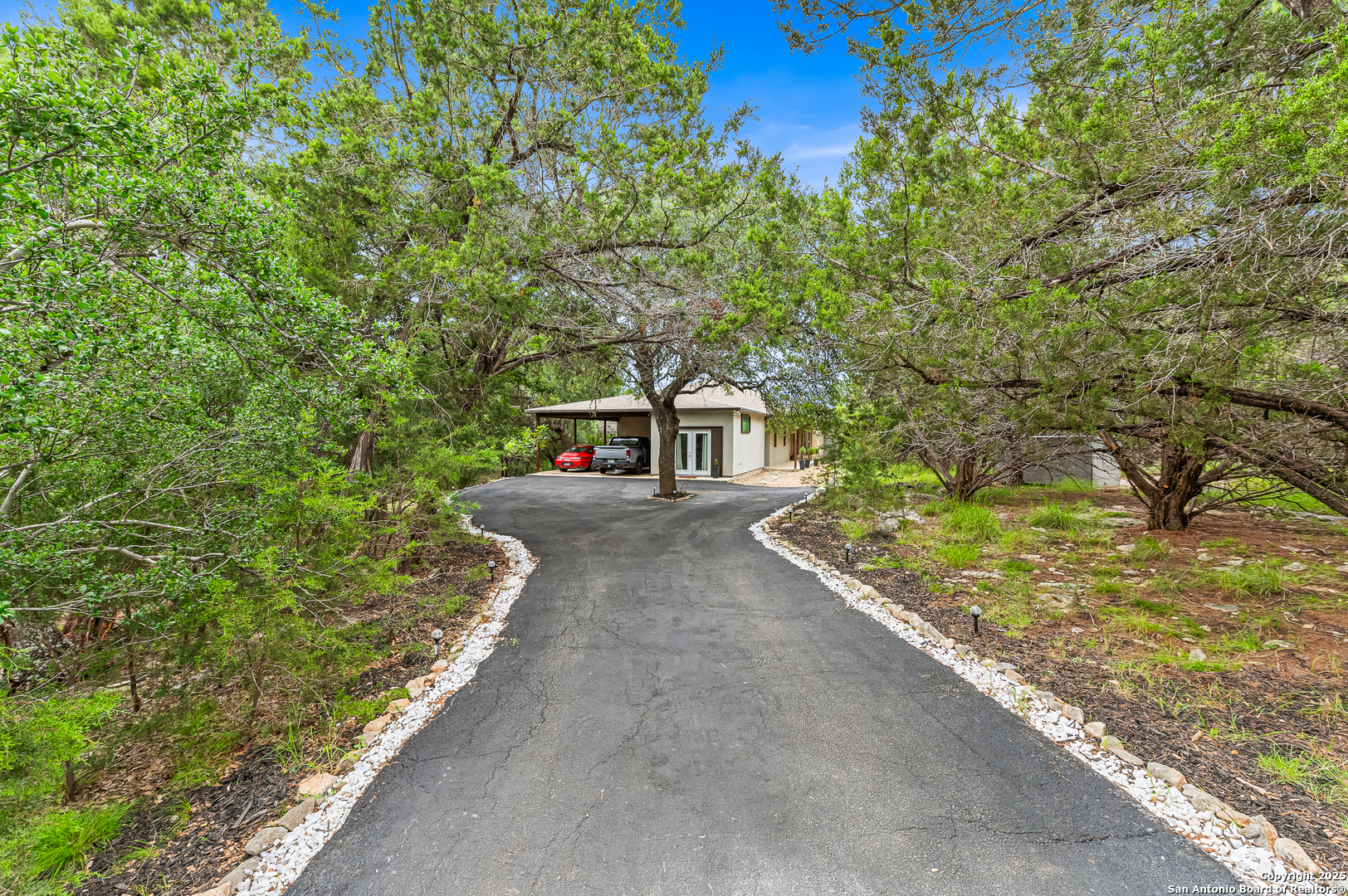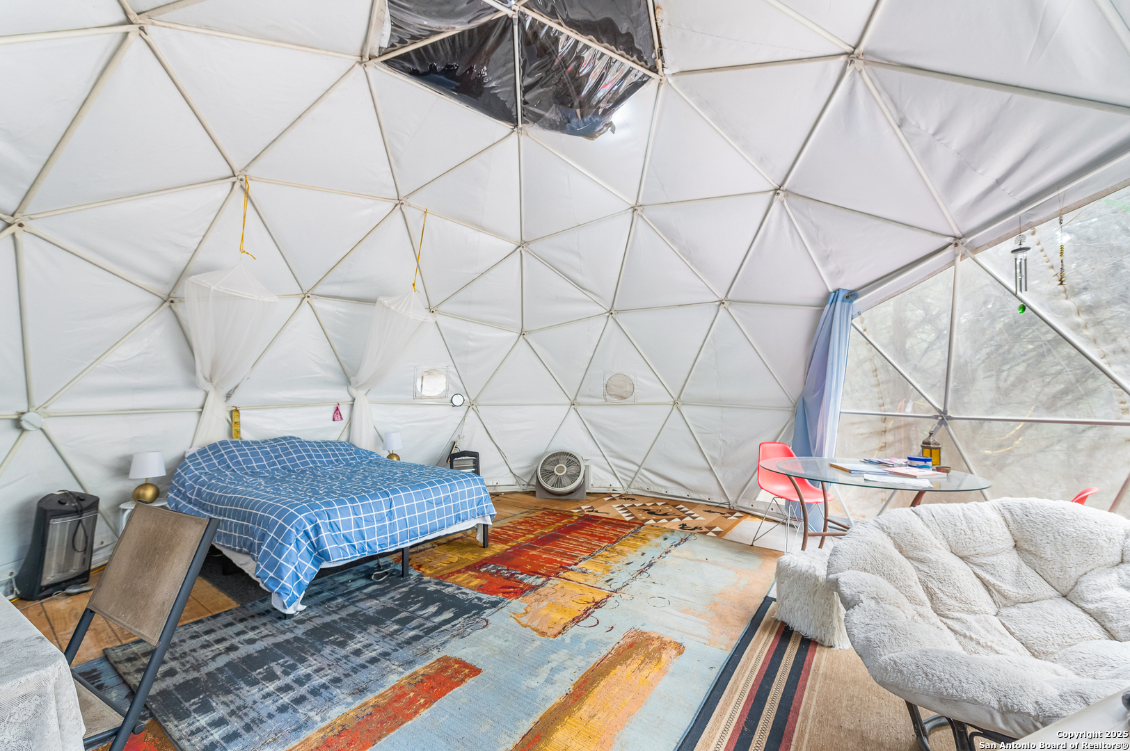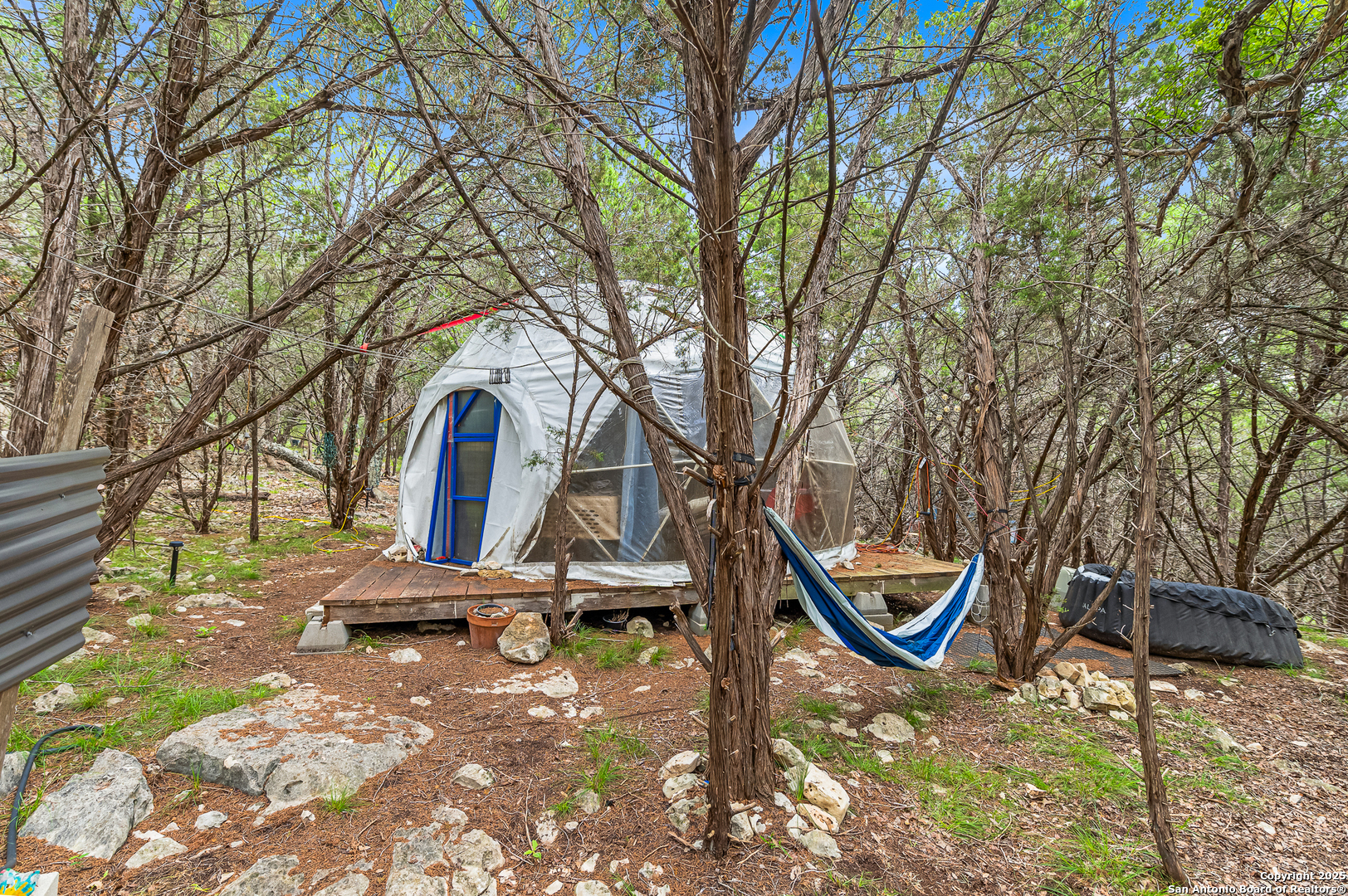 IF YOU EVER DREAMED OF OWNING YOUR VERY OWN PRIVATE RETREAT, THIS IS YOUR CHANCE. TUCKED OUT OF SIGHT FROM THE ROAD WITH LOTS OF TREES AND PRIVACY FENCE ALLOWS FOR THE ULTIMATE IN SECLUSION! THIS PROPERTY HAS THE MAIN HOME, A GUEST QUARTERS, AND TWO GLAMPING STRUCTURES THAT WAS A VERY ACTIVE SHORT-TERM RENTAL IN THE PAST. ACCESS TO THE GUADALUPE RIVER (ONLY 4 MINUTES AWAY) THRU THE PRIVATE NEIGHBORHOOD PARK WITH TENNIS, PICKLEBALL, CLUBHOUSE, HUGE COVERED PATIO, DECK AND DIRECT RIVER ACCESS TO A SECTION OF THE RIVER THAT ALWAYS HAS WATER. STEP INSIDE THE FRONT DOOR AND ENJOY THE VIEW OF NATURE INCLUDING HUGE TREES AND WILDLIFE LIKE DEER AND BIRDS THRU THE FLOOR TO CEILING PELLA WINDOWS. ALL WINDOWS AND DOORS ARE TRIPLE PANE PELLA WINDOWS FOR SUPER ENERGY EFFICENCY. STAINED CONCRETE FLOORS FOR EASY UPKEEP AND MAINTENANCE. HUGE LIVING, DINING AND KITCHEN IS GREAT FOR EVEN THE LARGEST GROUPS. THE CHEF'S KITCHEN IS EQUIPTED WITH UPGRADED STAINLESS-STEEL APPLIANCES, GRANITE COUNTERTOPS, CUSTOM CABINETS, AND HUGE ISLAND WITH BREAKFAST BAR. THE PRIMARY BEDROOM IS A RETREAT WITHIN A RETREAT. VIEWS OF NATURE, A LUXURY BATH FEATURING A CLAWFOOT TUB, HUGE WALK-IN SHOWER AND BIG WALK-IN CLOSET. THE OTHER TWO BEDROOMS ARE BIG AND HAVE LARGE CLOSETS AS WELL. THERE IS ALSO AN EFFECIENCY APARTMENT COMPLETE WITH KITCHENETTE AND FULL BATH. IN ADDITON THERE IS A DOME DWELLING AND ROUGH CABIN FOR GUEST OR FOR SHORT TERM RENTAL. EVEN THOUGH YOU WILL NEVER WANT TO LEAVE YOU WILL BE TORN BETWEEN STAYING HOME AND HANGING OUT AT THE RIVER. ALL THIS PRIVACY BUT STILL ONLY 15 TO 30 MINUTES TO MOST CITIES IN THE AREA.