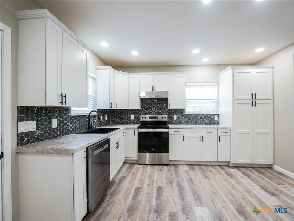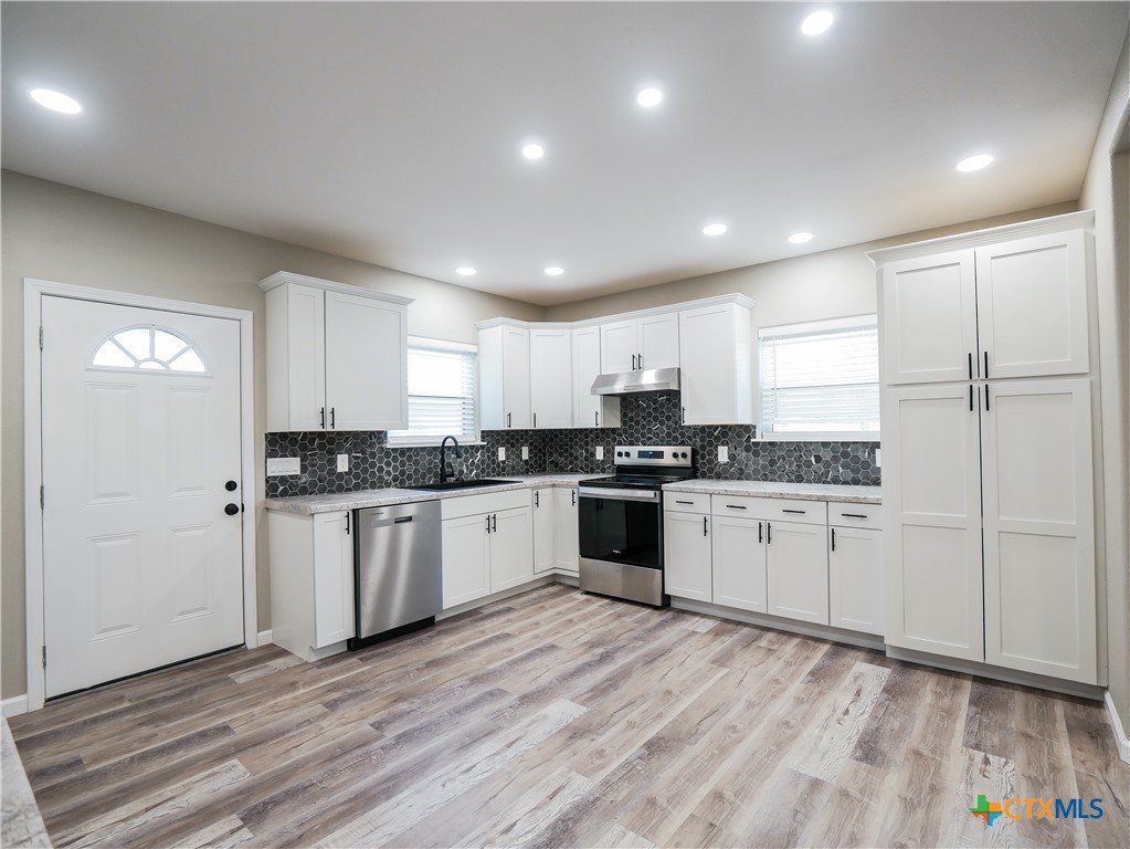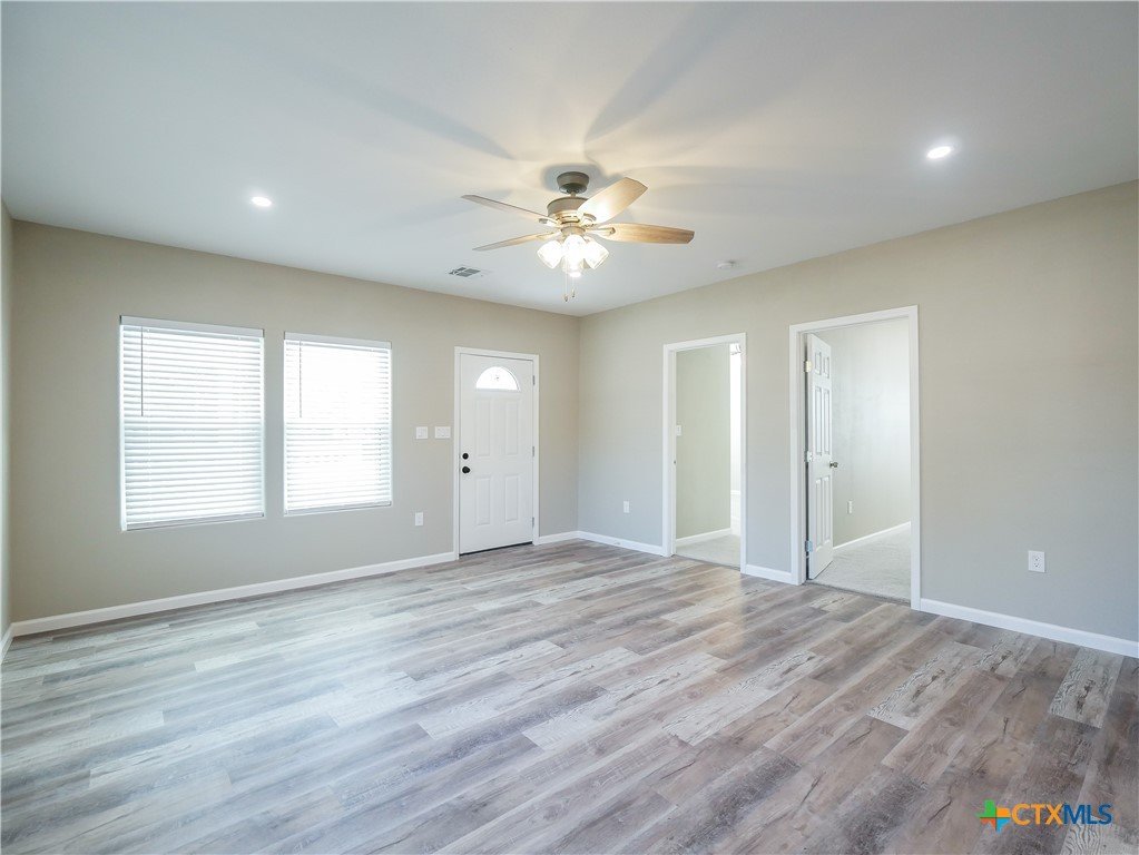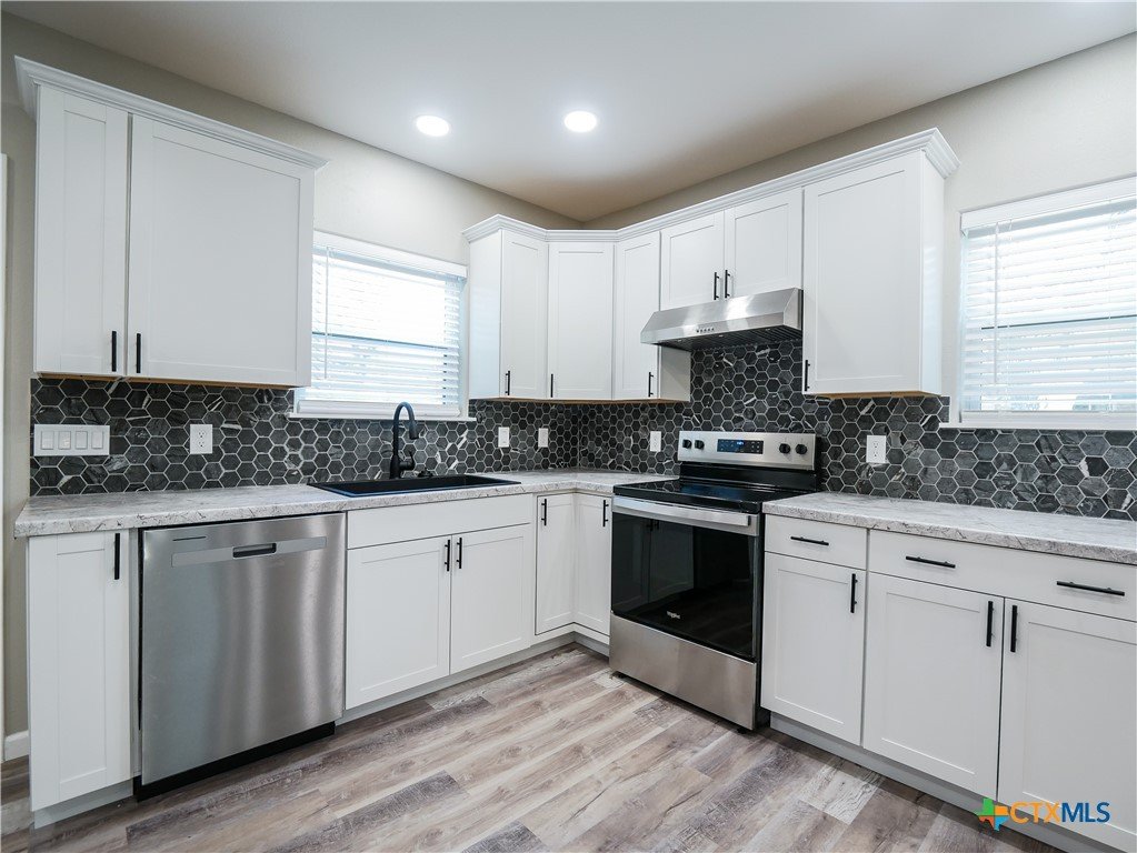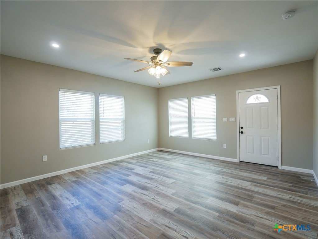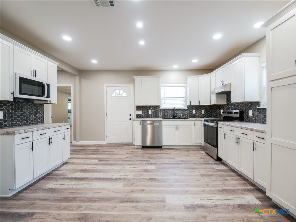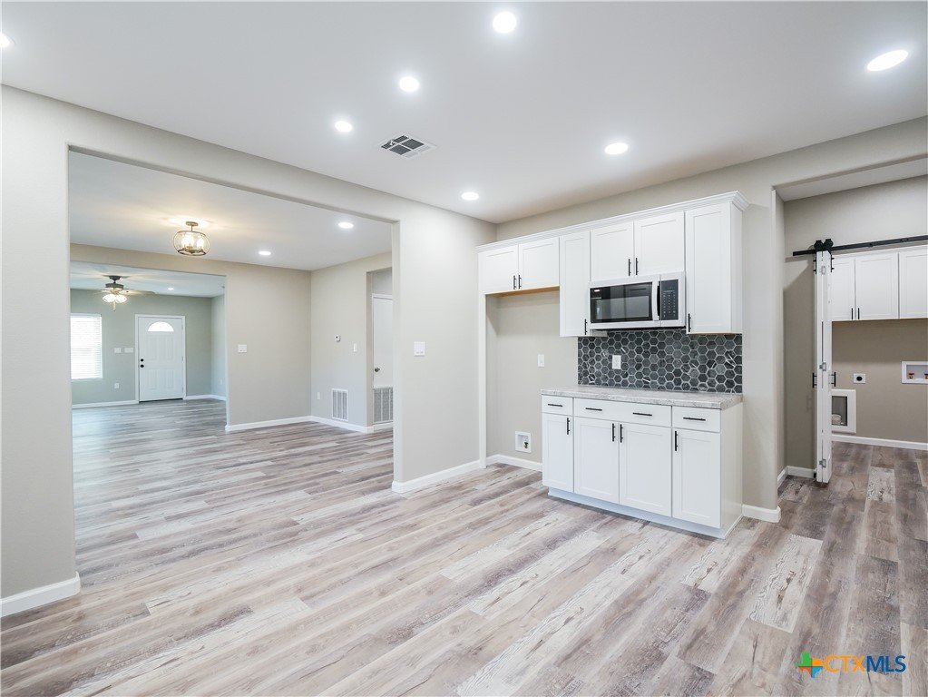 Charming Fully Renovated 4-Bedroom Home in Rogers, TX! This beautifully renovated 4-bedroom, 2-bathroom home, originally built in 1934, blends timeless charm with modern updates. With 1,906 sq/ft of thoughtfully designed space, this home is move-in ready and perfect for creating lasting memories. Step inside to discover luxury vinyl plank flooring throughout, plush carpet in the bedrooms, and abundant natural light from brand-new windows. Every inch of this home has been updated, including recessed LED lighting, new fixtures, plumbing, electrical wiring, HVAC system, and a brand-new roof. The exterior showcases fresh board and batten siding, and the home is fully insulated, including the floor, for energy efficiency. The large, inviting kitchen is a chef’s dream with custom cabinetry, a stylish tile backsplash, a single-basin farmhouse sink, and stainless steel appliances. The spacious primary suite boasts his-and-hers walk-in closets, while the ensuite bathroom features a double vanity and a walk-in shower. Outside, enjoy the beauty of a large corner lot adorned with mature pecan and oak trees. The fenced backyard is perfect for relaxation or entertaining, and the 24’x25’ shop with a concrete floor offers ample space for storage or a workshop. Located in the highly regarded Rogers ISD, this home offers small-town charm with modern conveniences. Don’t miss this opportunity to own a piece of Rogers history, completely reimagined for today’s lifestyle.