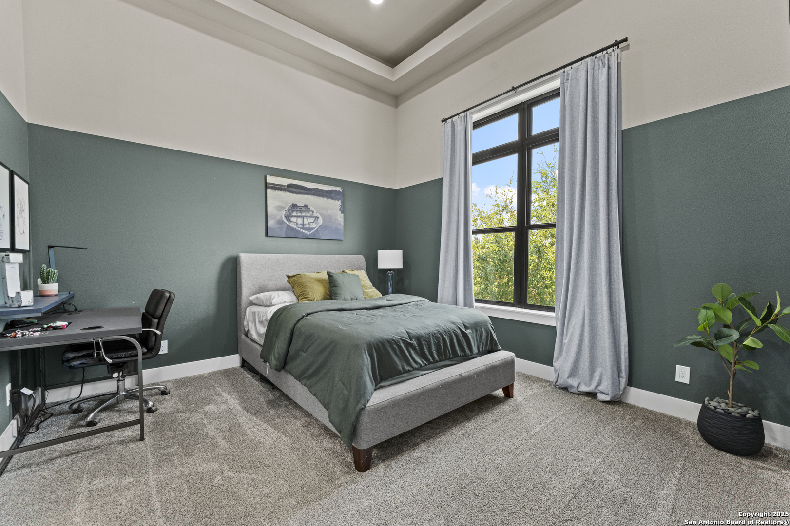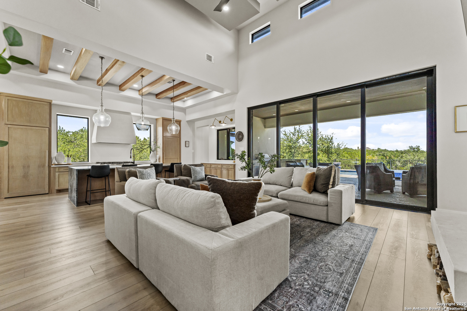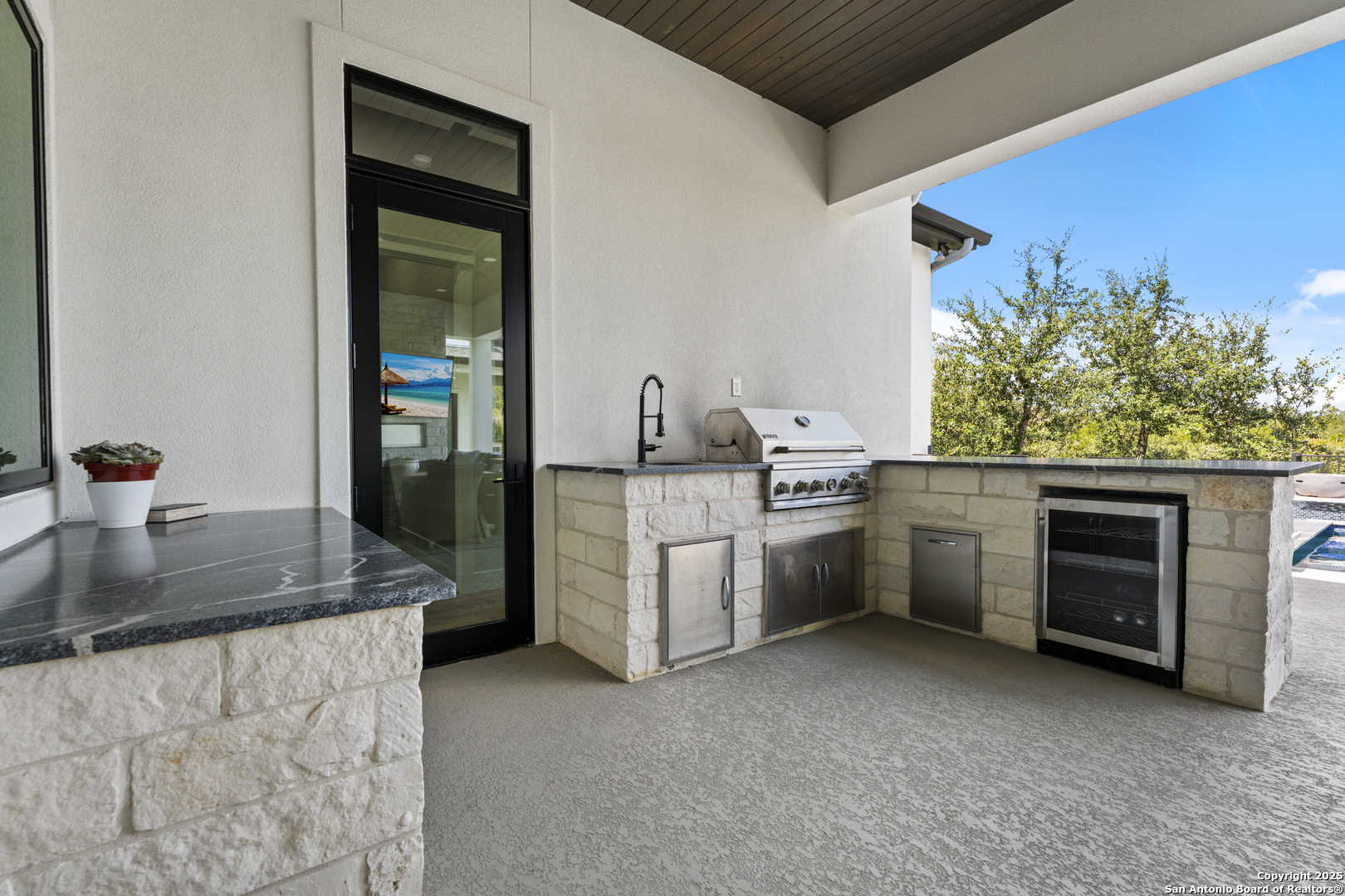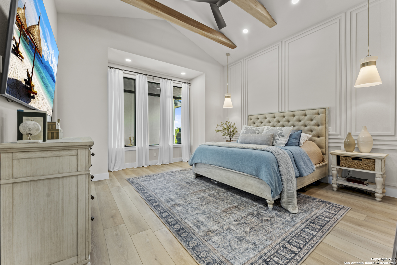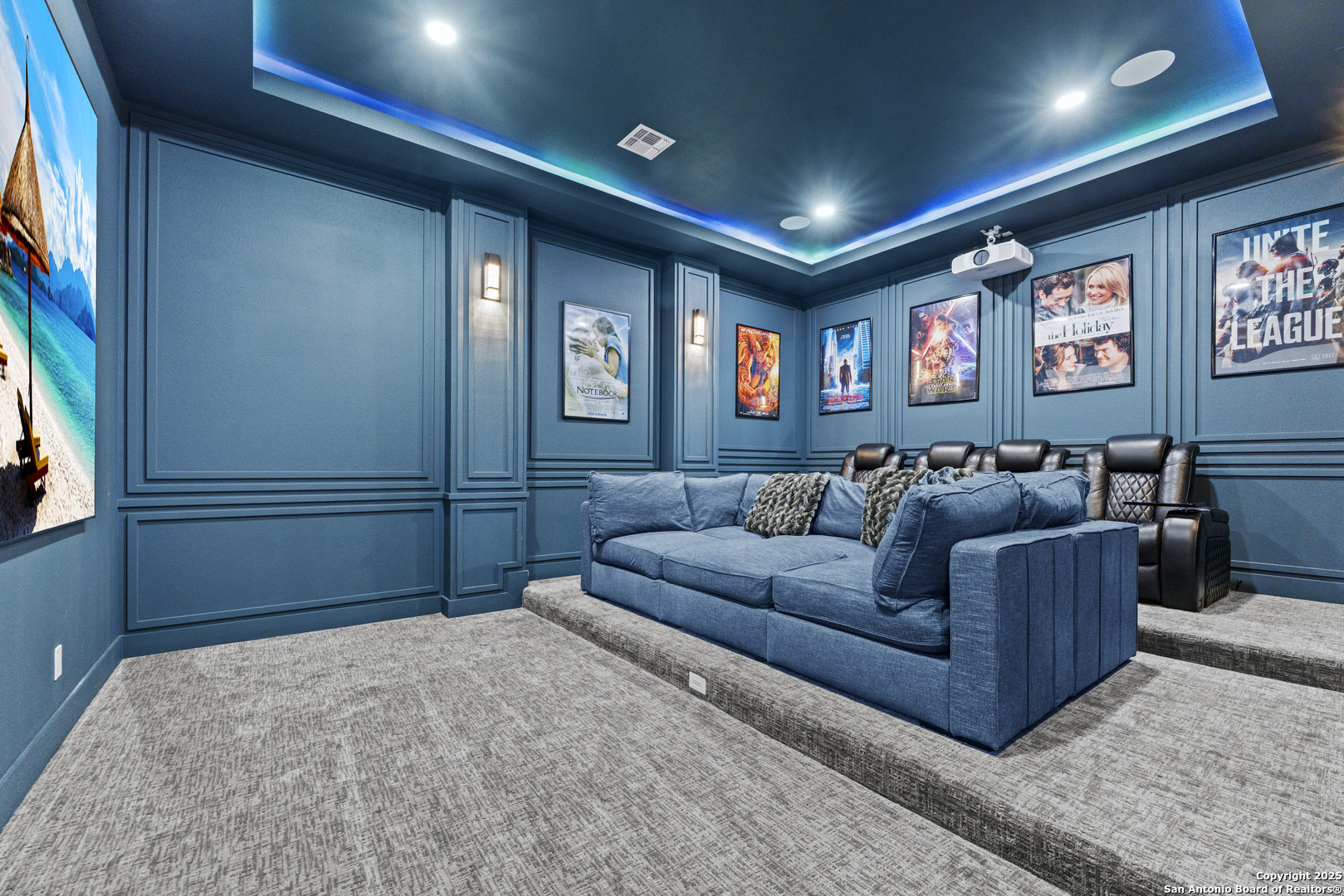Welcome to 318 Upland Court in the sought-after Mountain Springs Ranch community. This exceptional home features 4 spacious bedrooms, 4.5 luxurious bathrooms, and a layout designed for both elegance and comfort. The front exterior makes a striking impression with a beautifully landscaped yard, wrap-around extended driveway, and 3-car garage. Step inside through a stone-accented entry into a grand foyer with soaring ceilings and expansive windows that fill the space with natural light. The open floor plan includes a custom kitchen with luxury cabinetry, a large waterfall island, abundant storage, and a sleek center fireplace, all complemented by unique accent walls and upscale finishes throughout the entire home. A private office with tall double doors offers a refined workspace, while the primary suite serves as a tranquil retreat with a spa-style bathroom, soaking tub, and oversized shower. The home also features a dedicated movie theater and media room, perfect for entertaining. Outside, enjoy a private backyard oasis complete with a built-in outdoor kitchen, low-maintenance turf, a basketball court, scenic views, and a luxury pool designed for both relaxation and entertaining. Located in a community with walking trails, a pool, park, playground, and BBQ areas, this home offers an elevated lifestyle with thoughtful details in every corner.