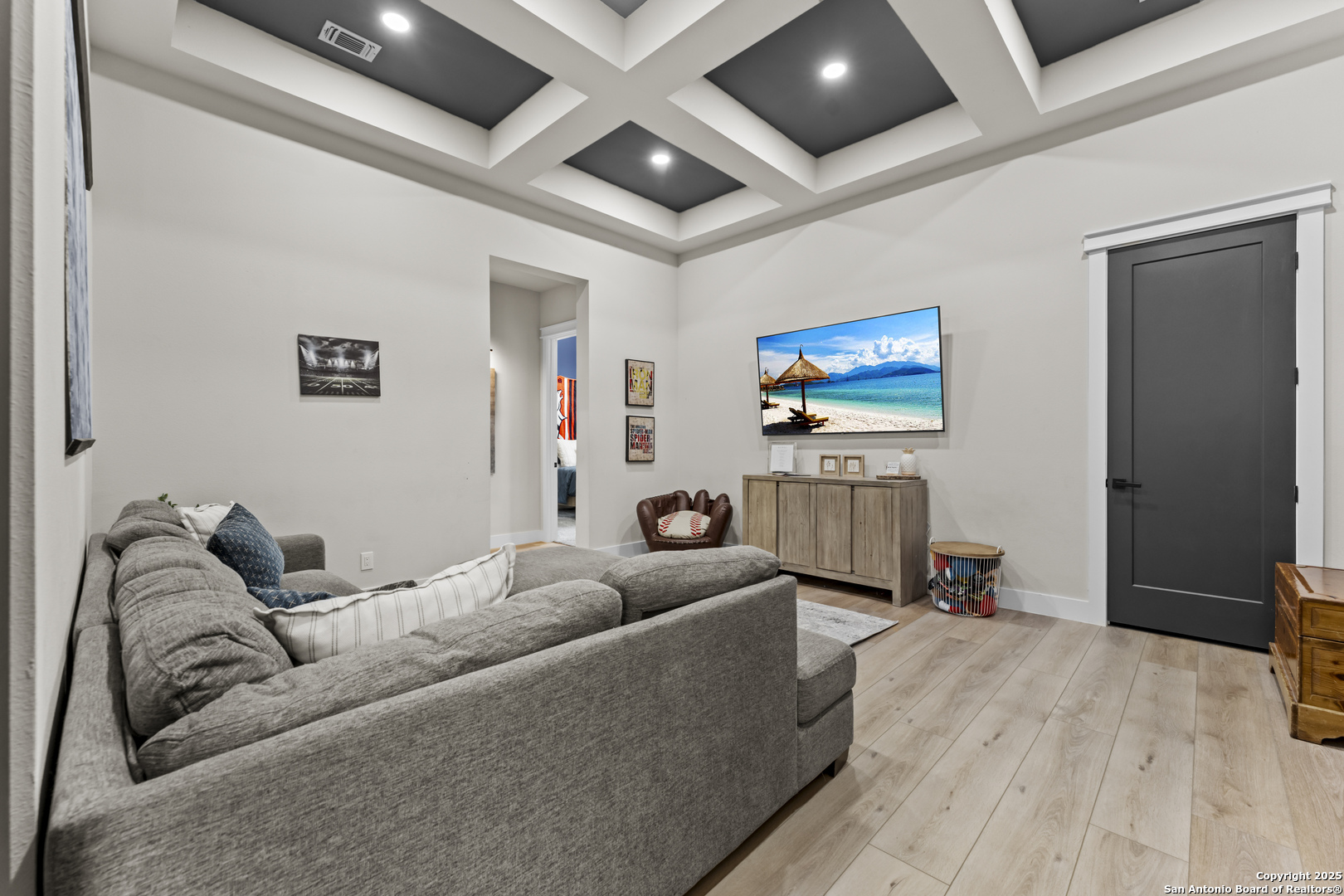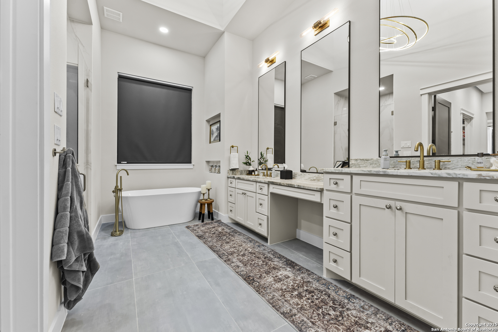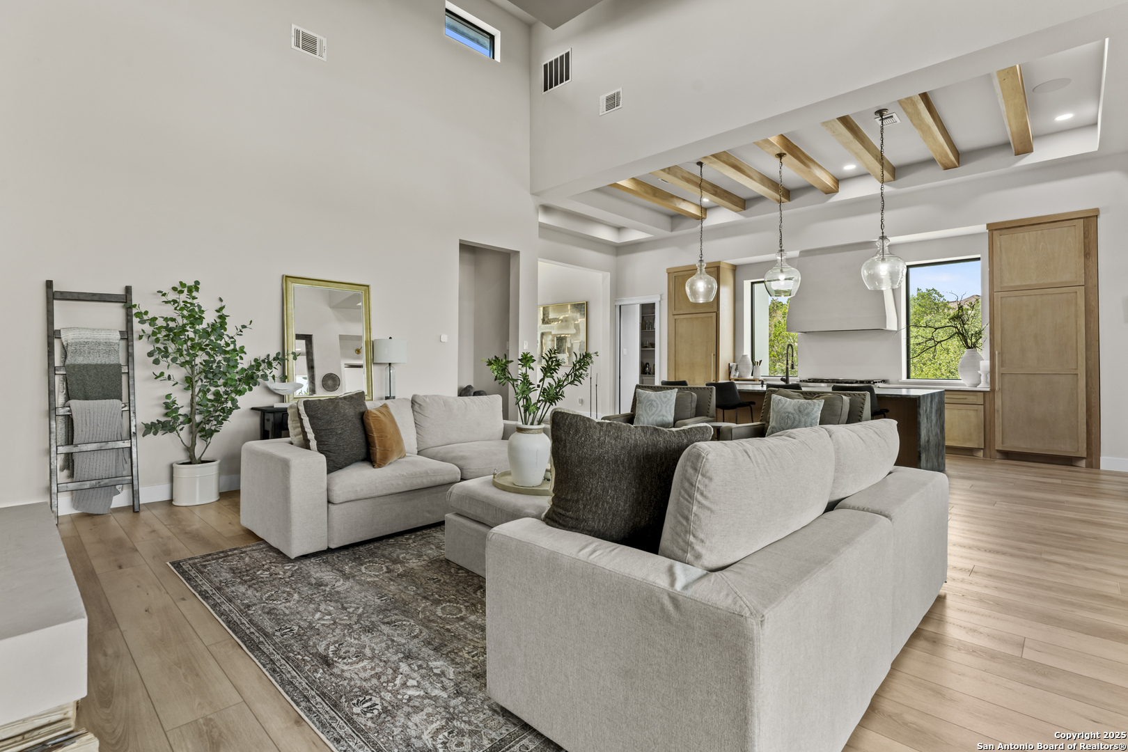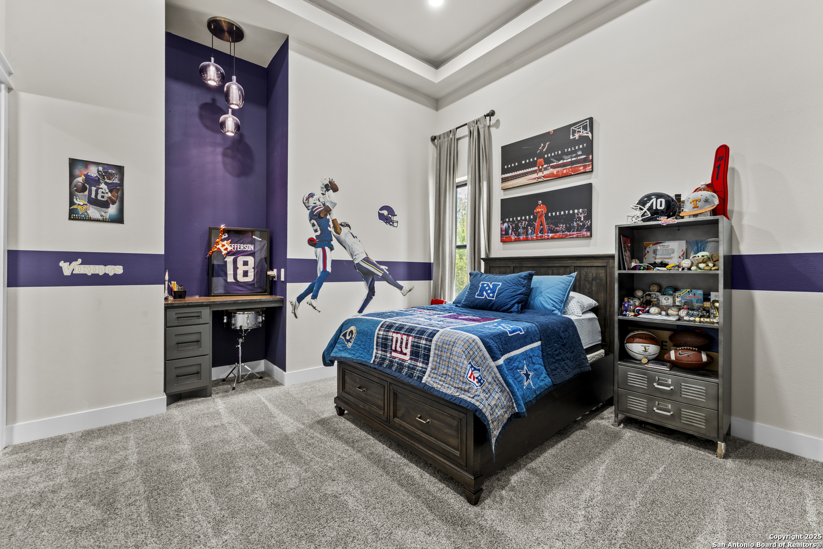 Welcome to 318 Upland Court in the sought-after Mountain Springs Ranch community. This exceptional home features 4 spacious bedrooms, 4.5 luxurious bathrooms, and a layout designed for both elegance and comfort. The front exterior makes a striking impression with a beautifully landscaped yard, wrap-around extended driveway, and 3-car garage. Step inside through a stone-accented entry into a grand foyer with soaring ceilings and expansive windows that fill the space with natural light. The open floor plan includes a custom kitchen with luxury cabinetry, a large waterfall island, abundant storage, and a sleek center fireplace, all complemented by unique accent walls and upscale finishes throughout the entire home. A private office with tall double doors offers a refined workspace, while the primary suite serves as a tranquil retreat with a spa-style bathroom, soaking tub, and oversized shower. The home also features a dedicated movie theater and media room, perfect for entertaining. Outside, enjoy a private backyard oasis complete with a built-in outdoor kitchen, low-maintenance turf, a basketball court, scenic views, and a luxury pool designed for both relaxation and entertaining. Located in a community with walking trails, a pool, park, playground, and BBQ areas, this home offers an elevated lifestyle with thoughtful details in every corner.