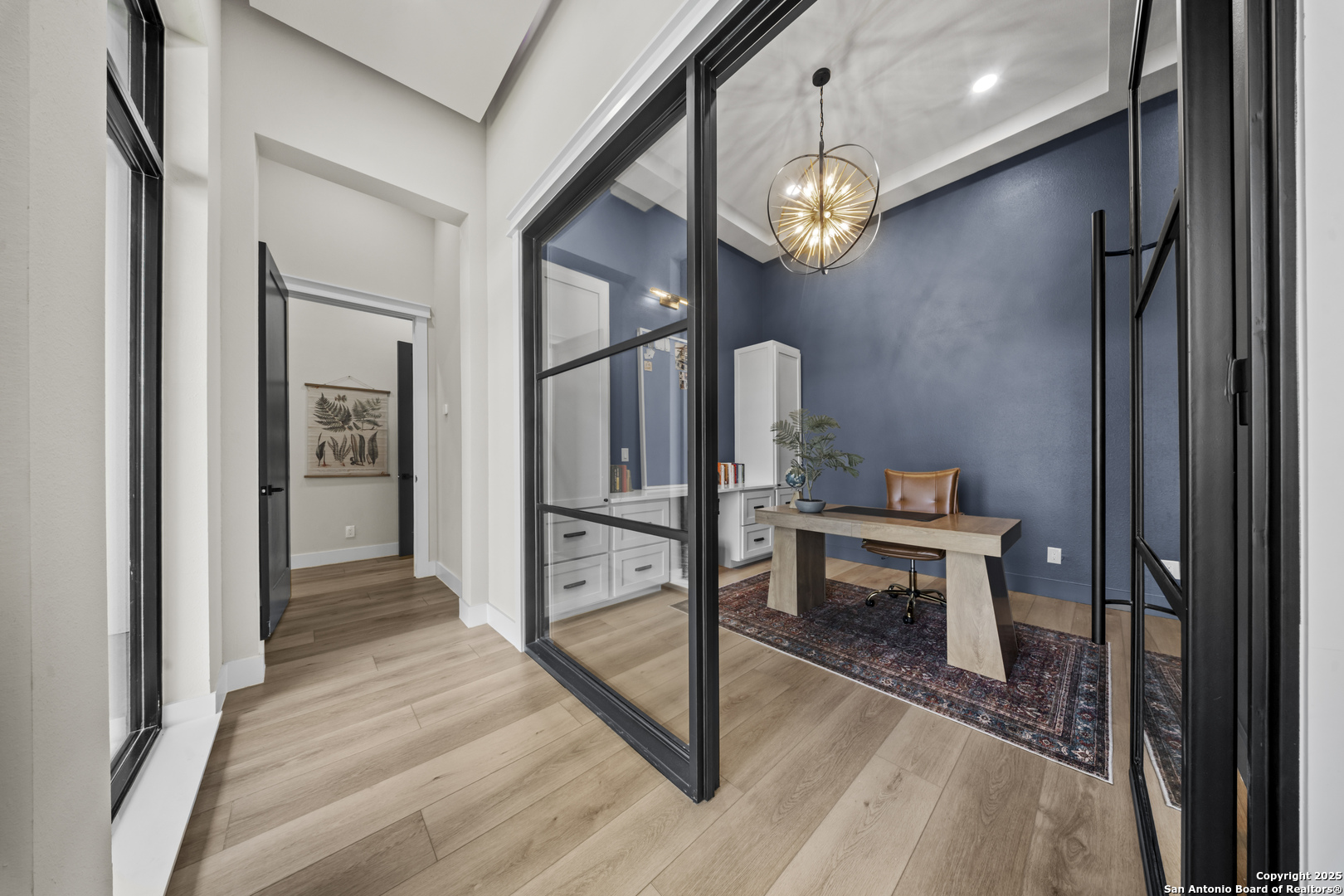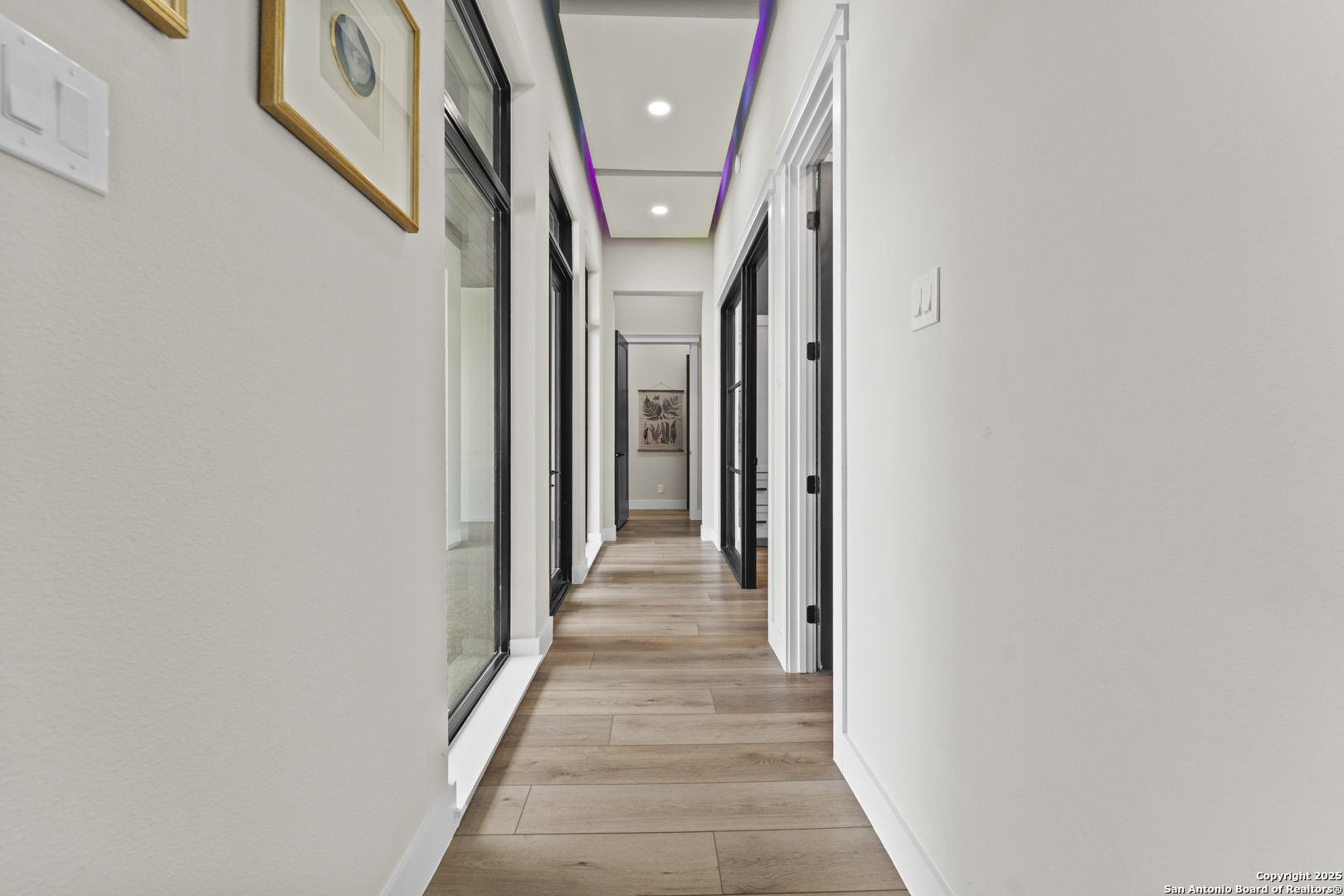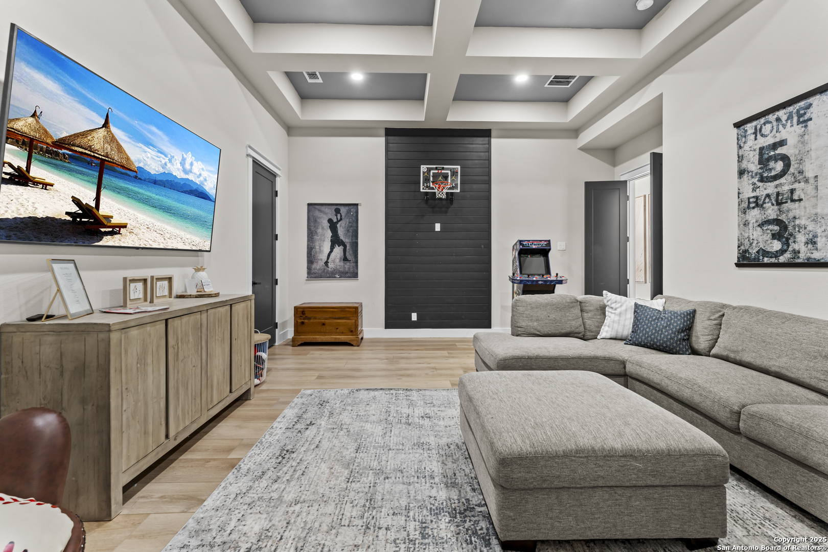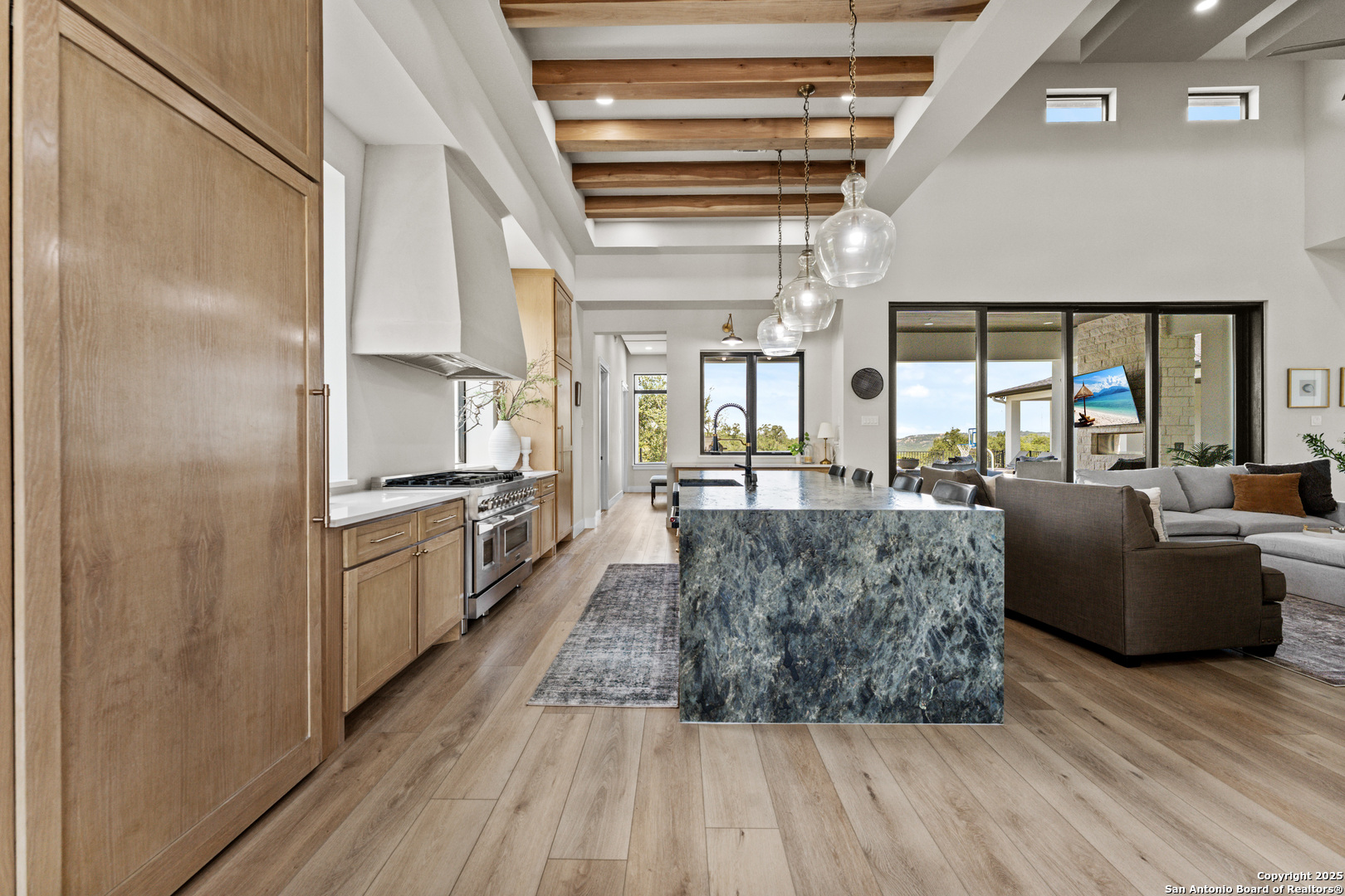 Welcome to 318 Upland Court in the sought-after Mountain Springs Ranch community. This exceptional home features 4 spacious bedrooms, 4.5 luxurious bathrooms, and a layout designed for both elegance and comfort. The front exterior makes a striking impression with a beautifully landscaped yard, wrap-around extended driveway, and 3-car garage. Step inside through a stone-accented entry into a grand foyer with soaring ceilings and expansive windows that fill the space with natural light. The open floor plan includes a custom kitchen with luxury cabinetry, a large waterfall island, abundant storage, and a sleek center fireplace, all complemented by unique accent walls and upscale finishes throughout the entire home. A private office with tall double doors offers a refined workspace, while the primary suite serves as a tranquil retreat with a spa-style bathroom, soaking tub, and oversized shower. The home also features a dedicated movie theater and media room, perfect for entertaining. Outside, enjoy a private backyard oasis complete with a built-in outdoor kitchen, low-maintenance turf, a basketball court, scenic views, and a luxury pool designed for both relaxation and entertaining. Located in a community with walking trails, a pool, park, playground, and BBQ areas, this home offers an elevated lifestyle with thoughtful details in every corner.