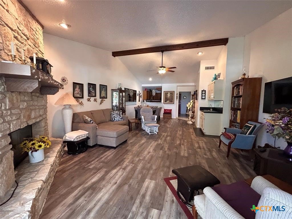 The Oaks of Lago Vista is a townhome community adorned with large shady oaks throughout! This is a highly sought after community in the Texas Hill Country. The grounds are immaculate and landscaped to perfection! Residents love to stroll the property, golf cart to the golf course or lake and enjoy what the golfing/lake life has to offer! The Oaks also belongs to Lago Vista POA so you can enjoy 9 waterfront parks, fitness center, pool, fishing well, walking trails and more! This is a 2 bed 2 bath unit with an updated kitchen, Newer Vinyl flooring, 1+ car garage with tons of storage! Walk out onto a large covered deck with a view of beautiful oak trees from the living space as well as the primary suite. This home has been well maintained, clean and bright and waiting for it's new owners to love it as much as the last.