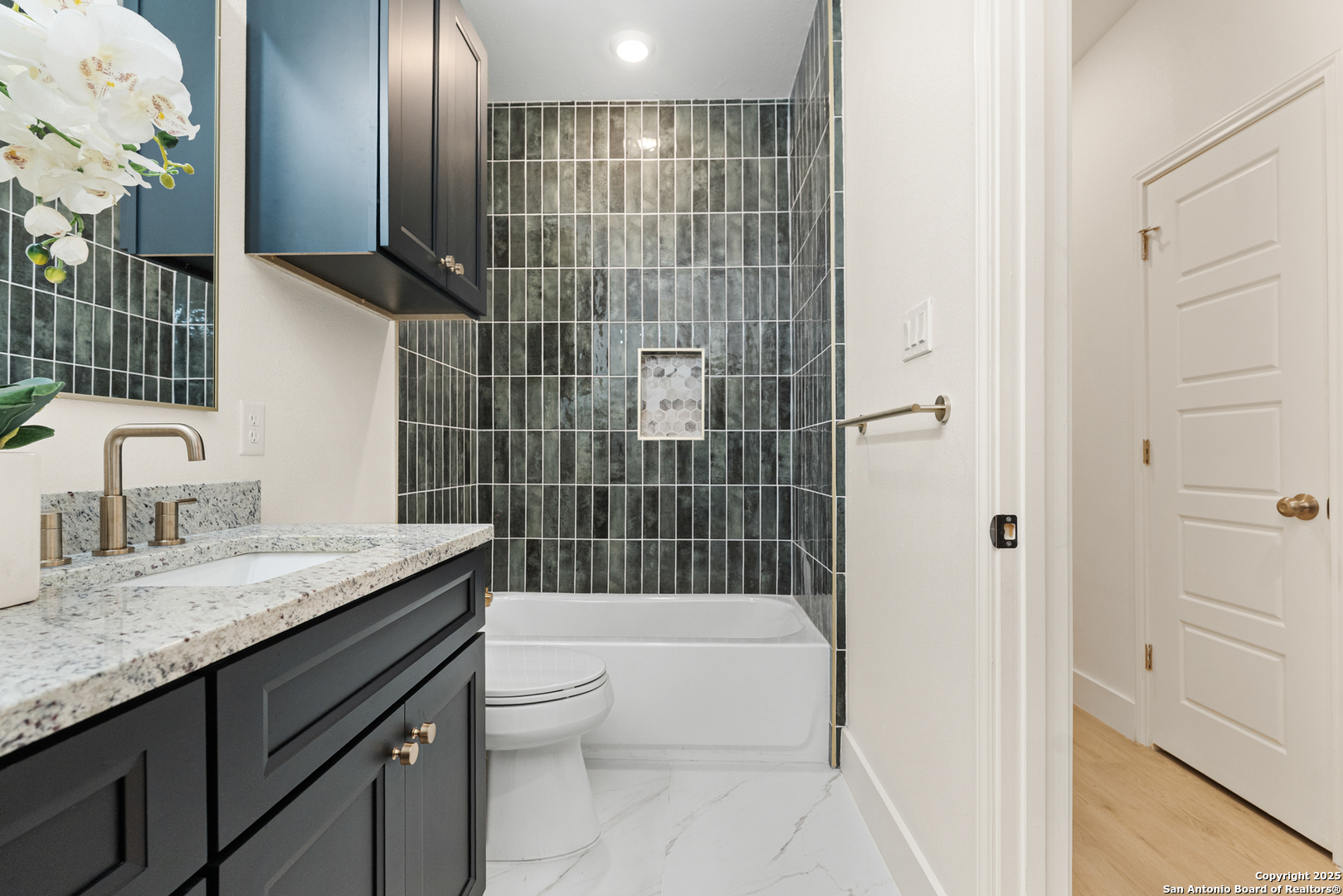 This is the one!!! Completely renovated one story home in the highly coveted Tobin Hill neighborhood, only steps from St. Mary's Strip and just a few minutes to The Pearl and the River Walk. This absolute stunner features 4 spacious bedrooms and 2.5 bathrooms, all tastefully and meticulously updated from top to bottom. Built in 1930 and brought beyond even it's original glory, now boasting a bright open floor plan, a chef-inspired kitchen with quartz counter tops, stainless steel appliances including a gas stove, herring bone subway tile to the ceiling, high end designer finishes throughout, all new lighting, new windows, window blinds (added in front rooms since photos), all new electrical and plumbing, new roof, a brand new HVAC system, and a newly engineered foundation- giving you peace of mind without sacrificing charm and history. This home is a must see! Open houses will be held this weekend 6/28 & 6/29 from 11am-2pm.