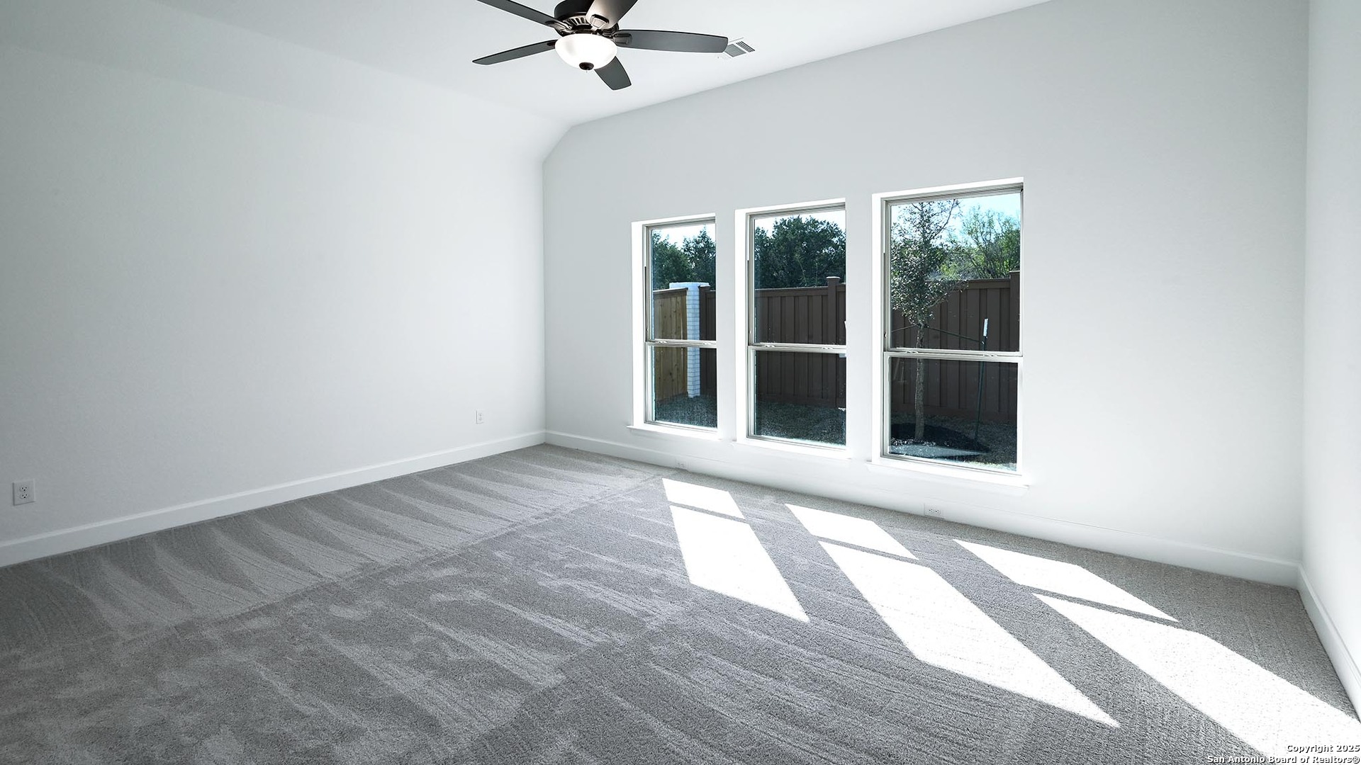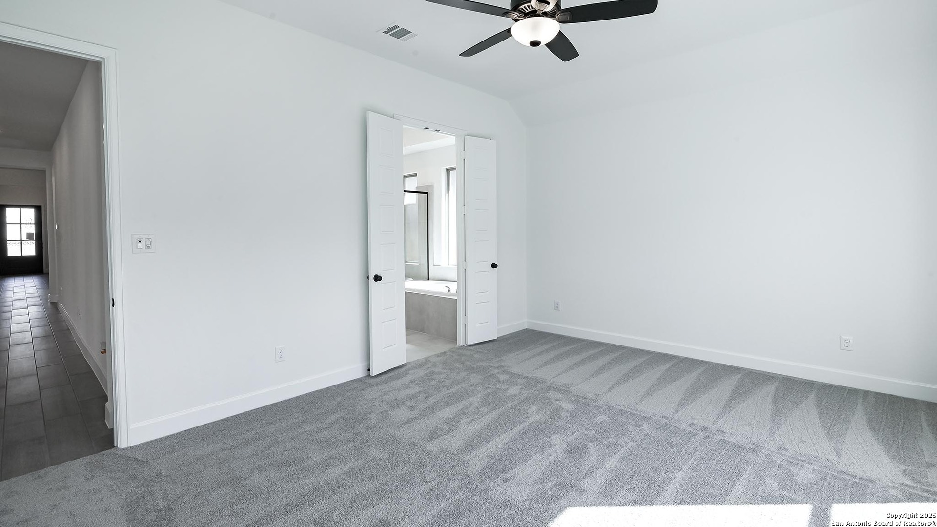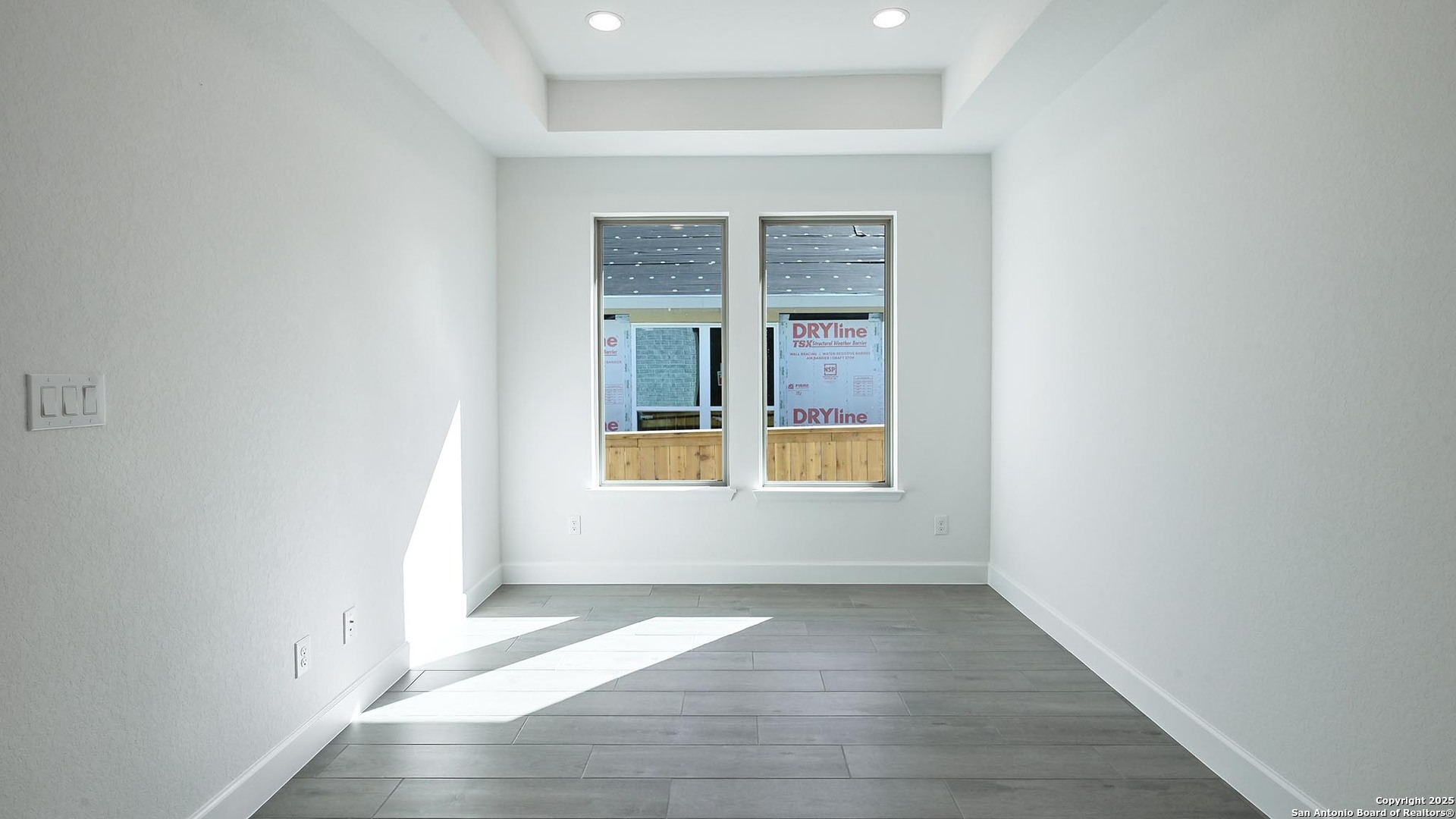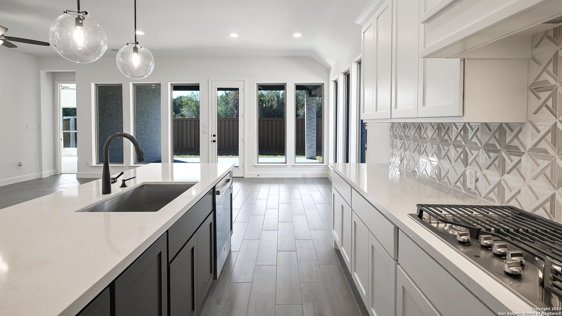 READY FOR MOVE IN!! Home office with French doors off extended entry with 12-foot ceiling. Spacious family room with wall of windows opens to kitchen and dining area. Kitchen offers walk-in pantry, 5-burner gas cooktop and generous island with built-in seating space. Private primary suite includes bedroom with wall of windows. Double doors lead to primary bath with dual vanities, corner garden tub, separate glass-enclosed shower and large walk-in closet. This open one-story design features a guest suite with full bath. Abundant closet space throughout. Extended covered backyard patio. Mud room off three-car garage.
