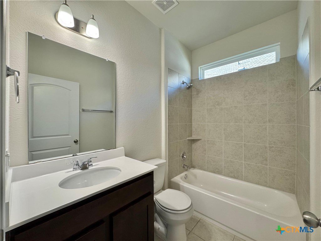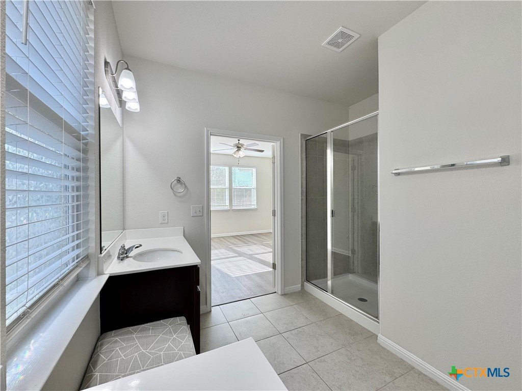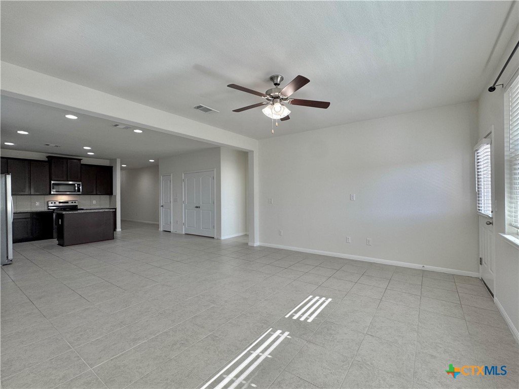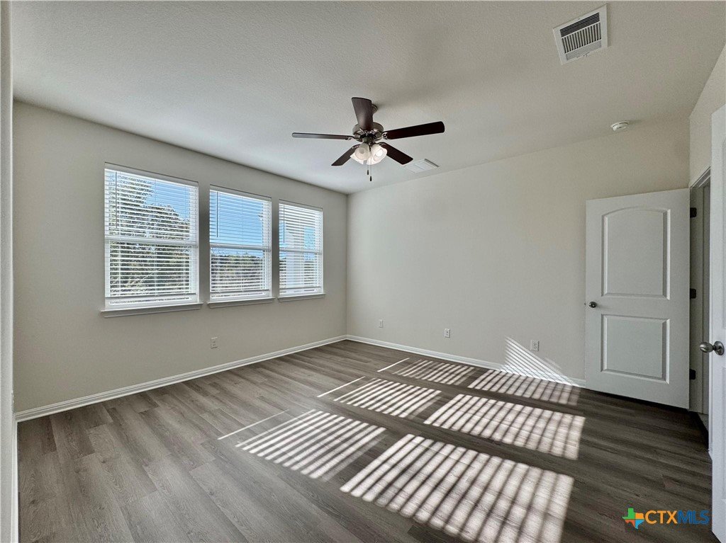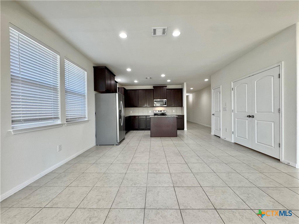 Outstanding Location** Available for immediate occupancy. This residence boasts an open floor plan, perfect for hosting gatherings. The kitchen is equipped with 42-inch espresso maple cabinets complemented by a 12x24 vertical tile backsplash, arctic pearl granite countertops, a central island, and stainless steel appliances, including a refrigerator. The private primary suite features a walk-in closet, ceiling fan, double vanity, cozy seating nook, and a walk-in shower. It showcases modern hardware, 2" blinds throughout, tile flooring, and a spacious covered patio. Located in a top-rated school district. Conveniently close to shopping and just one stoplight away from the 183A tollway, ensuring a faster commute to anywhere in Austin!