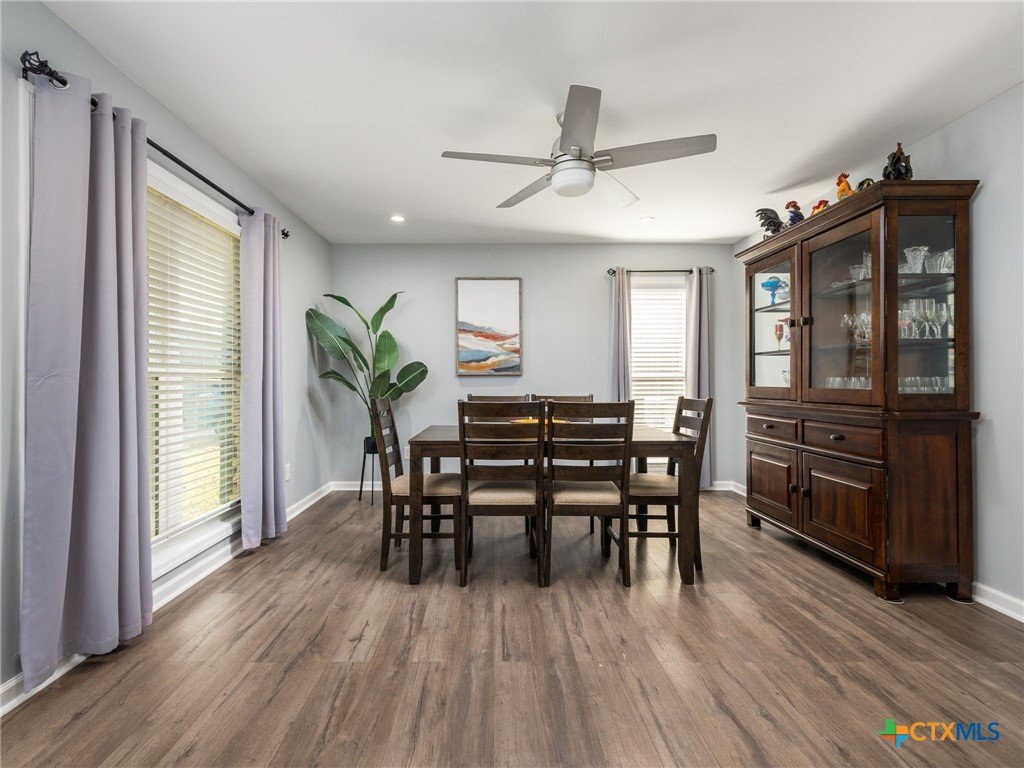 This beautifully updated two-story home is move-in ready with modern features throughout. Nearly every space has been thoughtfully remodeled in the past few years—making this home a rare find. Step into the refreshed kitchen, featuring soft close drawers, updated cabinets,grade 3 granite countertops, and modern appliances that elevate both style and function. The home’s interiors have been enhanced with new ½-inch drywall, smooth-finish walls, and fresh paint, vinyl plank floors creating a clean and contemporary feel. Upstairs, the primary bedroom has been enlarged, offering a spacious retreat, while secondary bedrooms include built-in shelving in closets for smart storage. Additional updates include newer windows, roof, and driveway, ensuring peace of mind for years to come. The exterior is clad in durable aluminum siding, complemented by a freshly interior painted garage for a crisp, welcoming look. Back yard features large covered patio and spacious outbuilding for storage or hobbies. Don’t miss the opportunity to own a home where all the heavy lifting has already been done— Long Branch Park, with playgrounds, community pool and skate park, Killeen Highschool, just a few minutes drive.