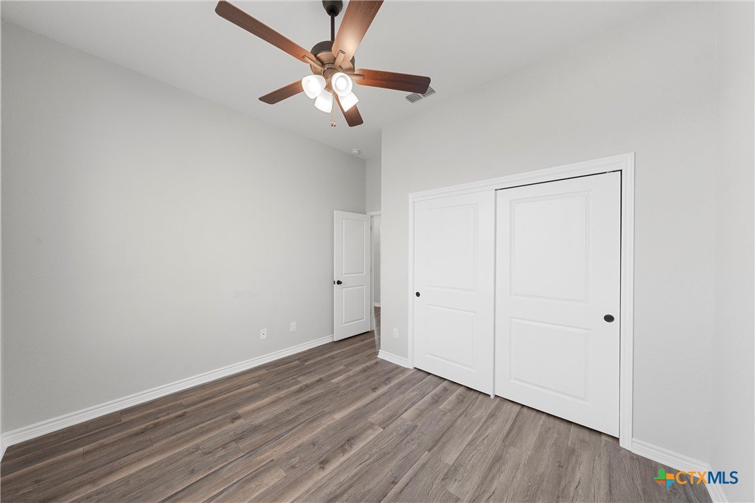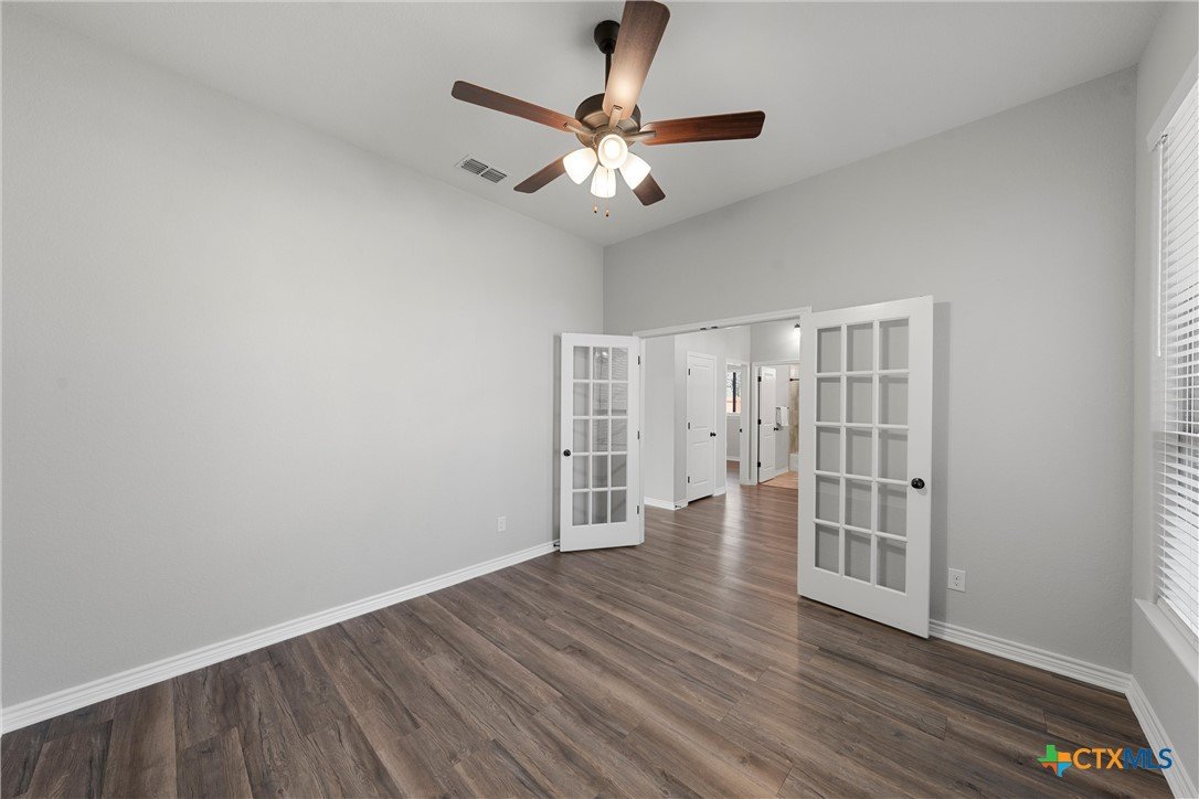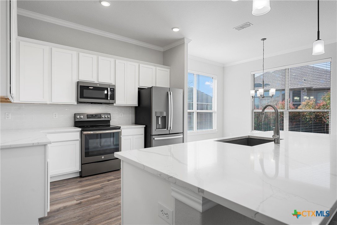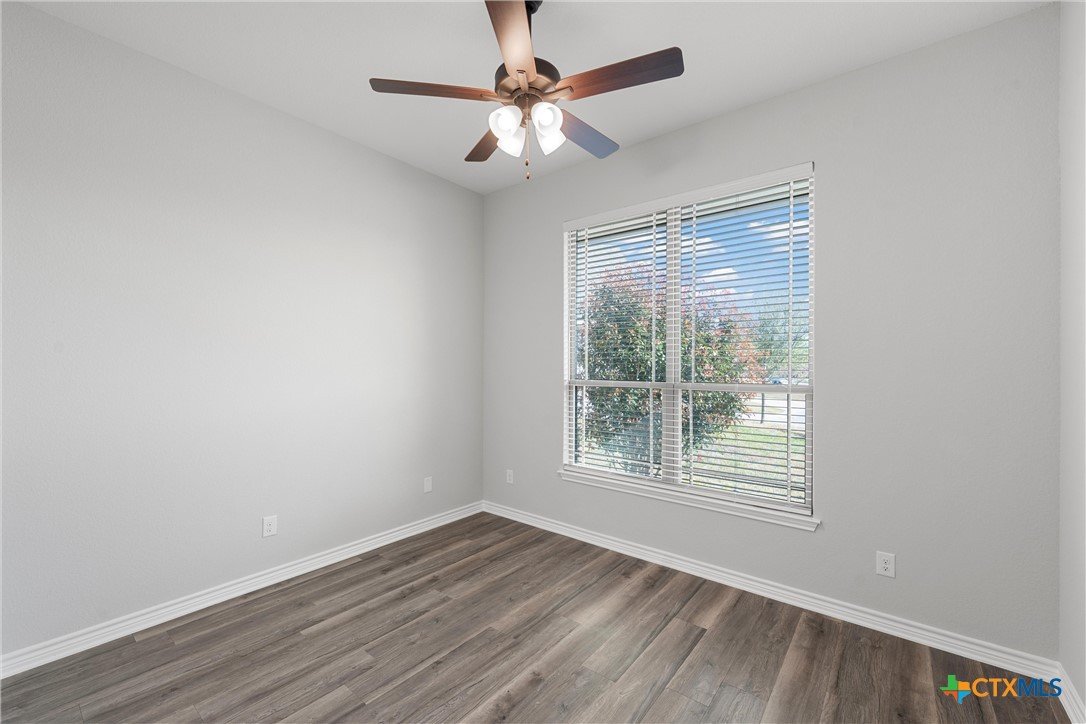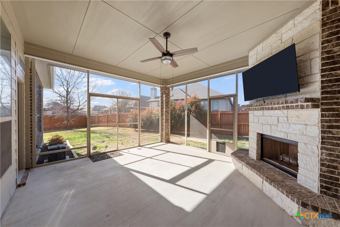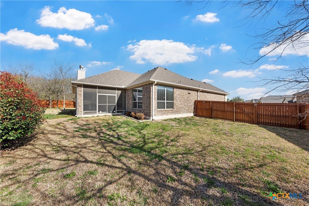 Welcome to this beautifully designed home, where comfort and style meet functionality! Located on a spacious lot in a quiet cul-de-sac, this 3-bedroom, 2-bathroom beauty features an open floor plan, luxurious finishes, and an abundance of natural light. With no carpet and plenty of high-end touches, it’s the perfect retreat for modern living. In addition to the 3 bedrooms, there is also a home office with french doors, ceiling fan, and natural light—ideal for work or quiet time. The Open Floor Plan with large windows and blinds flood the space with sunlight, creating an inviting atmosphere. Vinyl Plank Flooring throughout creates a sleek, modern look with easy maintenance! Upgraded Quartz Countertops in both the kitchen and bathrooms for an upscale touch. Eat-in Kitchen featuring GE Appliances, including a built-in microwave, Energy Star fridge, and a Blanco Diamond Single Bowl sink. Large Utility Room with countertop and storage—making laundry day a breeze. Pantry off the kitchen for extra storage, plus shelves and cubbies off the garage to keep everything organized. Master Suite with a ceiling fan, large walk-in closet, and a stunning master bath featuring ceramic tile floors, a large walk-in shower, dual vanity sinks, and linen storage. Relax on the large front covered porch—perfect for morning coffee or evening sunsets or hang out in the screened-in back porch with a fireplace (never used) and TV—ideal for cozy evenings or hosting friends and family in the fresh air. This large landscaped lot with mature trees, lush greenery, and decorative touches throughout creates a space for outdoor fun. The freshly stained wooden fence provides some privacy. Gutters and composite shingle roof installed fall of 2024. This beautiful home offers the perfect blend of style, comfort, and functionality, all nestled in a serene cul-de-sac setting. Don’t miss the chance to make this exceptional property yours! Contact us today for a private tour.