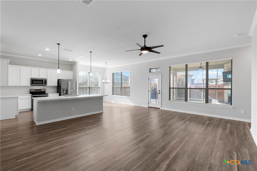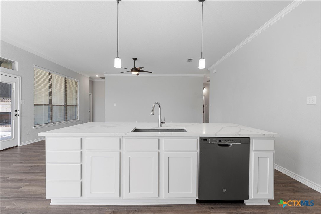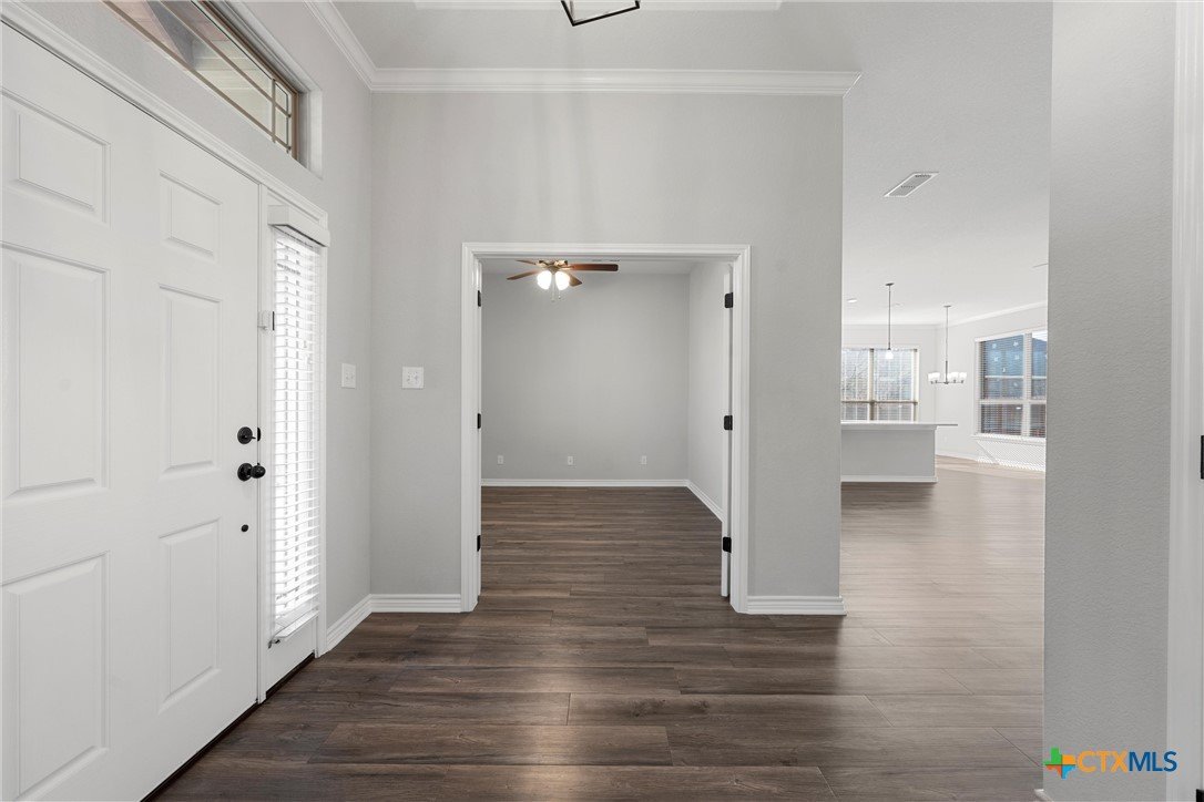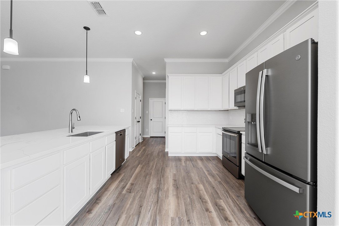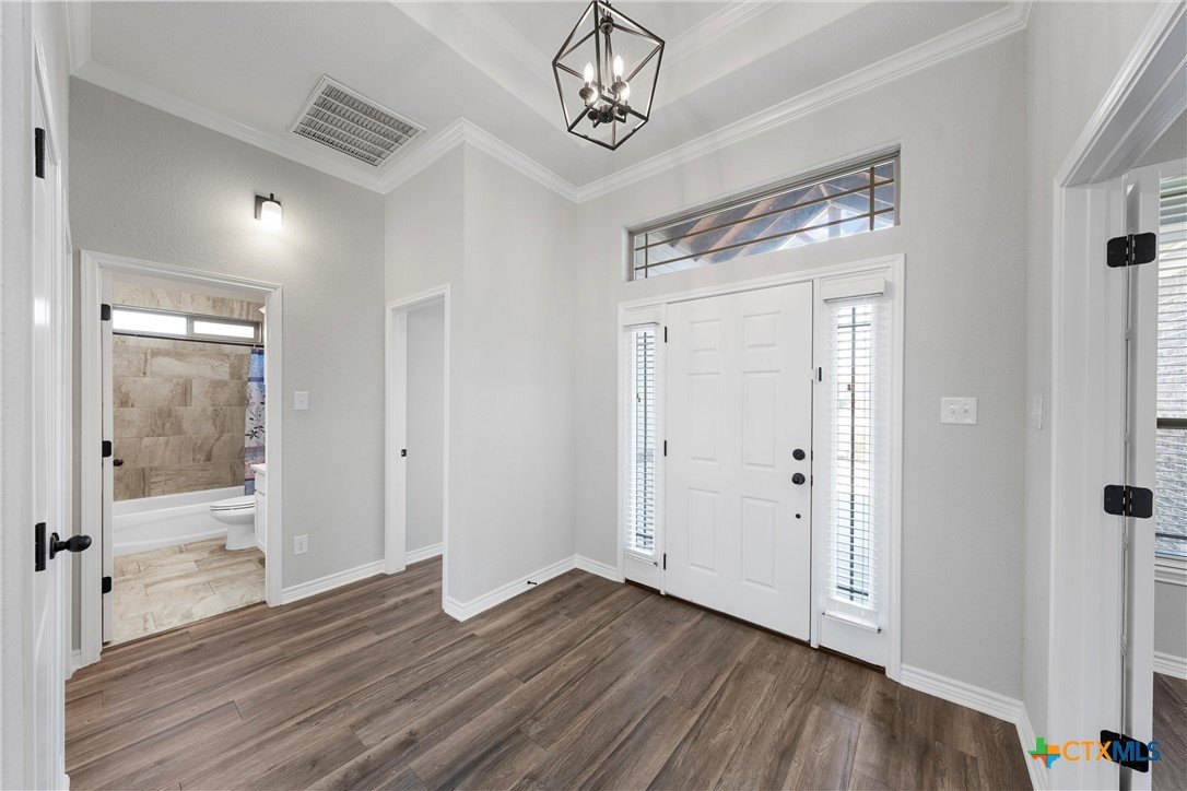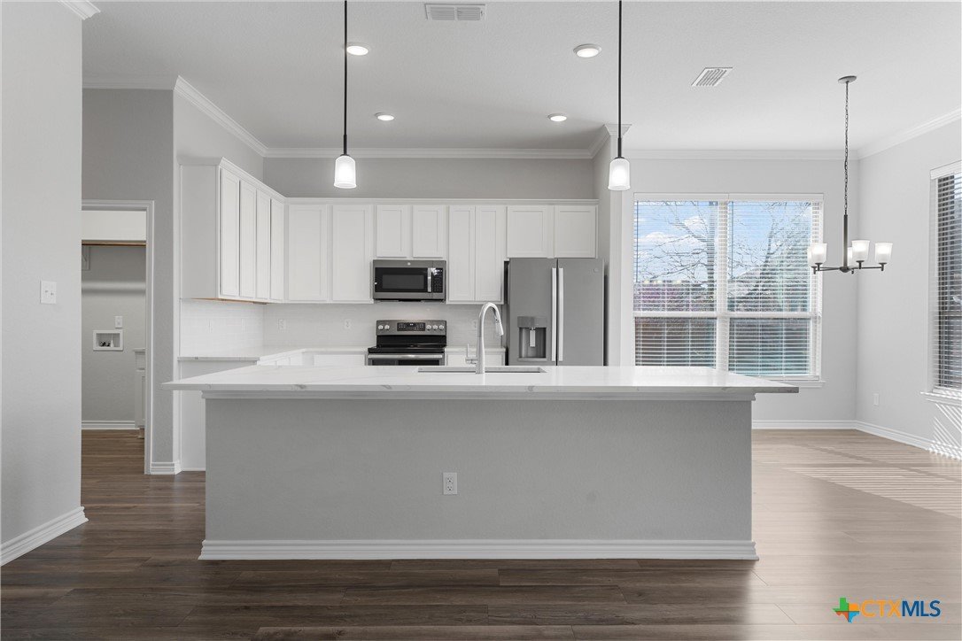 Welcome to this beautifully designed home, where comfort and style meet functionality! Located on a spacious lot in a quiet cul-de-sac, this 3-bedroom, 2-bathroom beauty features an open floor plan, luxurious finishes, and an abundance of natural light. With no carpet and plenty of high-end touches, it’s the perfect retreat for modern living. In addition to the 3 bedrooms, there is also a home office with french doors, ceiling fan, and natural light—ideal for work or quiet time. The Open Floor Plan with large windows and blinds flood the space with sunlight, creating an inviting atmosphere. Vinyl Plank Flooring throughout creates a sleek, modern look with easy maintenance! Upgraded Quartz Countertops in both the kitchen and bathrooms for an upscale touch. Eat-in Kitchen featuring GE Appliances, including a built-in microwave, Energy Star fridge, and a Blanco Diamond Single Bowl sink. Large Utility Room with countertop and storage—making laundry day a breeze. Pantry off the kitchen for extra storage, plus shelves and cubbies off the garage to keep everything organized. Master Suite with a ceiling fan, large walk-in closet, and a stunning master bath featuring ceramic tile floors, a large walk-in shower, dual vanity sinks, and linen storage. Relax on the large front covered porch—perfect for morning coffee or evening sunsets or hang out in the screened-in back porch with a fireplace (never used) and TV—ideal for cozy evenings or hosting friends and family in the fresh air. This large landscaped lot with mature trees, lush greenery, and decorative touches throughout creates a space for outdoor fun. The freshly stained wooden fence provides some privacy. Gutters and composite shingle roof installed fall of 2024. This beautiful home offers the perfect blend of style, comfort, and functionality, all nestled in a serene cul-de-sac setting. Don’t miss the chance to make this exceptional property yours! Contact us today for a private tour.