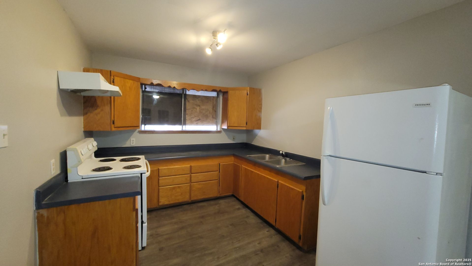 Welcome to this recently painted 2-bedroom, 2-bathroom home located in the vibrant city of San Antonio, TX. This home offers a fresh, modern feel with its newly painted walls and stylish vinyl plank and tile flooring in the common areas. The kitchen comes equipped with a stove and refrigerator, ready for your culinary adventures. The property also features a covered carport, providing protection for your vehicle from the elements. For your convenience, there is a washer/dryer hook-up, making laundry days a breeze. The fenced-in yard offers a private outdoor space for relaxation or entertaining. Additionally, you'll appreciate the extra storage space off of the family room, perfect for keeping your home organized. Pets are negotiable, so your furry friends may be welcome too. This home combines comfort, style, and practicality, making it a great choice for your next move. Property management charges $25/mo admin fee
