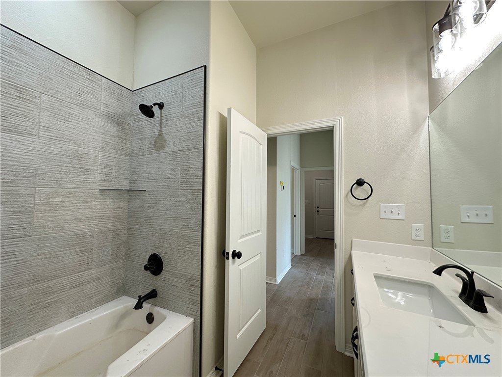 This Wimberley plan delivers over 2,100 square feet with 4BR/2BA, and a 3-car garage. An open-concept design with a versatile main living area, there are multiple options for furniture placement and room layout. The kitchen is a dream featuring an enormous island, gas cooktop, modern GE Profile built-in appliances, soft-close cabinetry, granite countertops, and custom vent hood. The living area is highlighted by beautiful, beamed ceilings creating a warm and inviting atmosphere that's perfect for relaxation and entertaining. Whether you're cooking in the gourmet kitchen or unwinding in the living room, the Wimberley plan is designed to meet all your needs with style and comfort. The master bedroom and bathroom are designed for luxury and convenience, offering a spacious walk-in shower and a large walk-in closet, providing ample storage and organization. This well-appointed space ensures that every day begins and ends in comfort and style. Located in the vibrant Bella Terra community, residents enjoy access to top-tier amenities like a community pool, playground, and proximity to highly rated schools, shopping, dining, and BSW Hospital. With easy access to I-35, commuting is a breeze.