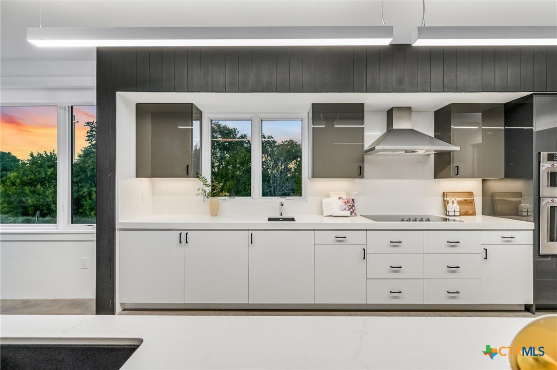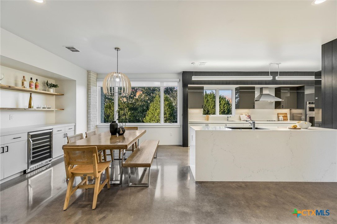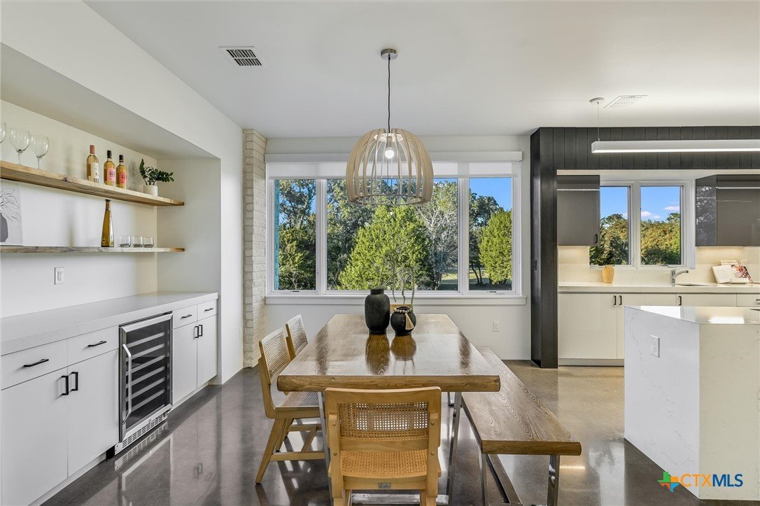 Come tour this exquisite contemporary home, thoughtfully designed for modern living. As you step inside, you’ll be greeted by abundant natural light streaming through floor-to-ceiling windows, illuminating the open-concept floor plan. The living room showcases a sleek propane fireplace, creating a warm and inviting atmosphere. Adjacent, the dining area features a stylish serving counter with a built-in wine refrigerator, perfect for entertaining. The gourmet kitchen is a chef’s dream, complete with quartz countertops, under-cabinet lighting, a built-in oven, and a microwave/convection oven. The pullout pantry system ensures effortless organization and easy access to all your culinary essentials. This home offers two ensuite bedrooms, plus a luxurious primary suite with a spa-like bathroom featuring double vanities, walk-in closet and walk-in shower. A second living area provides additional space for relaxation or a home office. Step outside to the spacious patio, where you can enjoy serene views of the little forest. A greenbelt wraps around two sides of the home—a true retreat in nature. Additional highlights include an electric car charger, spray foam insulation, outdoor shower, rainwater for watering plants and a prime cul-de-sac location. Don’t miss the opportunity to own this spectacular home—schedule your private tour today!