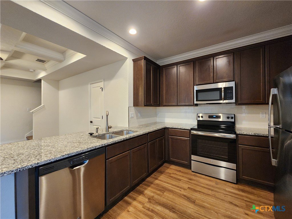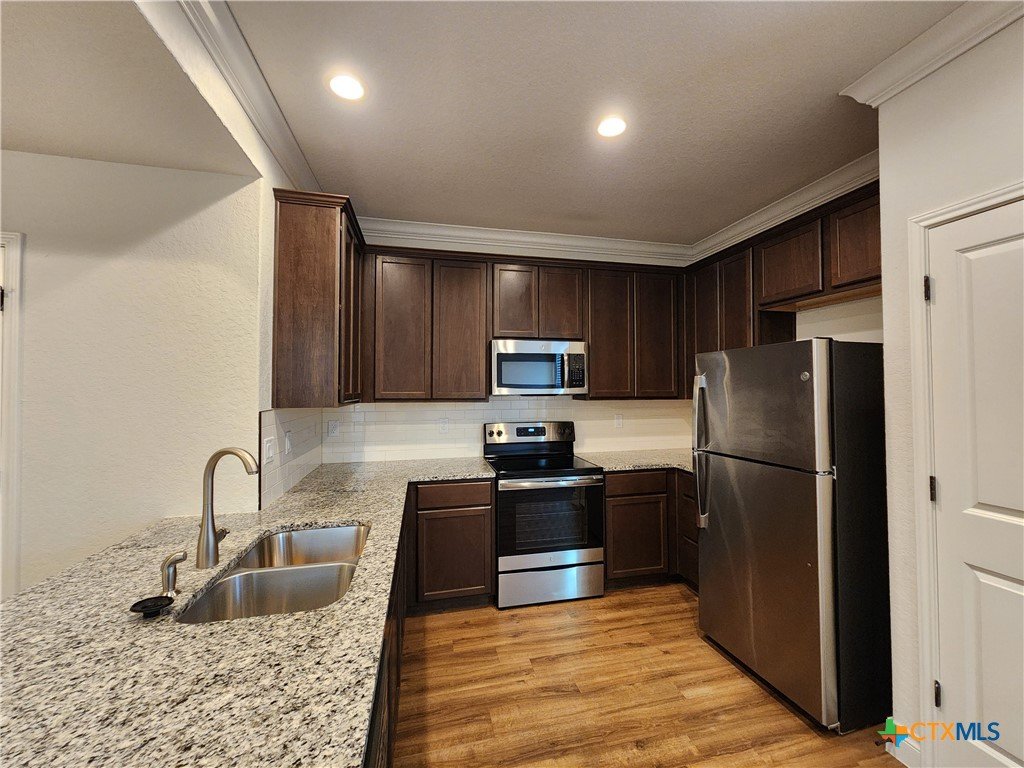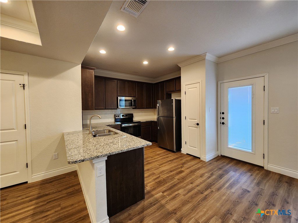 Easy access to IH 35 for commuters. Oversized 1 Car Garage. Xeriscape Front Yard. Flooring is a mix of luxury vinyl plank & carpet. Kitchen features: fridge, dishwasher, oven/stove range electric, built in microwave, granite counter tops, pantry & recessed lighting. Other features: ceiling fans, shower / tub combo, washer & dryer, pergola, fenced in backyard, and NBISD. 2 pets ok but combined weight can't exceed 50 lbs.